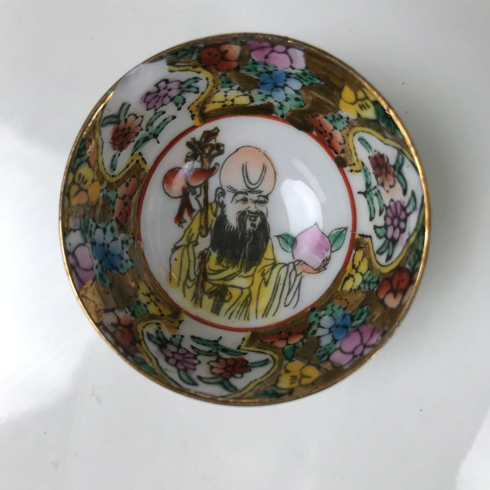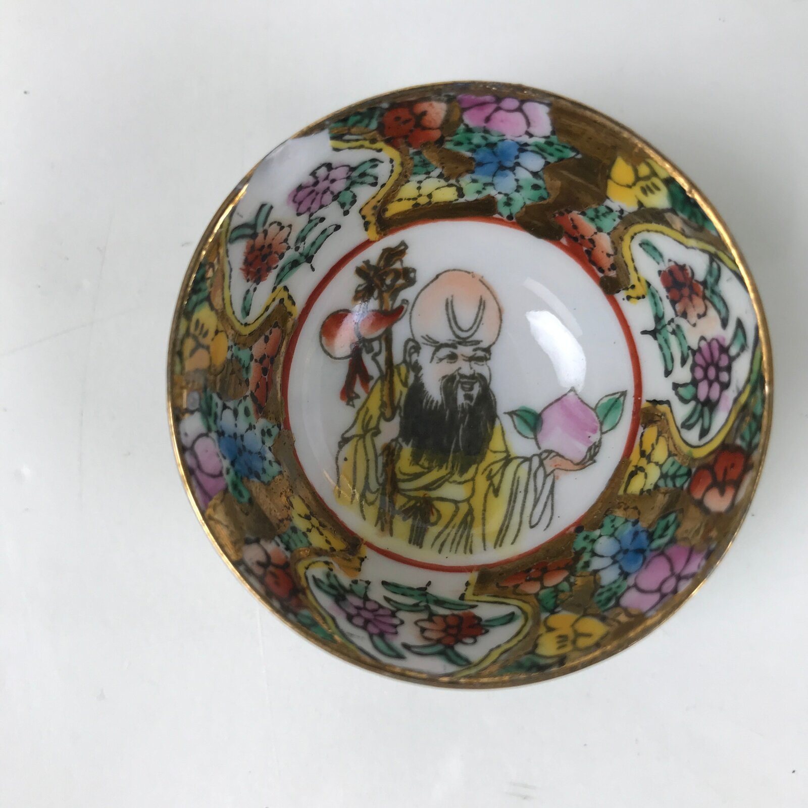 January 24, 2026Chinese Porcelain Sake Cup Vtg Ochoko Flower God Peach Gold Colorful Gold G277