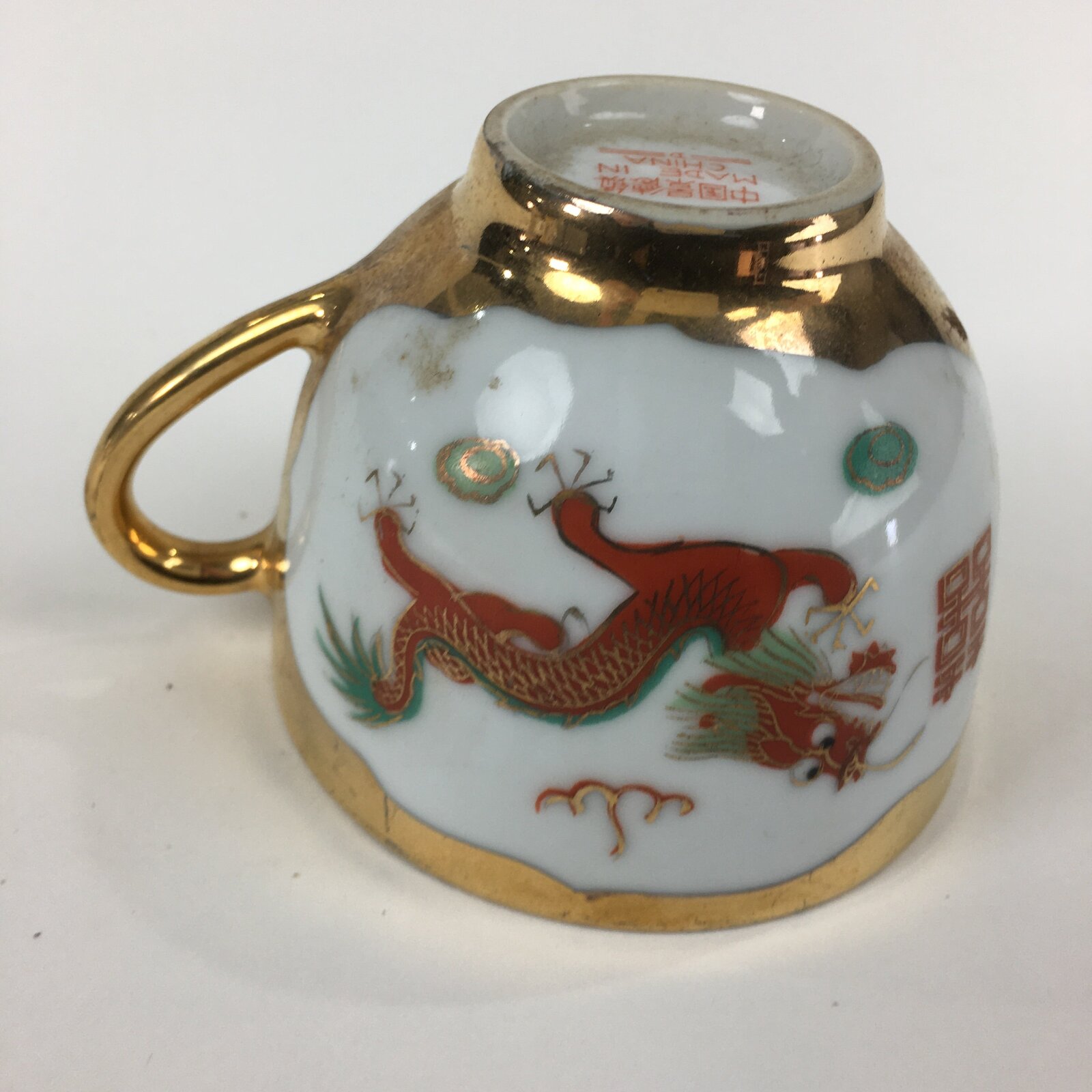 Chinese Porcelain Teacup Vtg Dragon Phoenix Bird Gold Jingdezhen City PP782