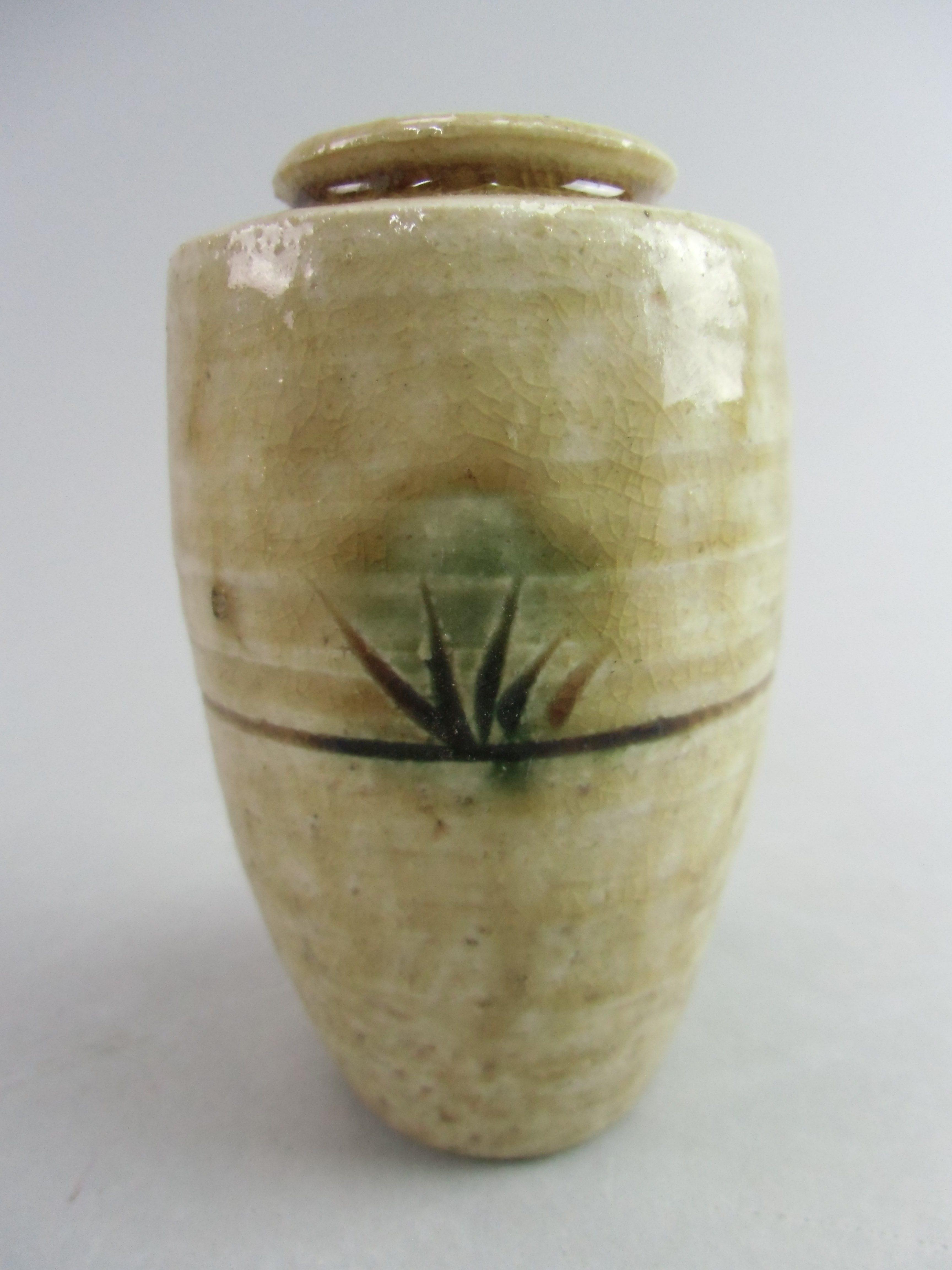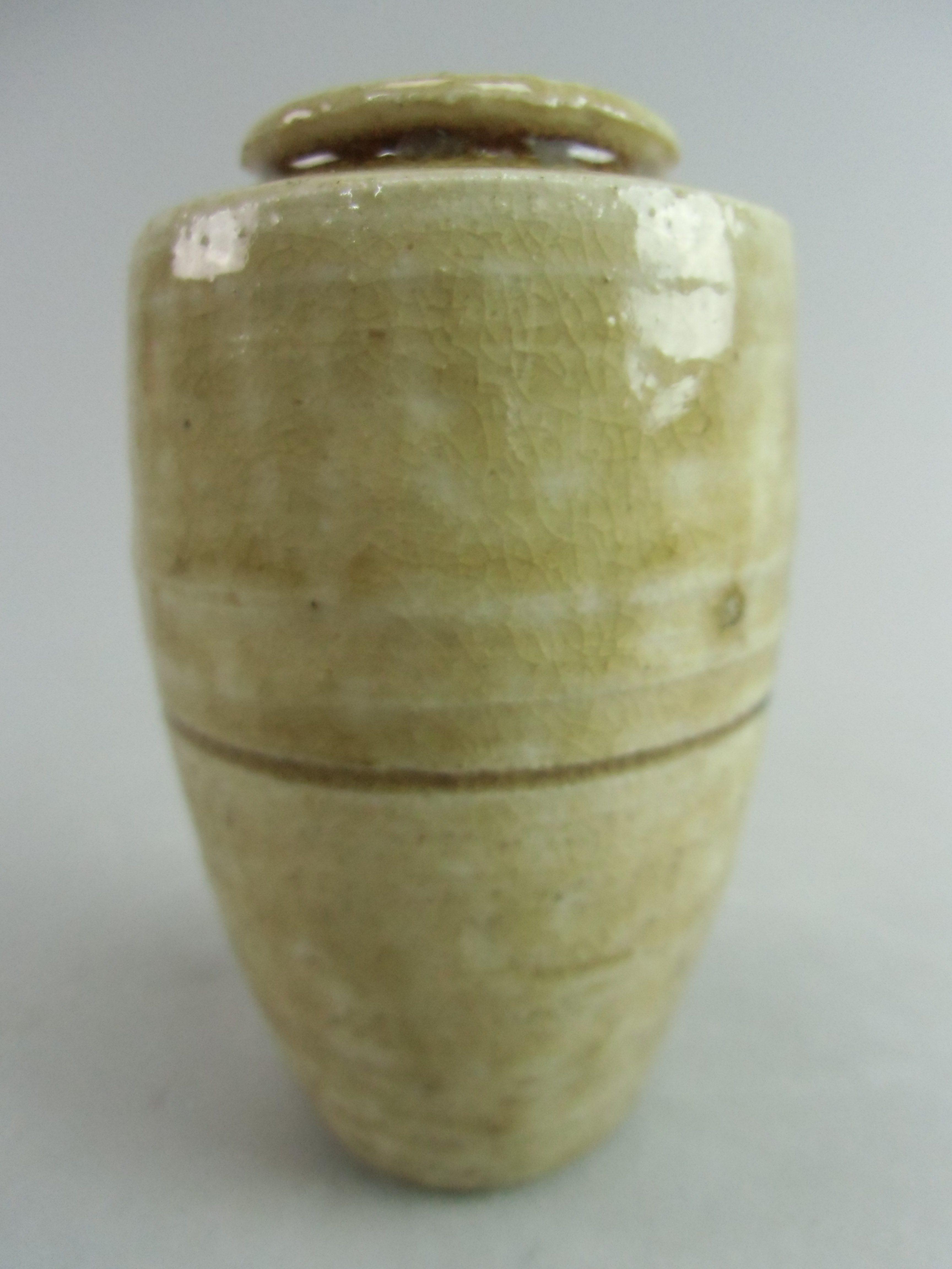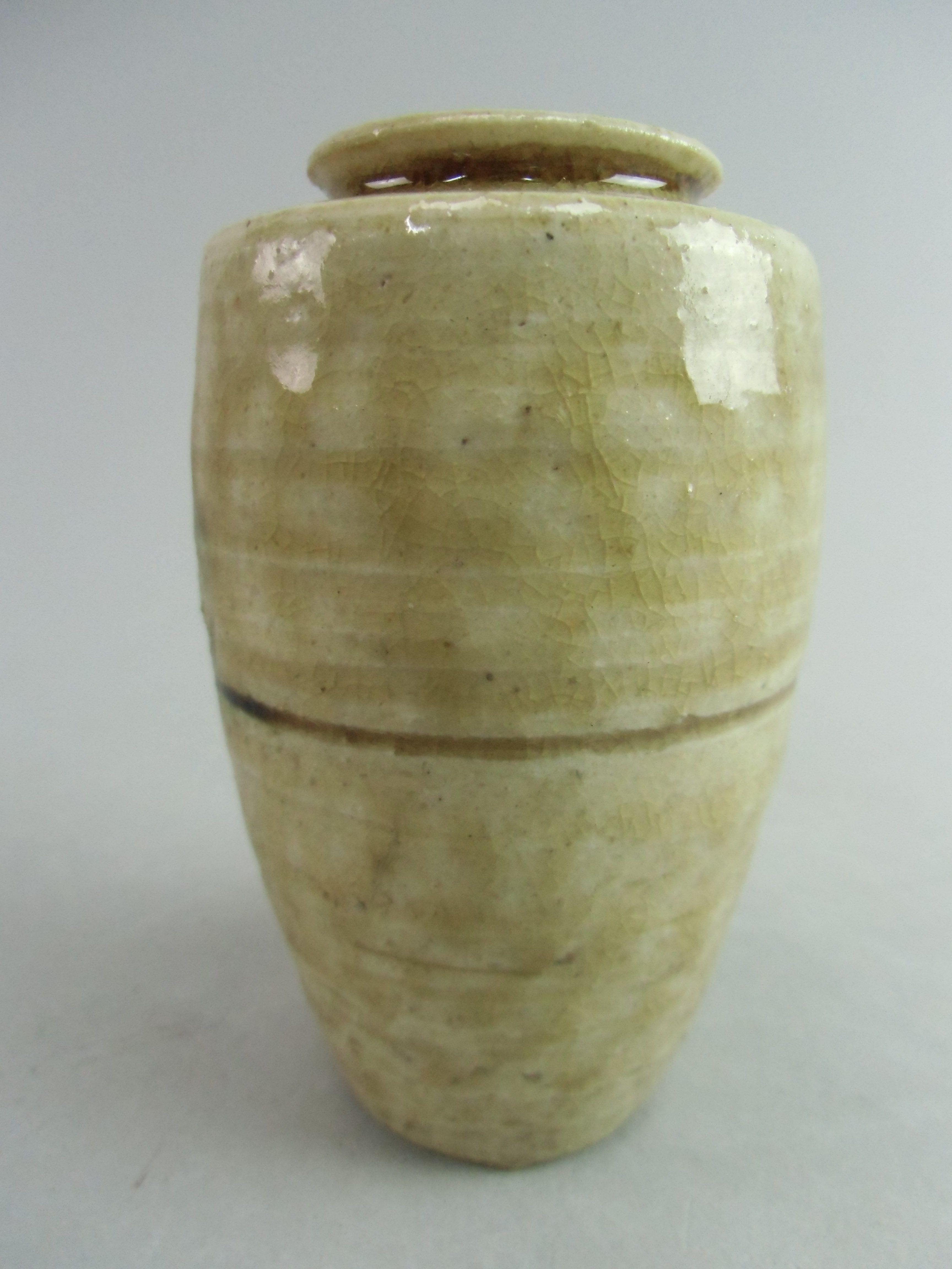 Japanese Ki Seto ware Mini Flower Vase Vtg Pottery Beige Green Ikebana MFV43