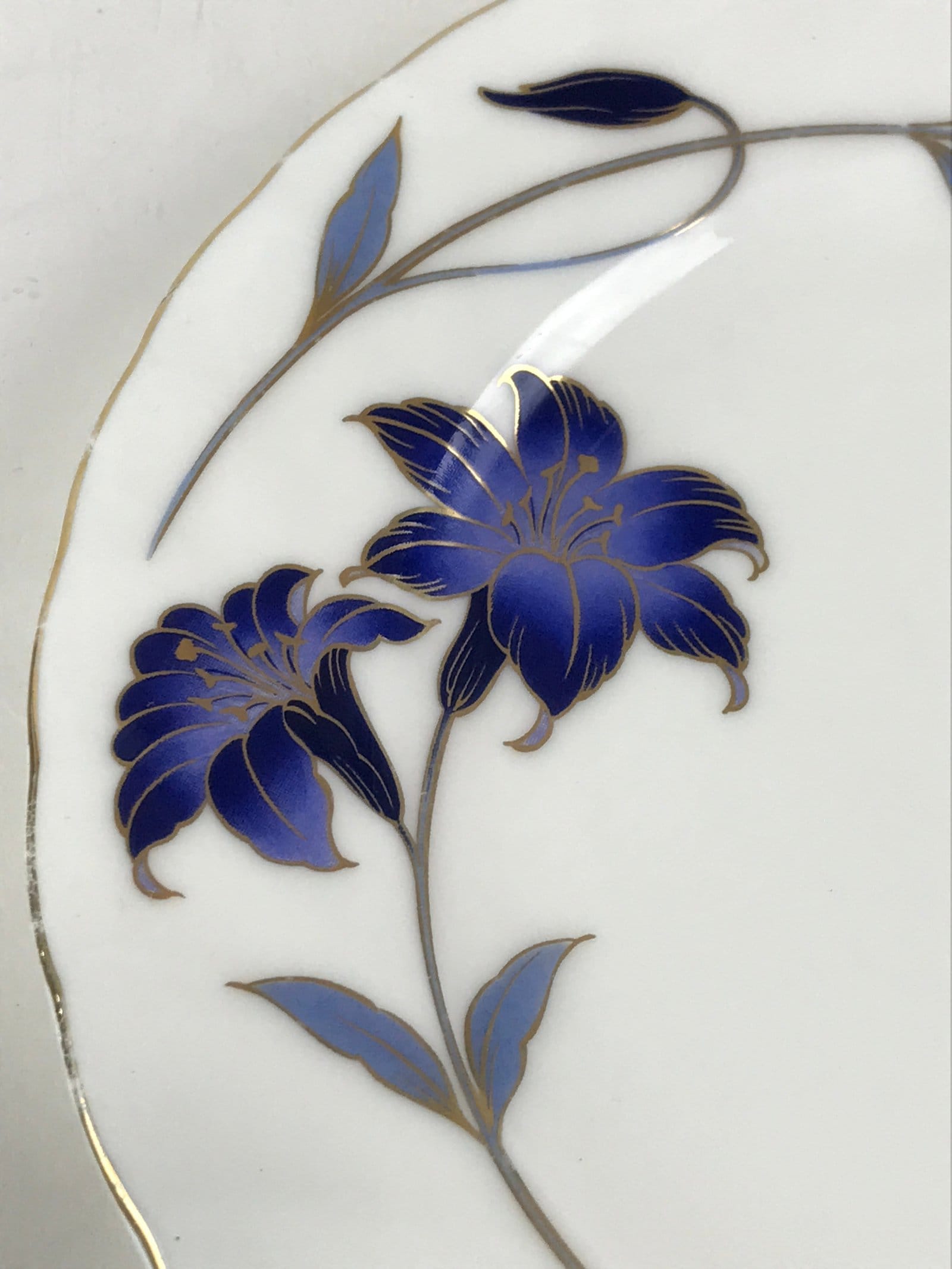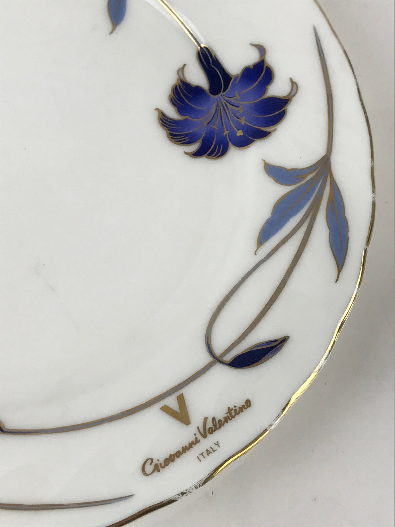 January 20, 2026Italian Giovanni Valentino Porcelain Plate Blue Gold Flower Design White PY245