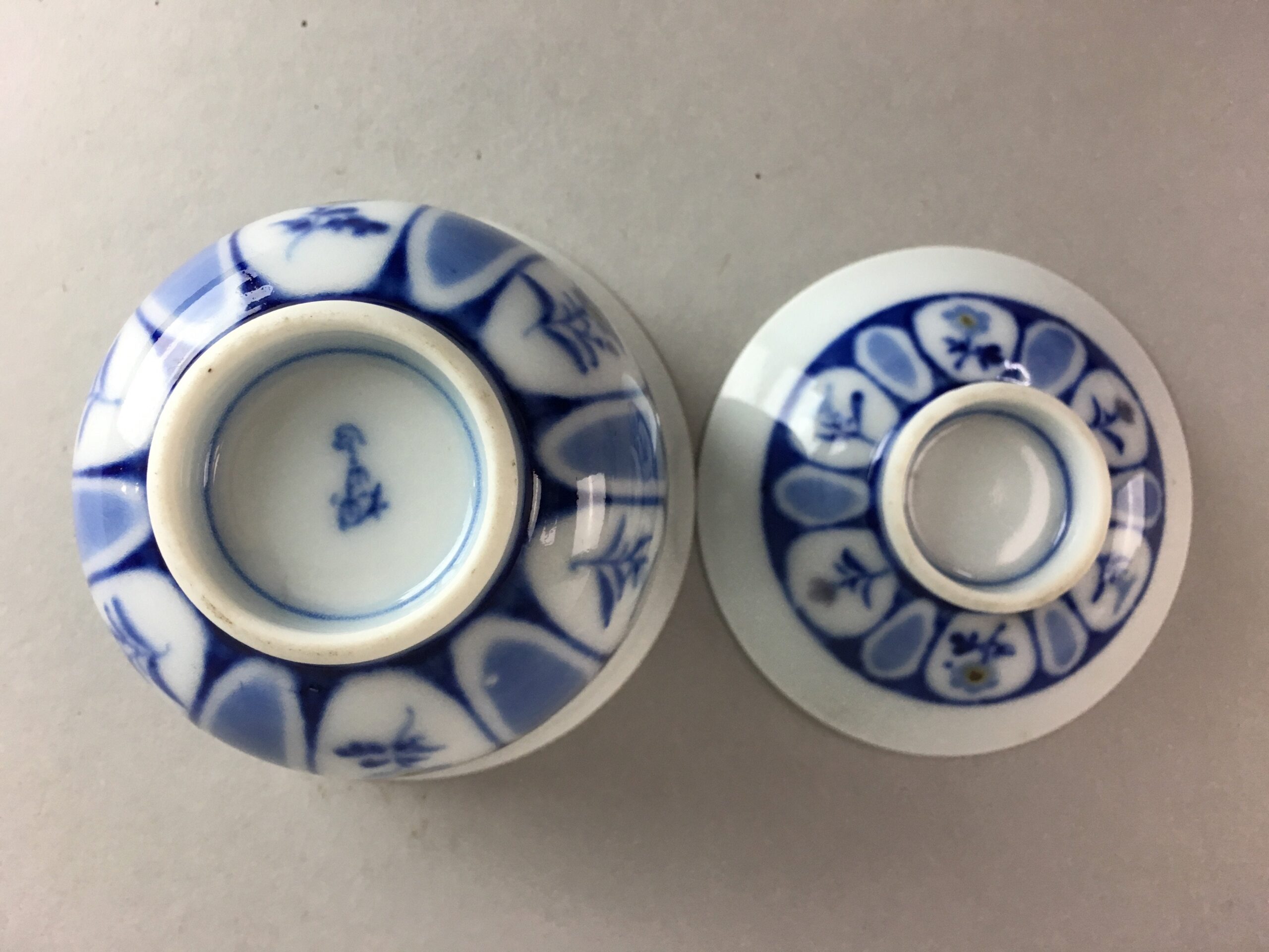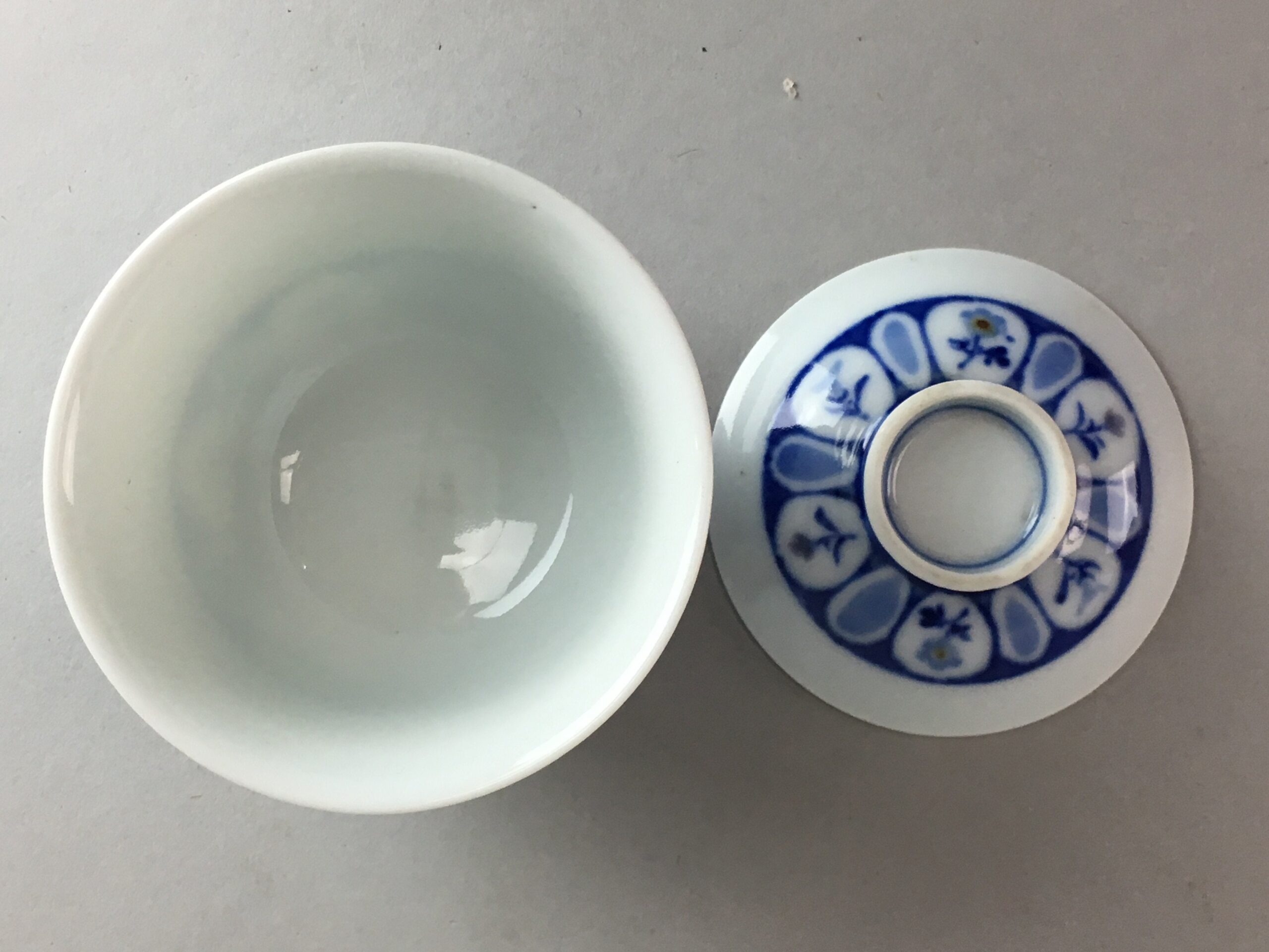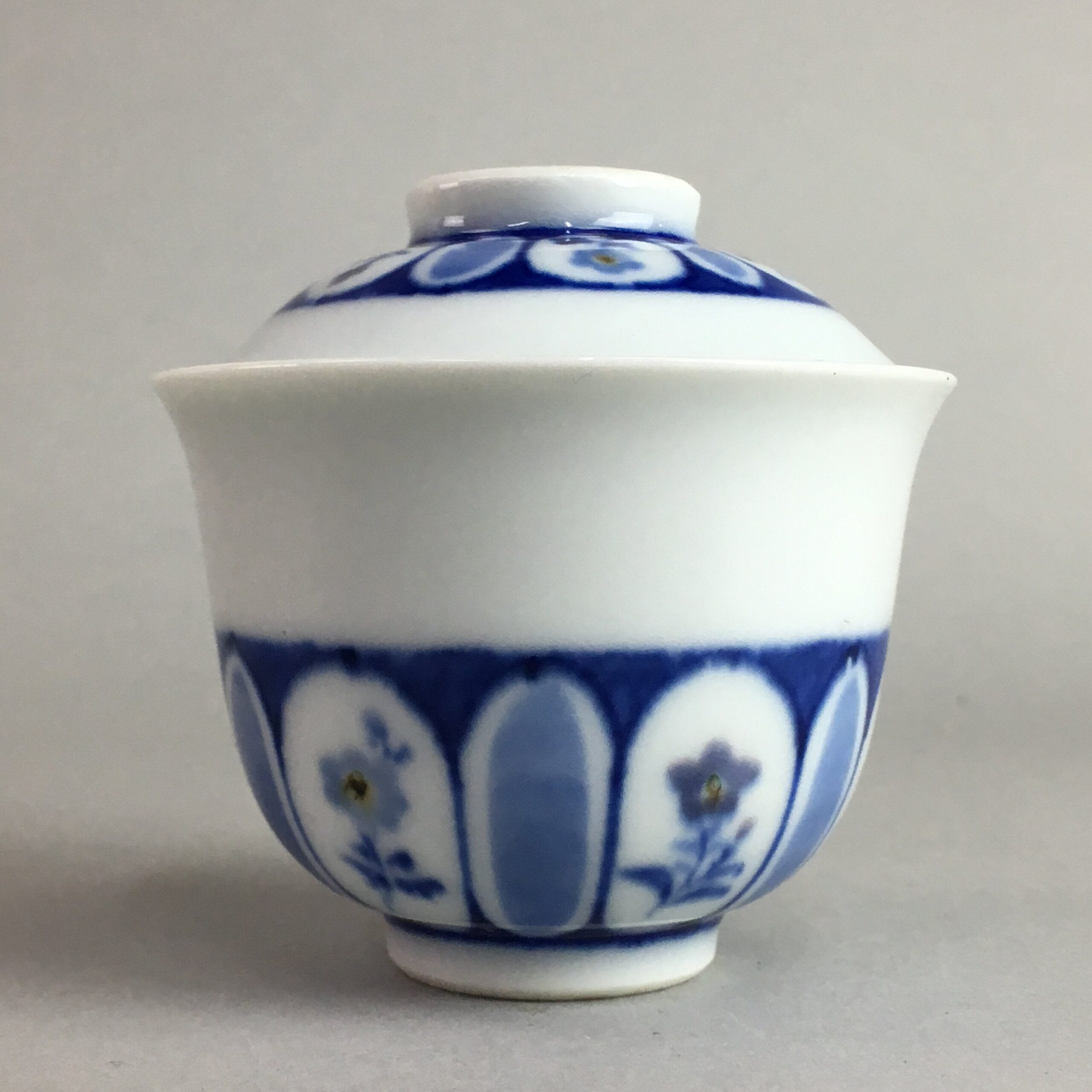 January 17, 2026Japanese Porcelain Lidded Teacup Vtg Yunomi Sometsuke Blud White Floral QT51