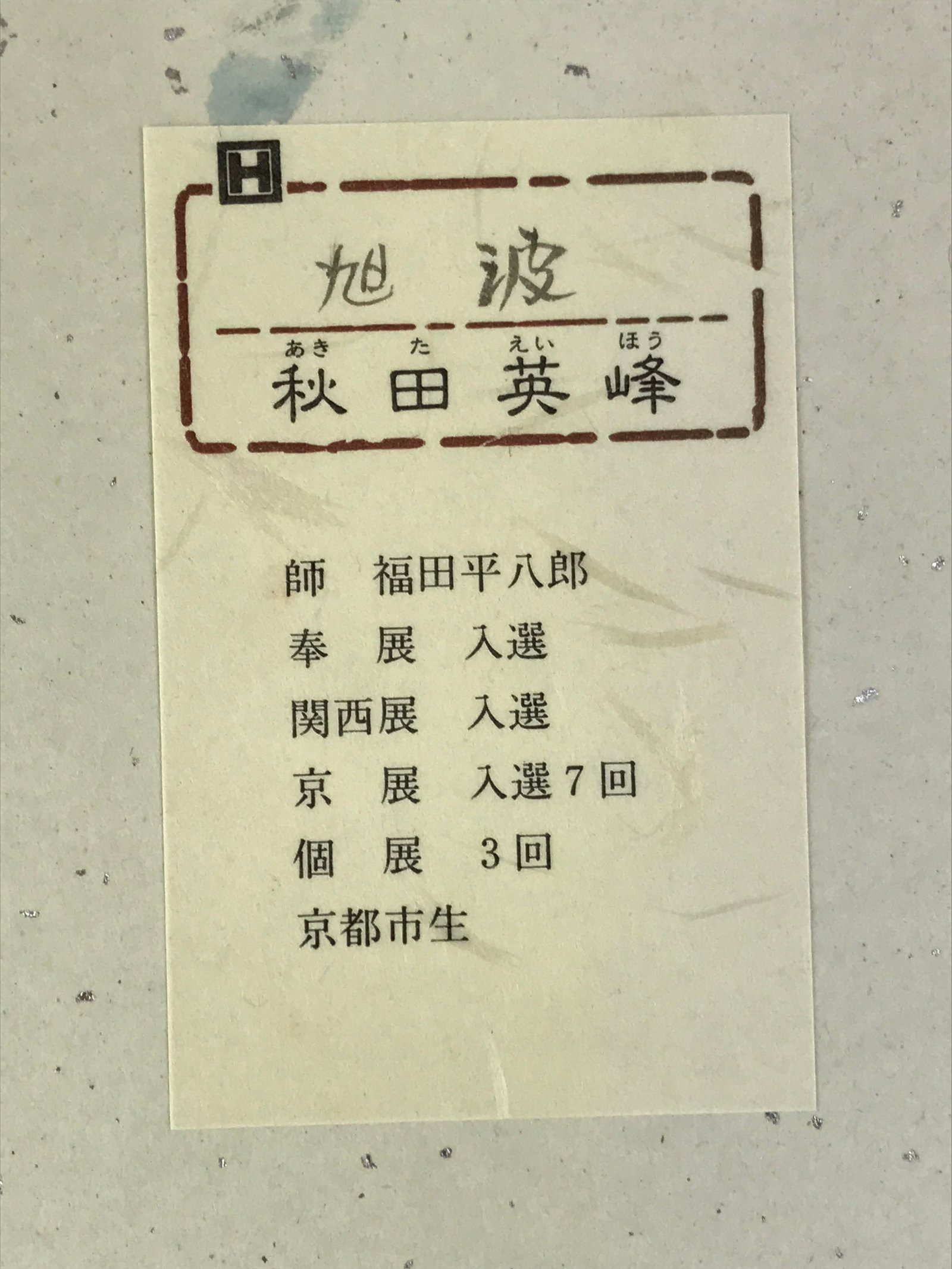 - Some characters on the back: 旭波 asahi nami sunrising waves, 秋田英峰 Akita Eihou