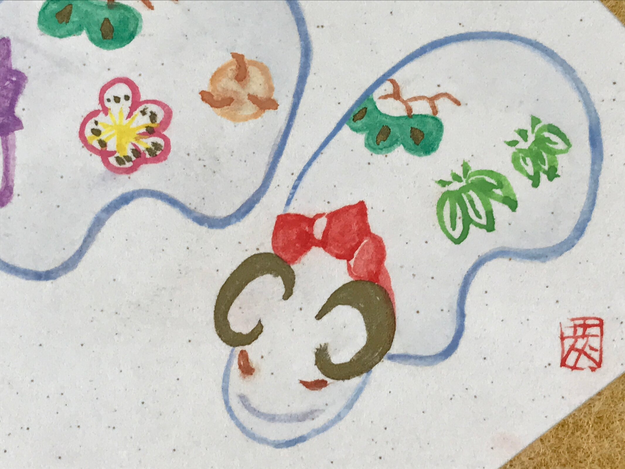 - Golden fan frame stuck on top of Shikishi paper