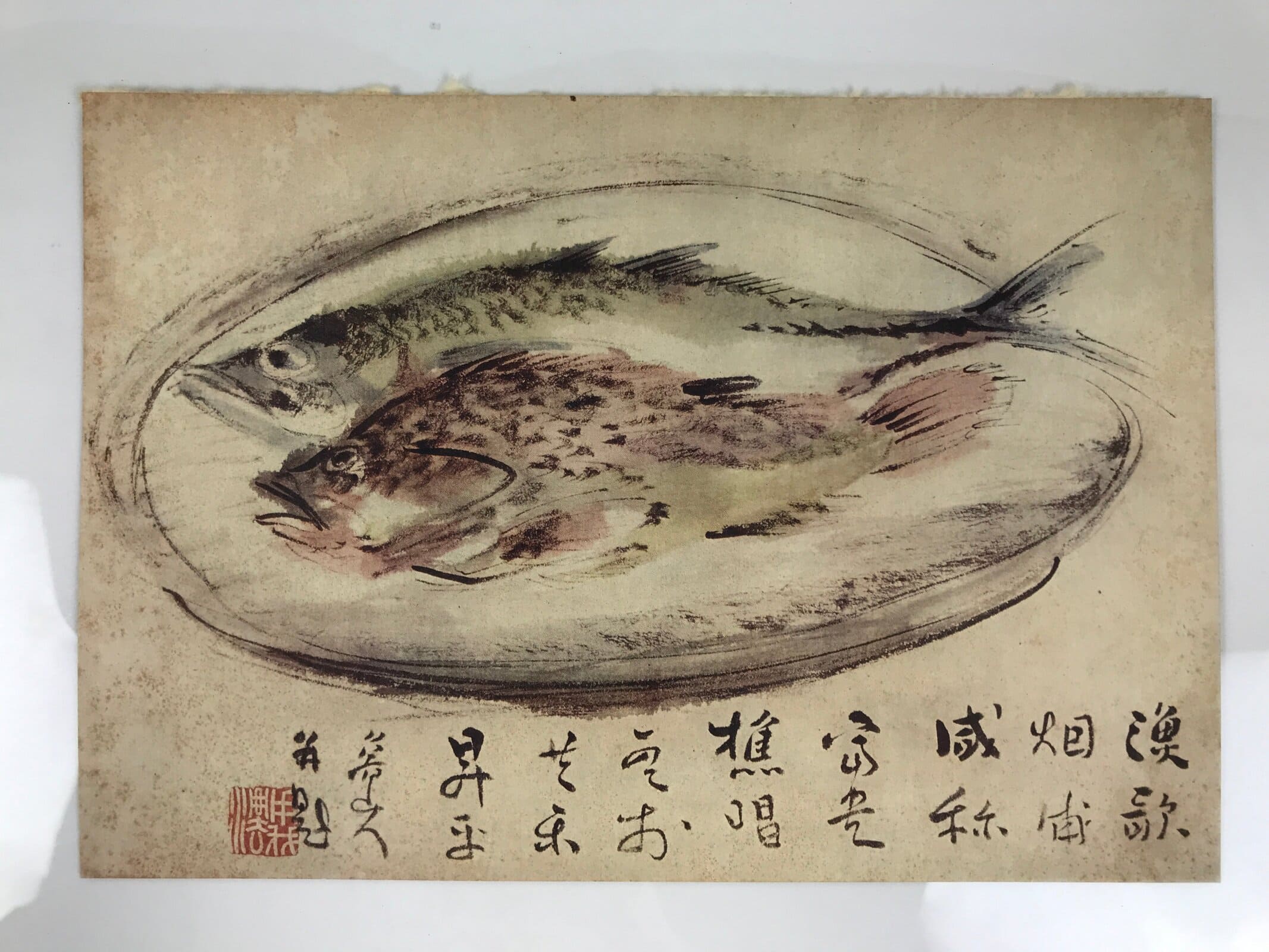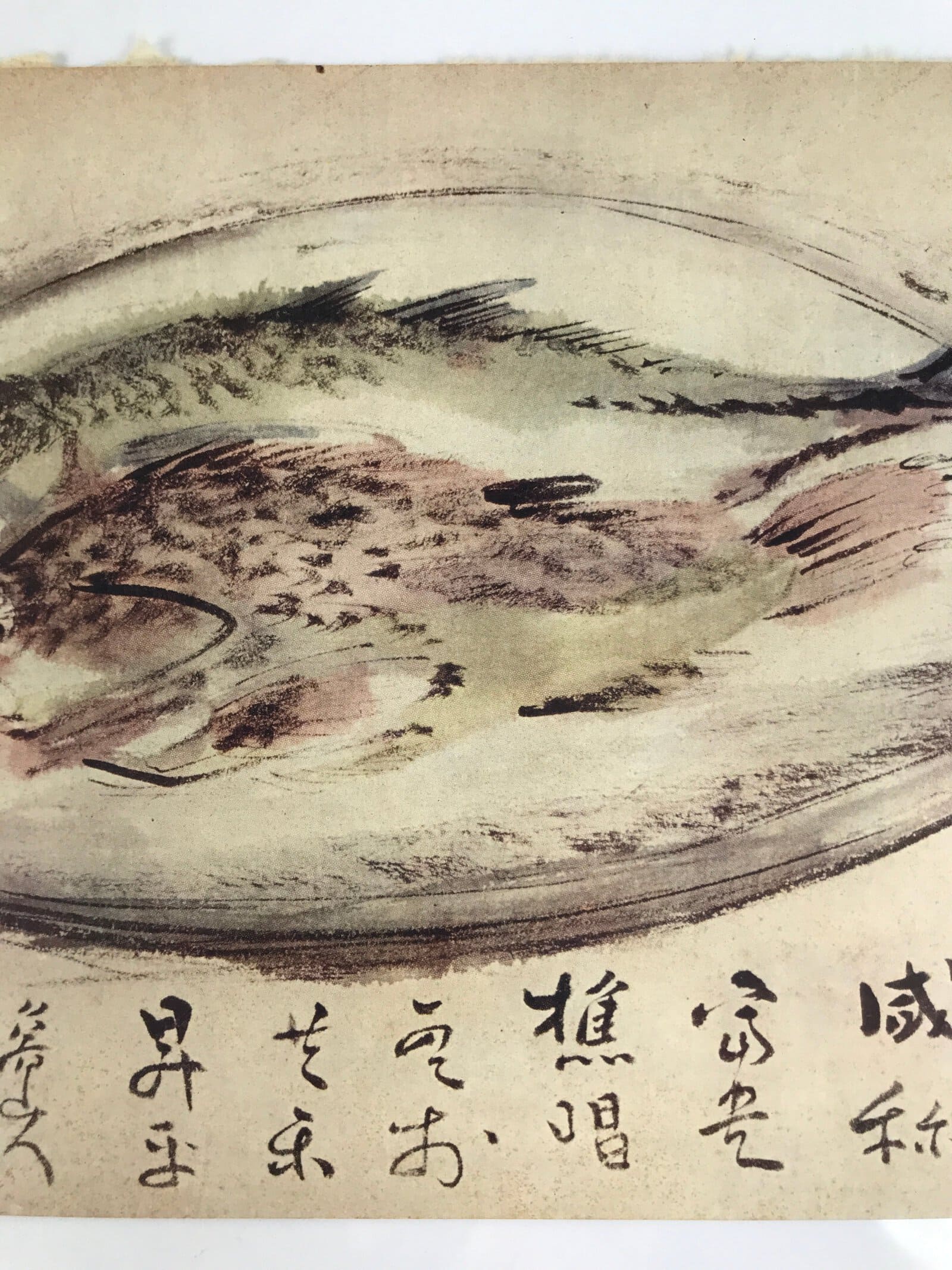 January 24, 2026Japanese Art Print Reproduction Rosanji Fish Plate Calligraphy Ink Color FL435