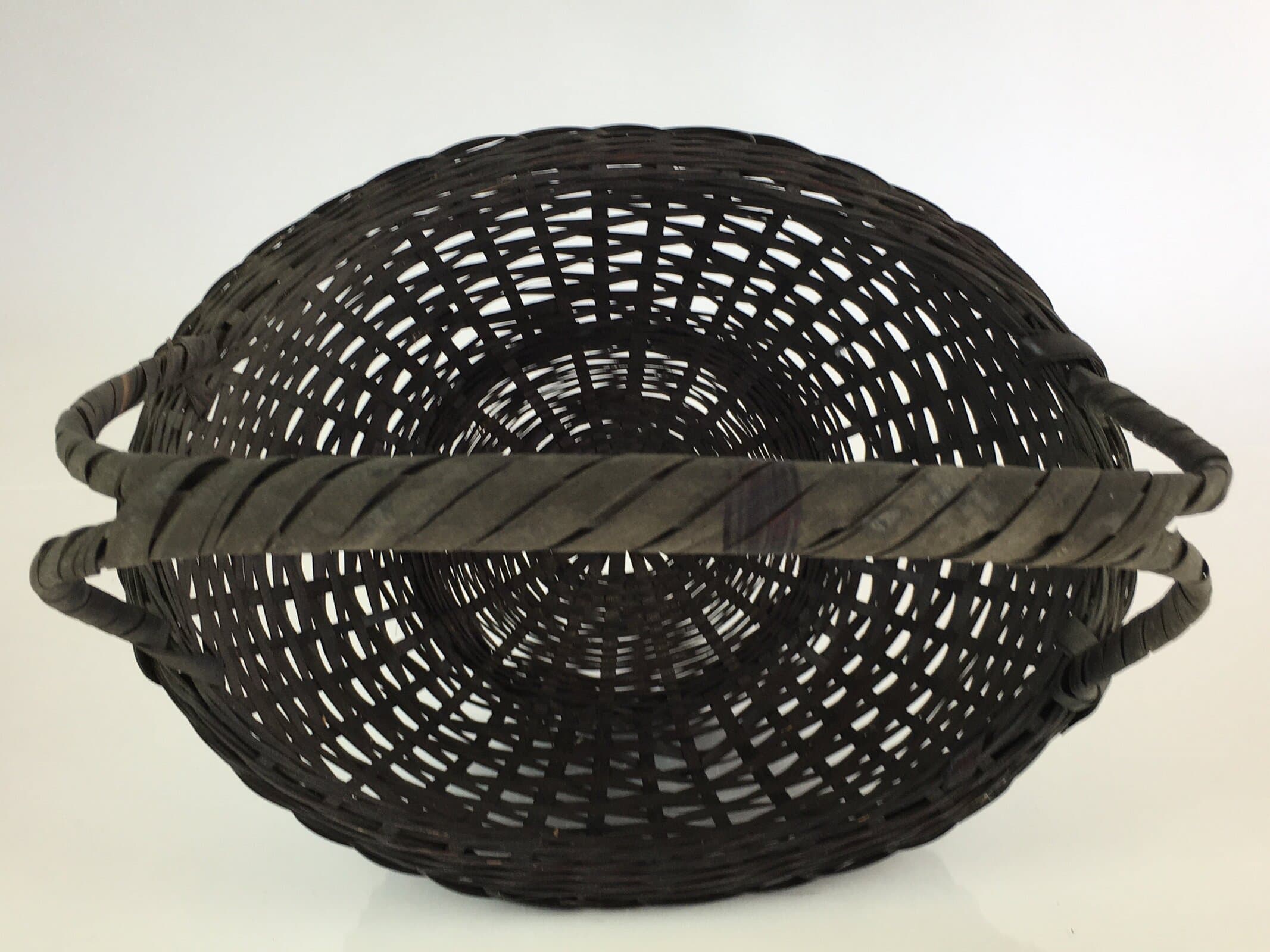 - Japanese hand-woven bamboo basket Kago with a handle