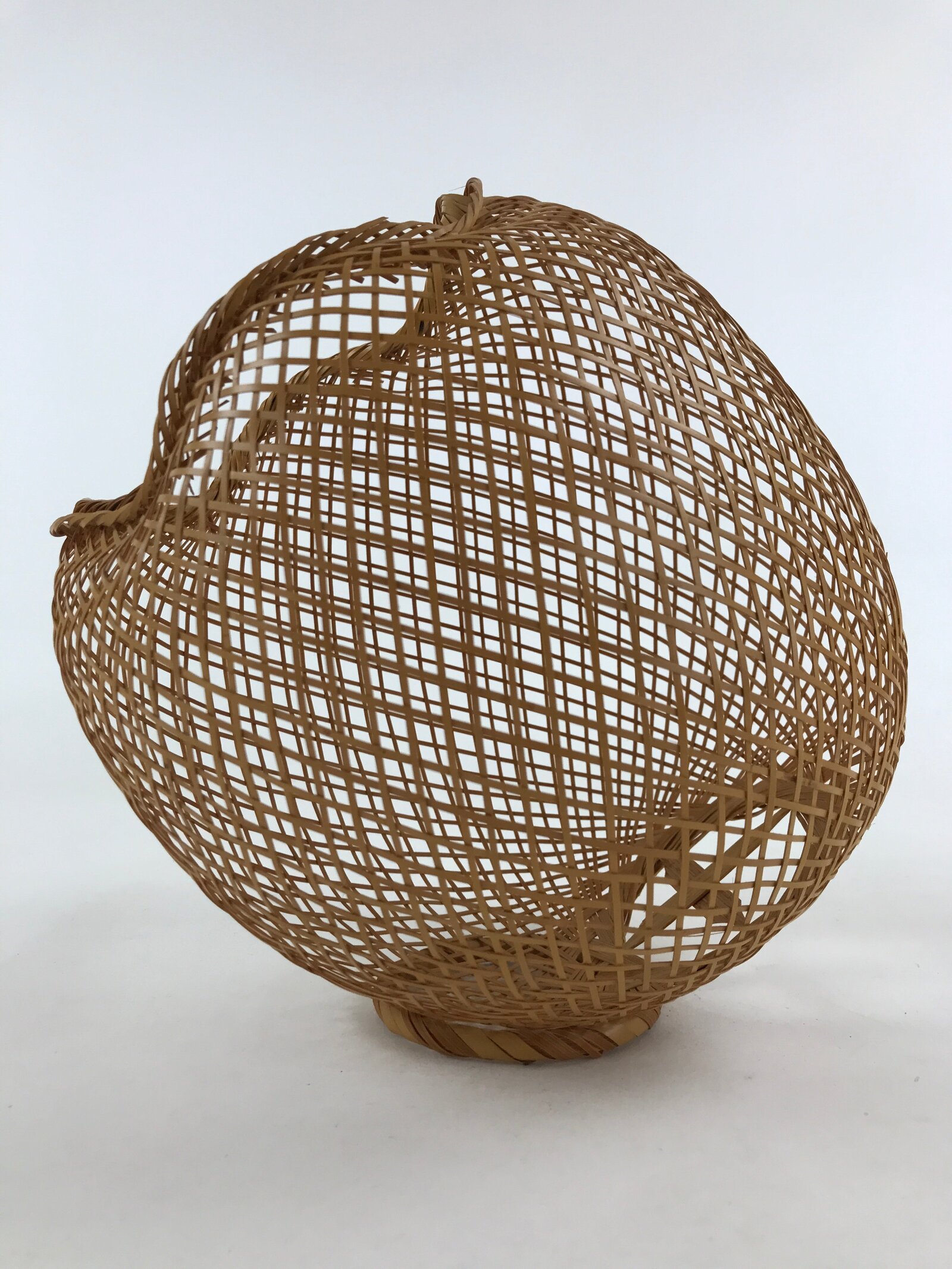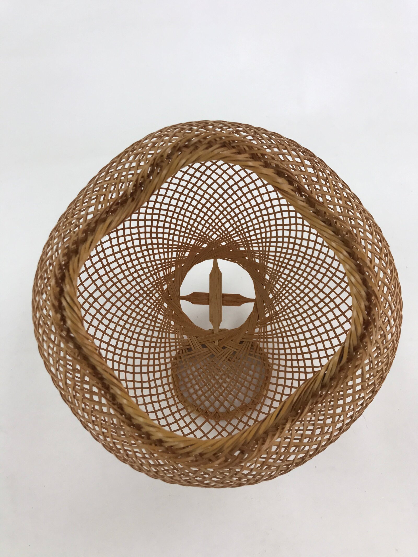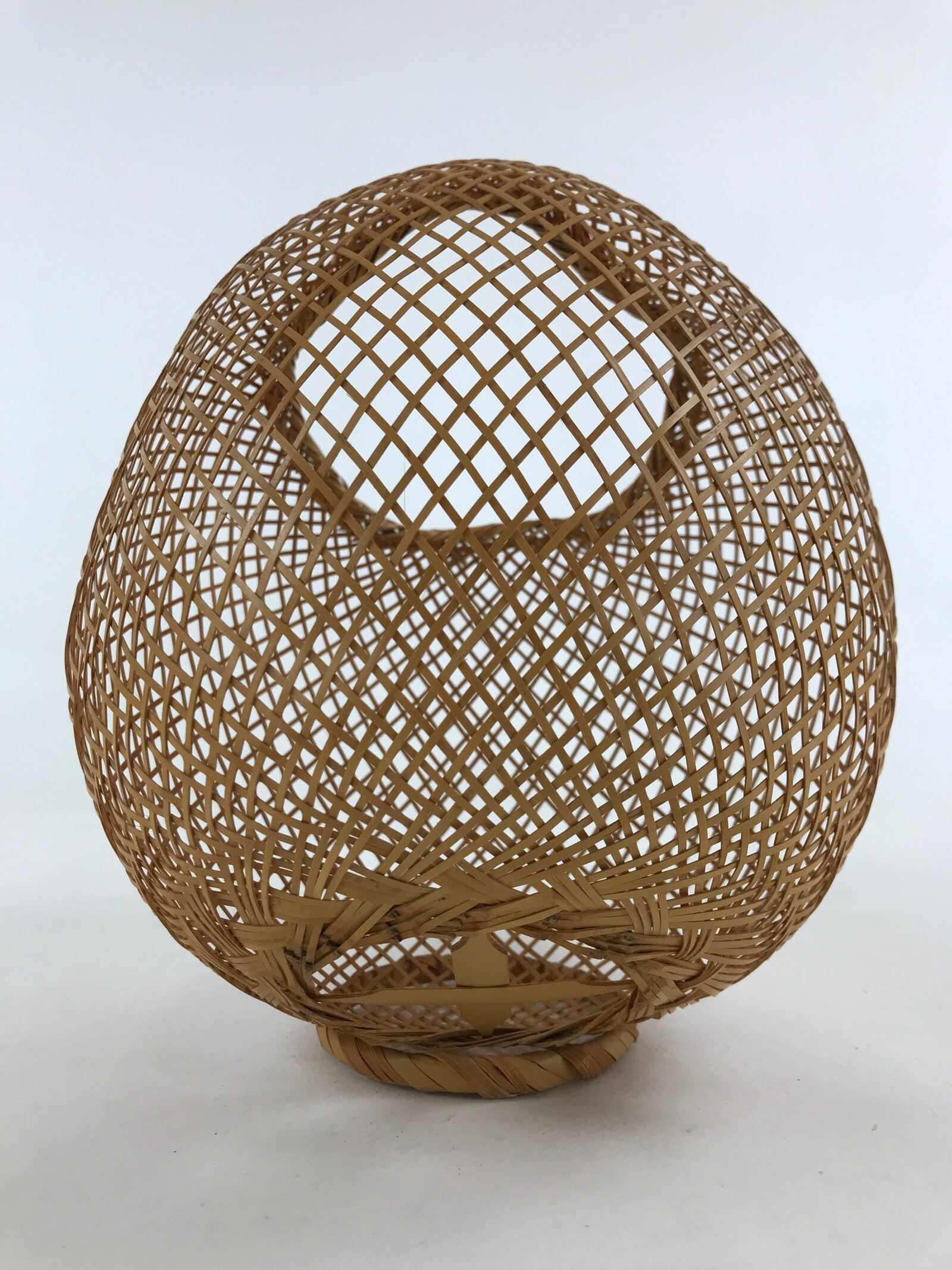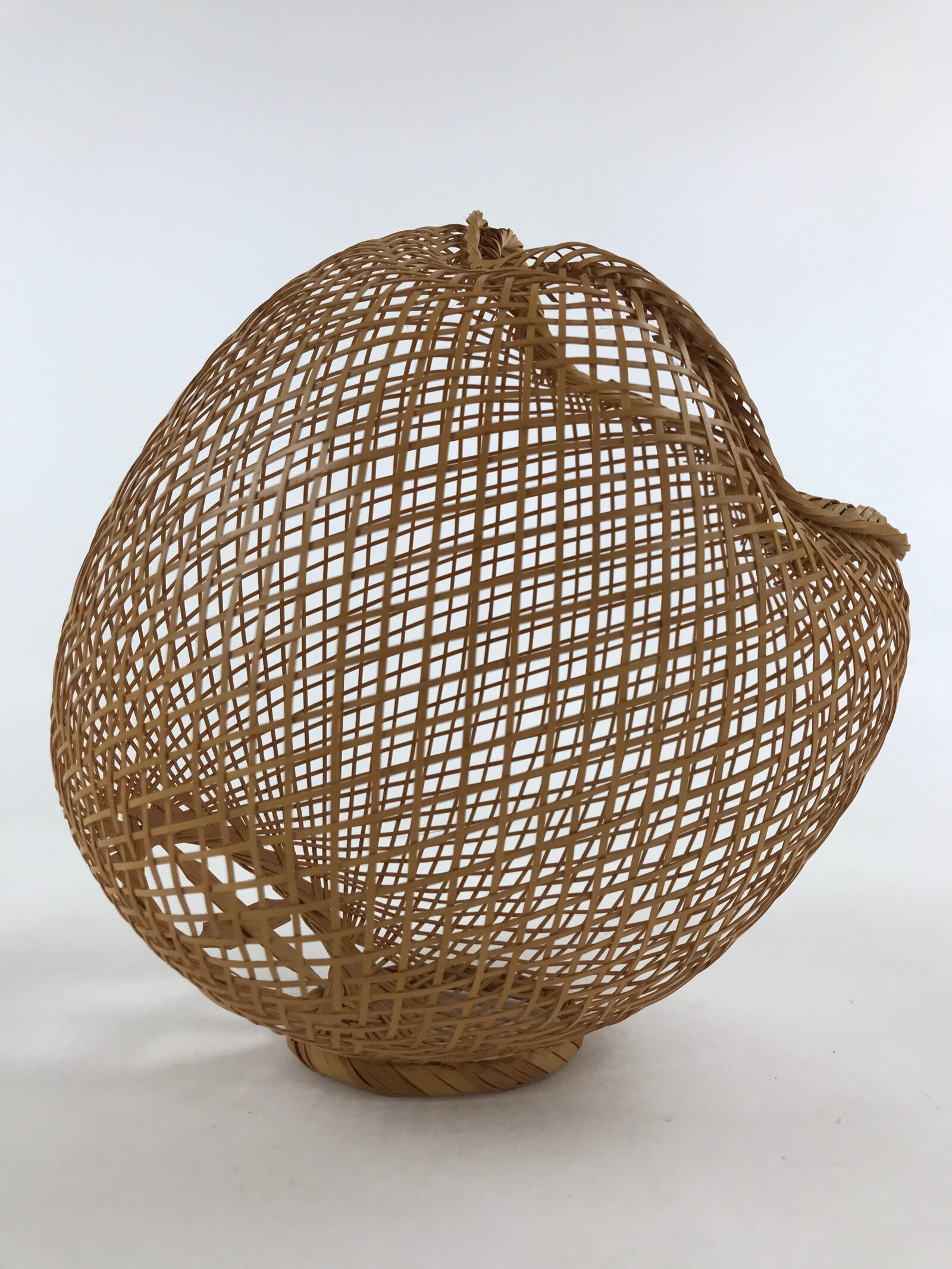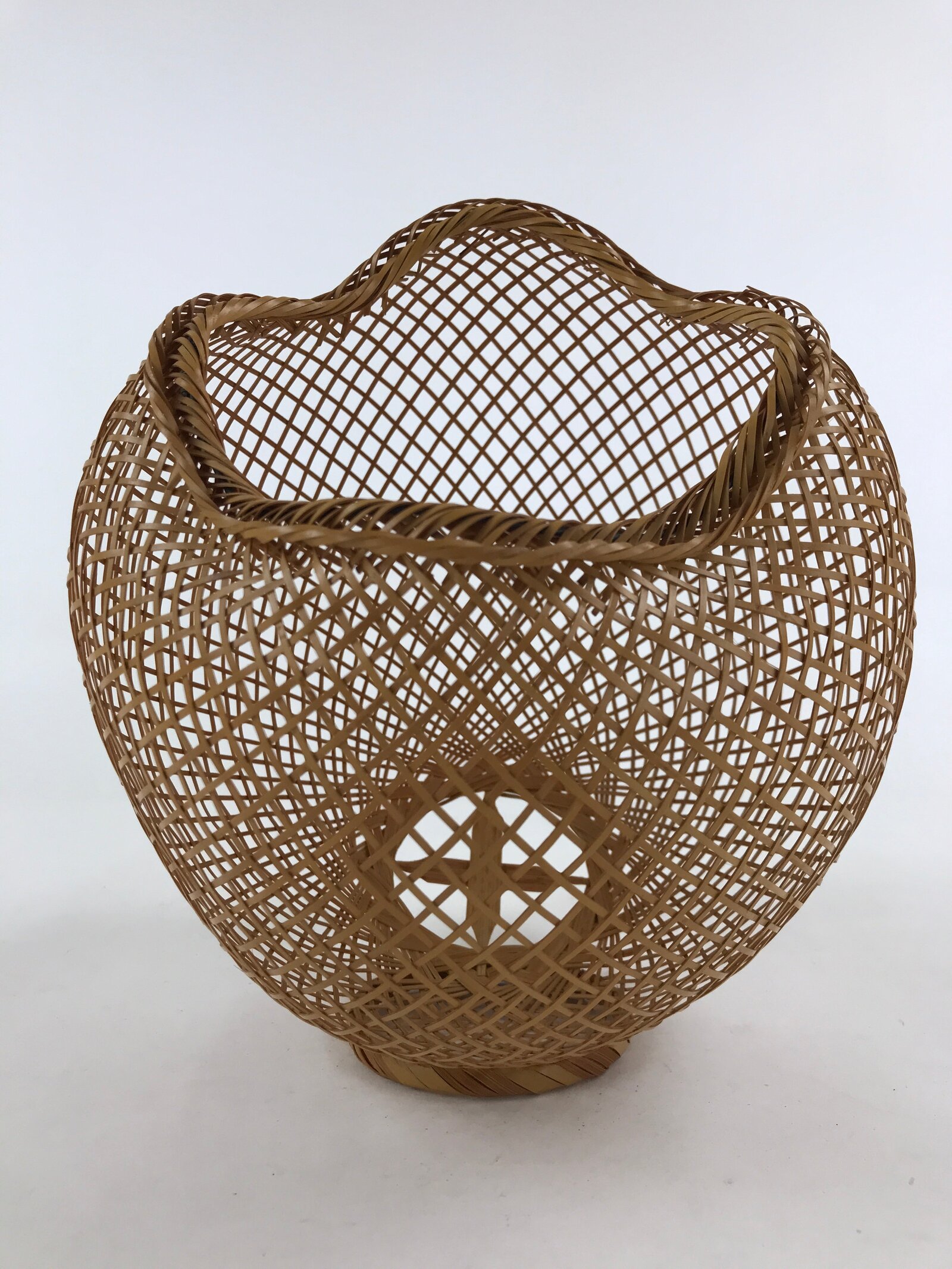 Handwoven into an intricate diamond pattern with thin, light brown bamboo strips, this basket-like ikebana flower vase is sure to brighten up any home or office space. It features a unique tilted angle so flowers placed in it will elegantly waterfall out sideways instead of standing straight. While this piece is used mainly for traditional ikebana arrangements, it can easily be repurposed for general flower decorations.
