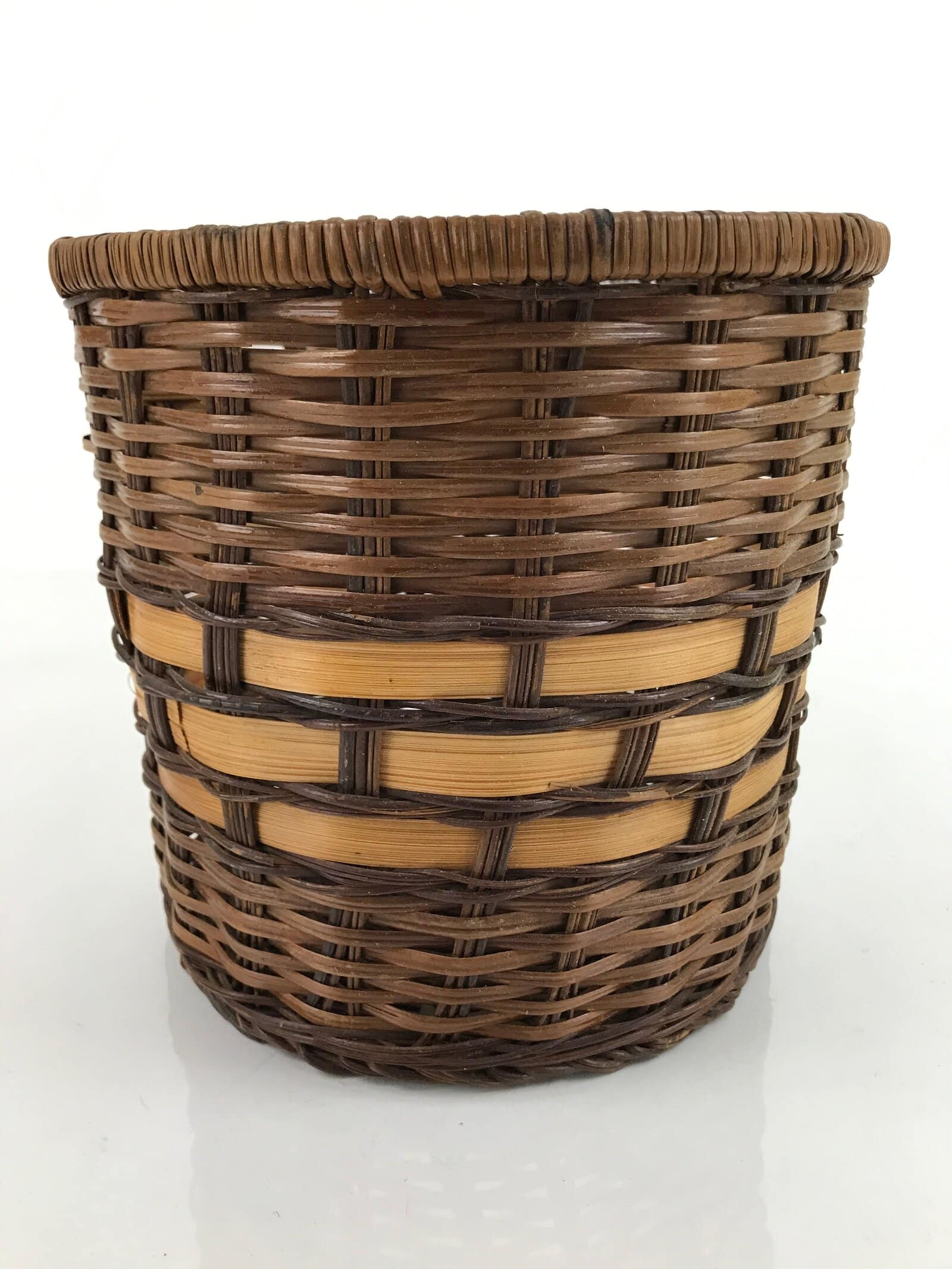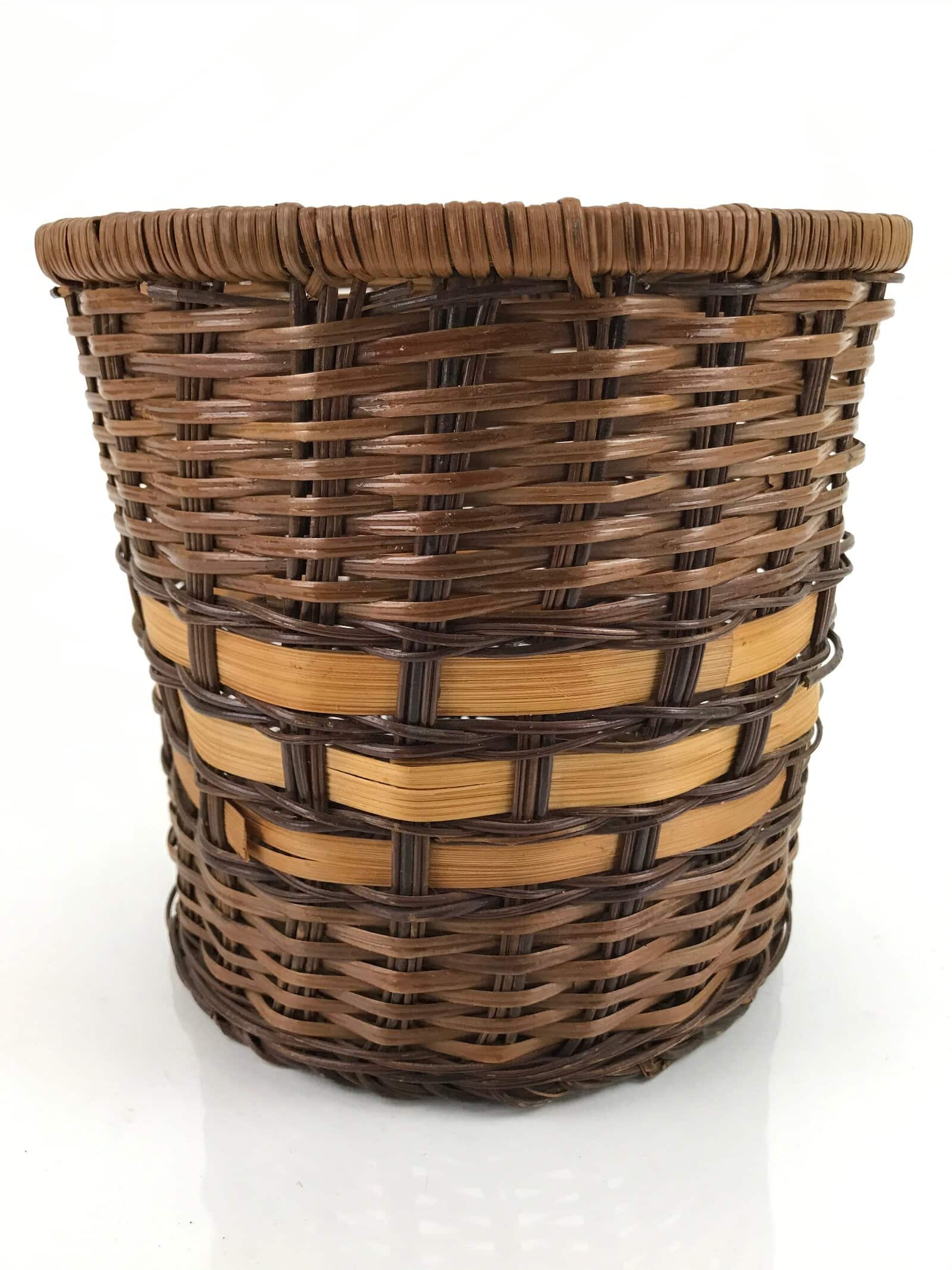 Vintage Japanese Bamboo Trash Bin Basket