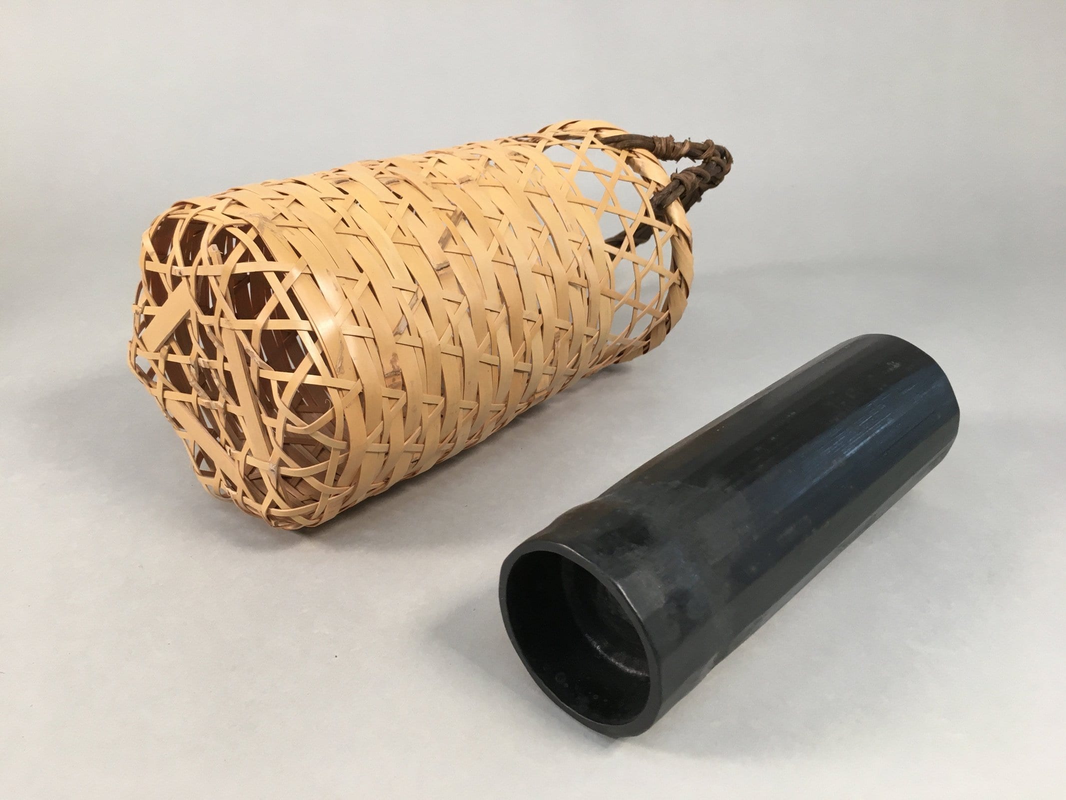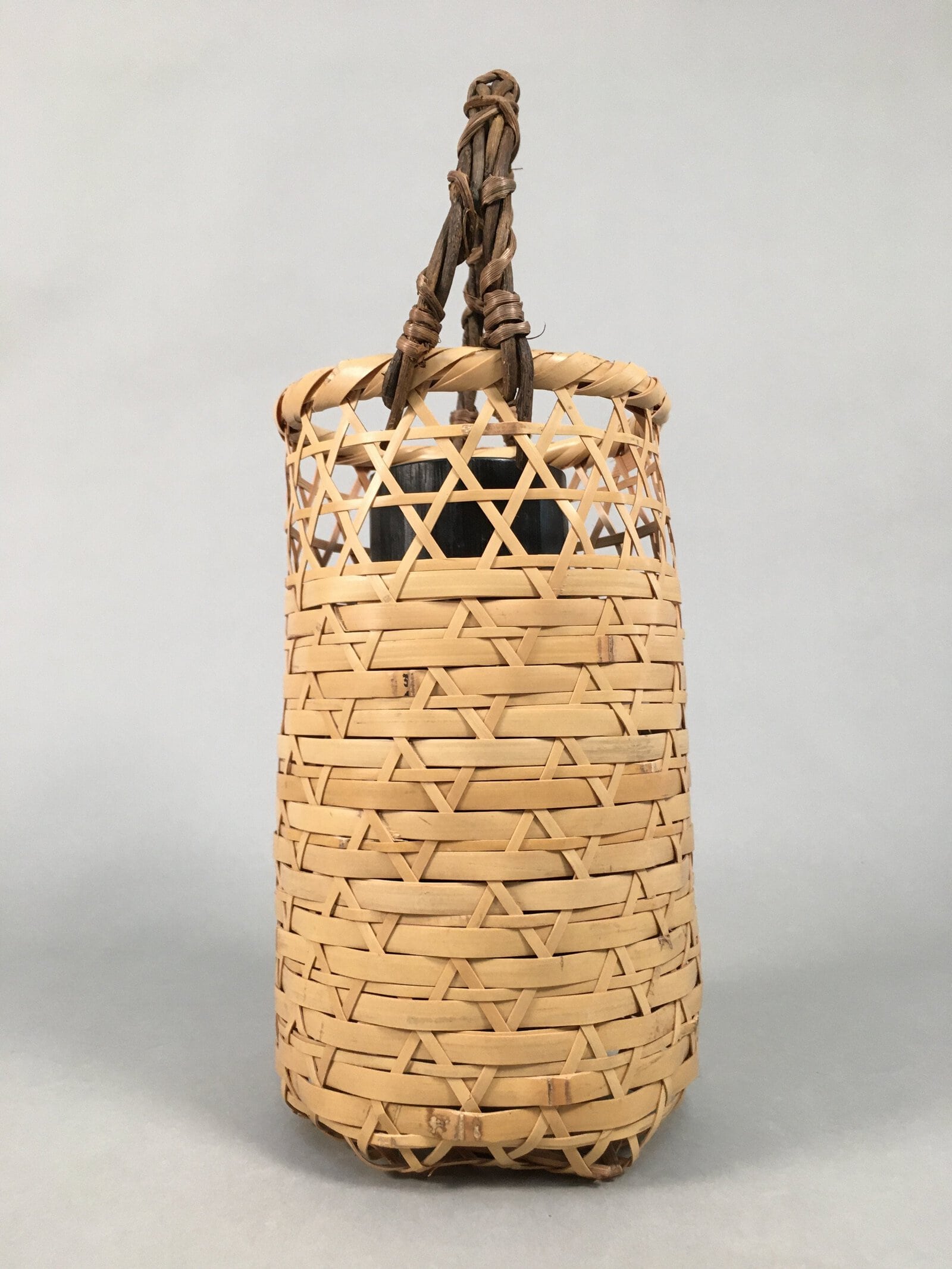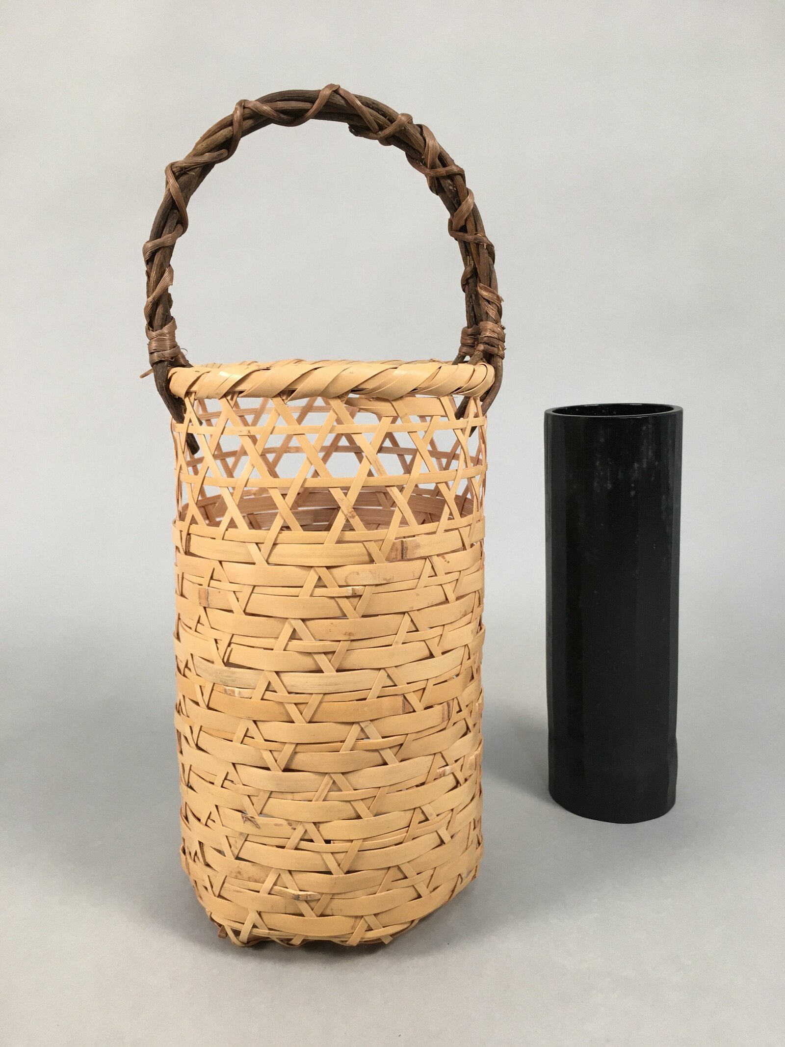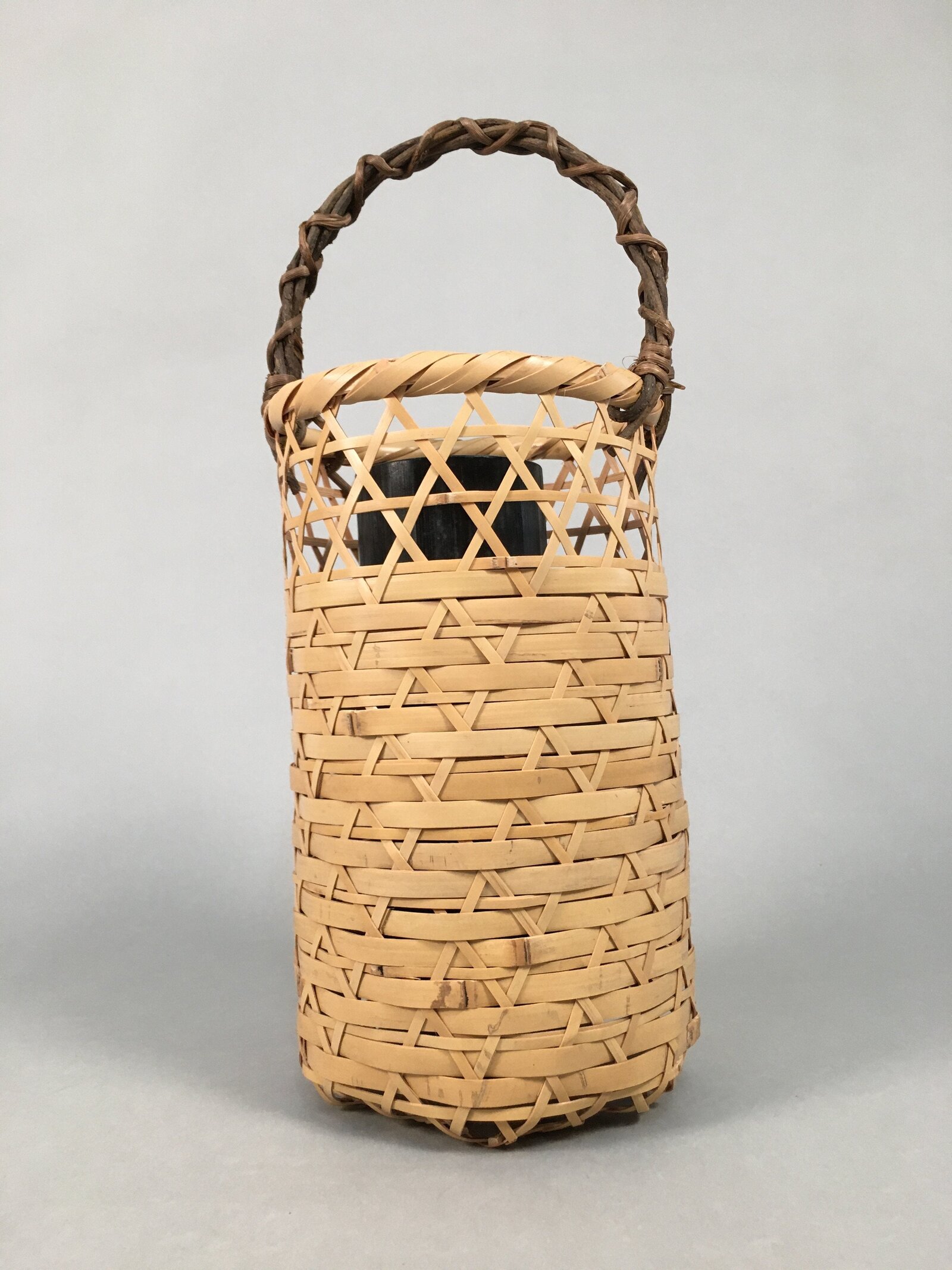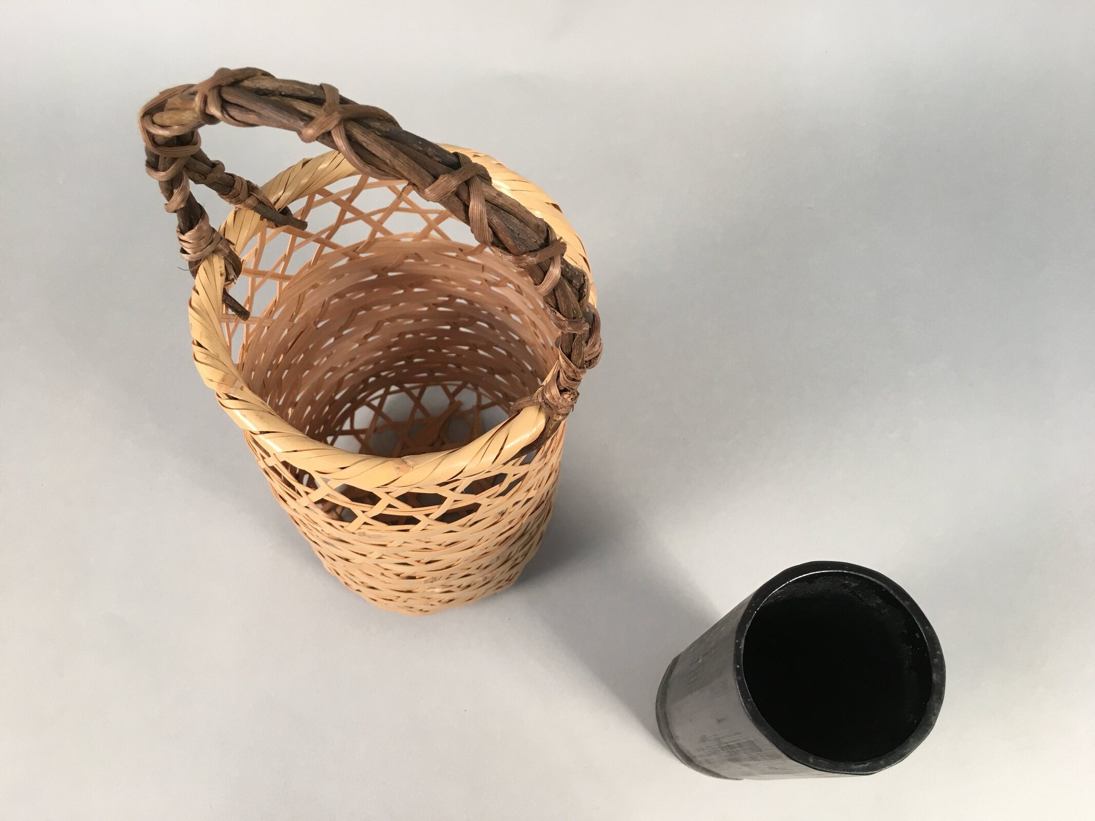 Japanese Bamboo Basket Vtg Flower Vase Ikebana Arrangement Kado B145