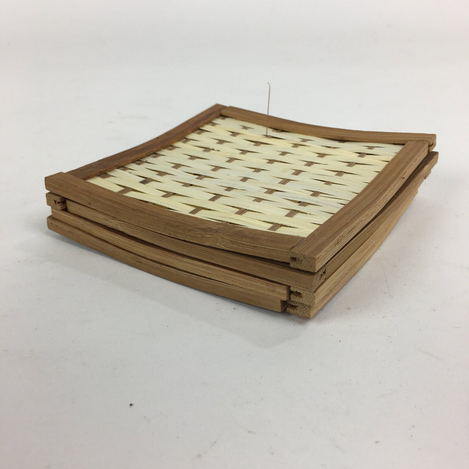 January 18, 2026Japanese Bamboo Craft Drink Saucer 4pc Set Vtg Chataku Coaster Brown UR537