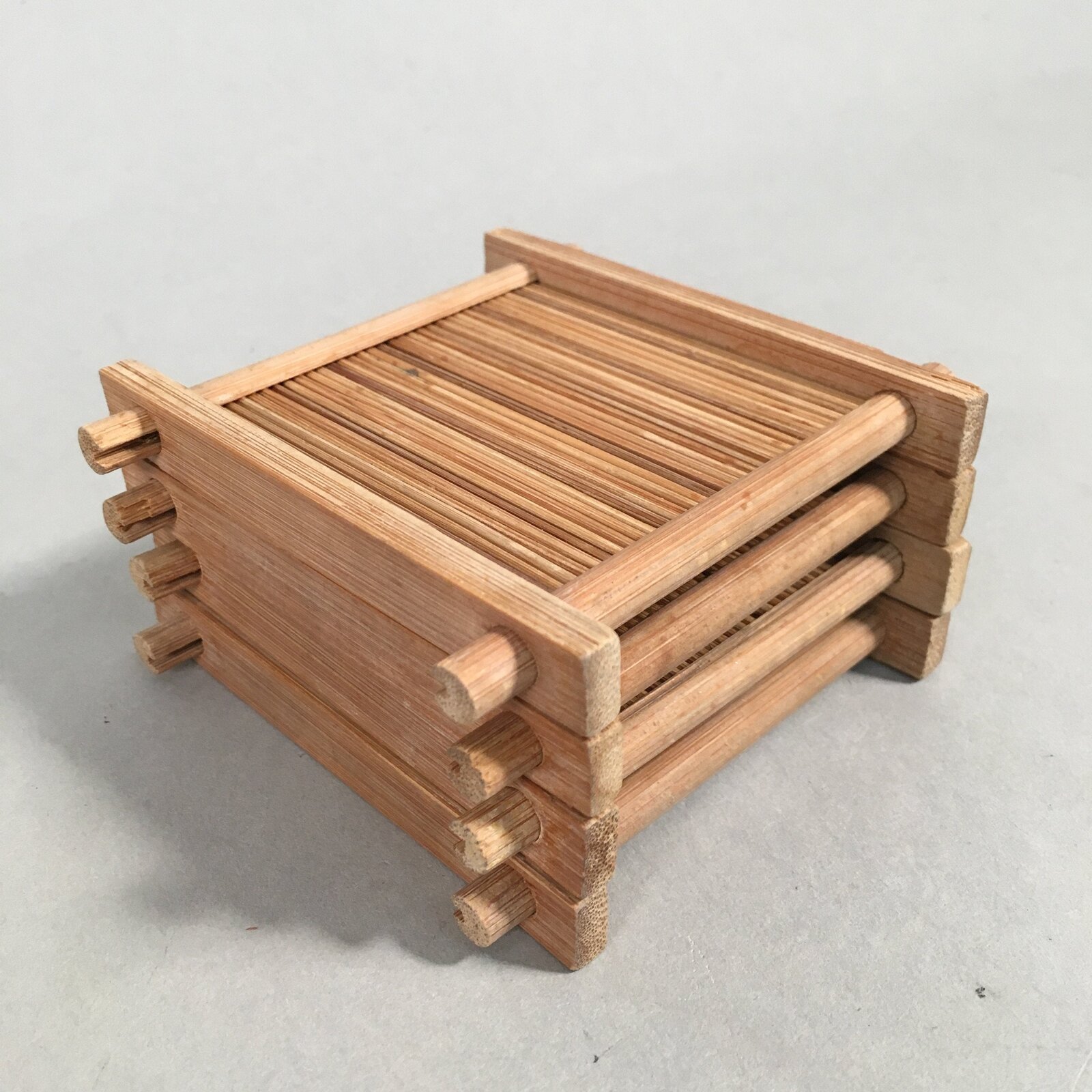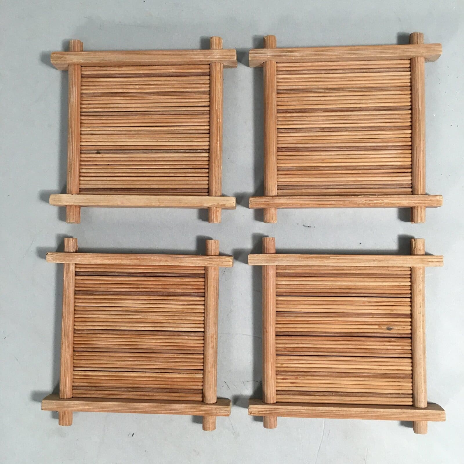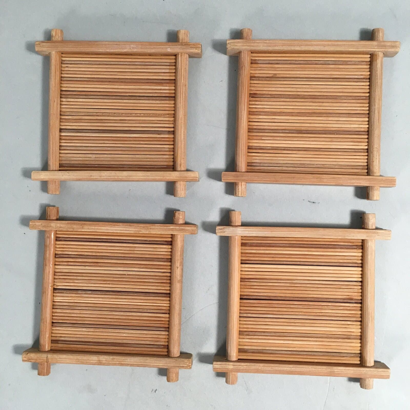 Japanese Bamboo Drink Coaster Saucer 4pc Set Vtg Chataku Square PX511