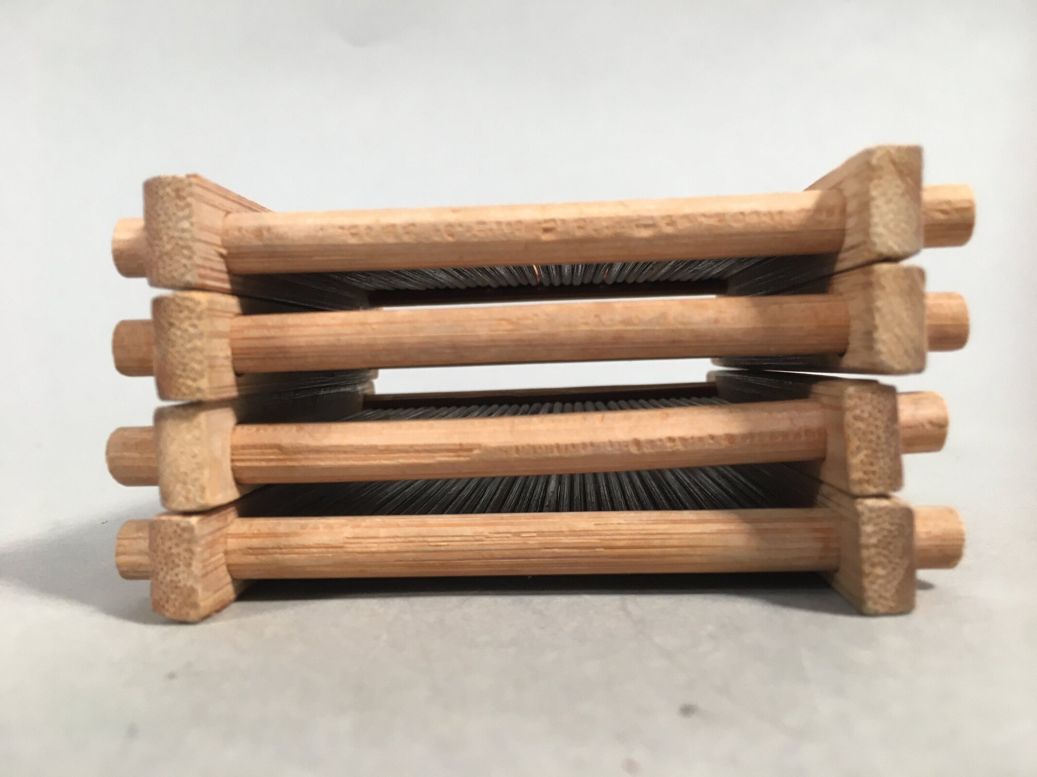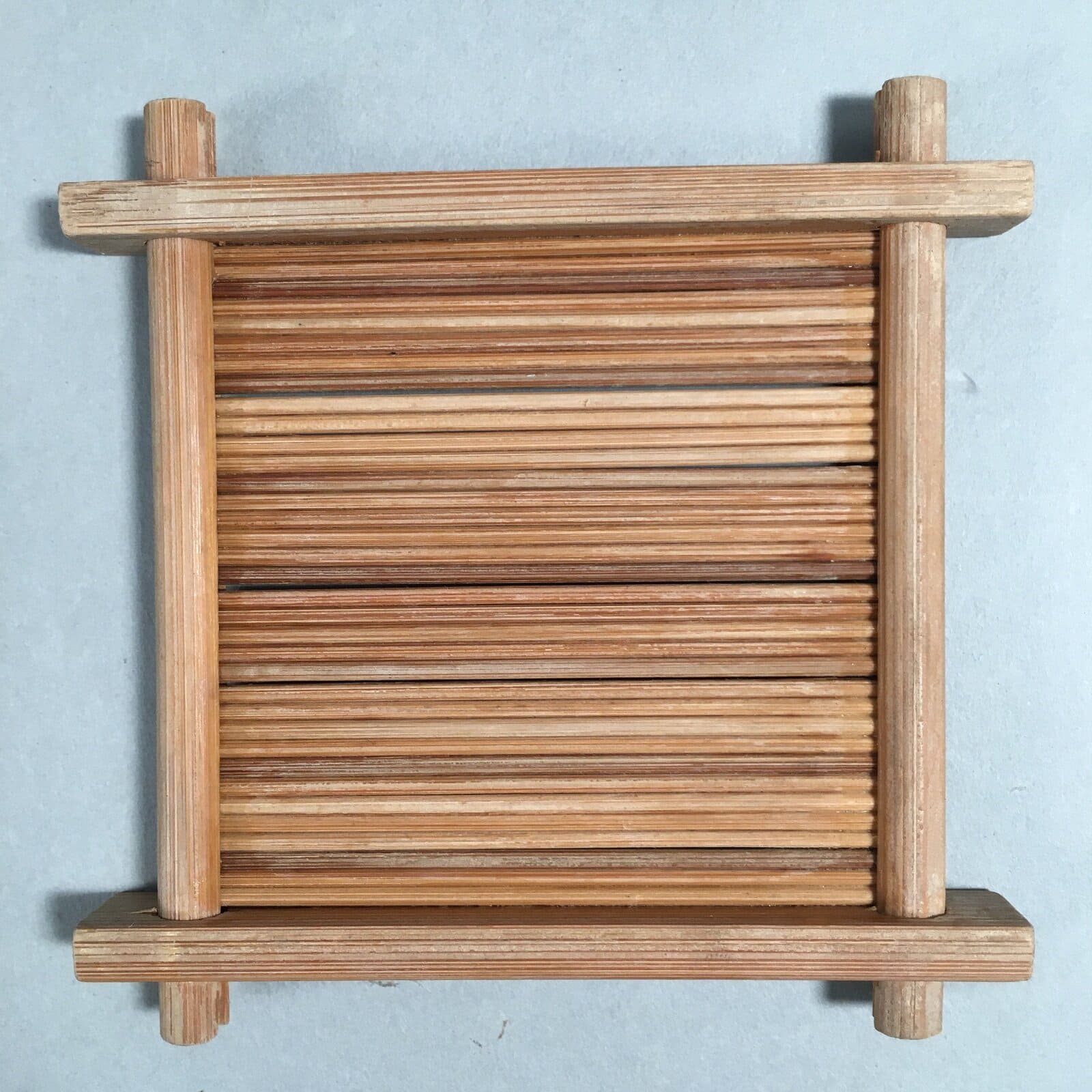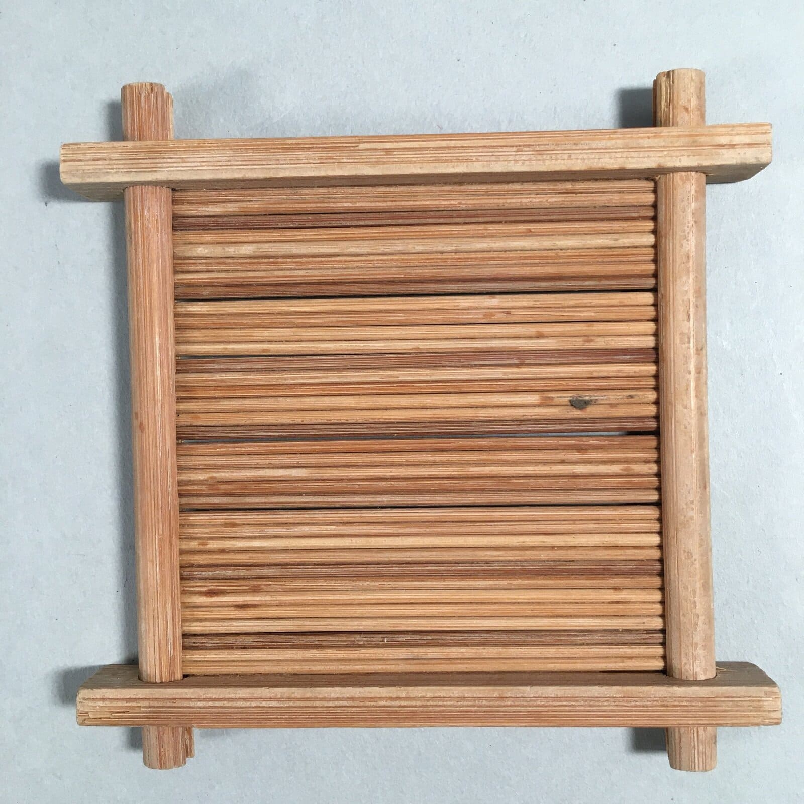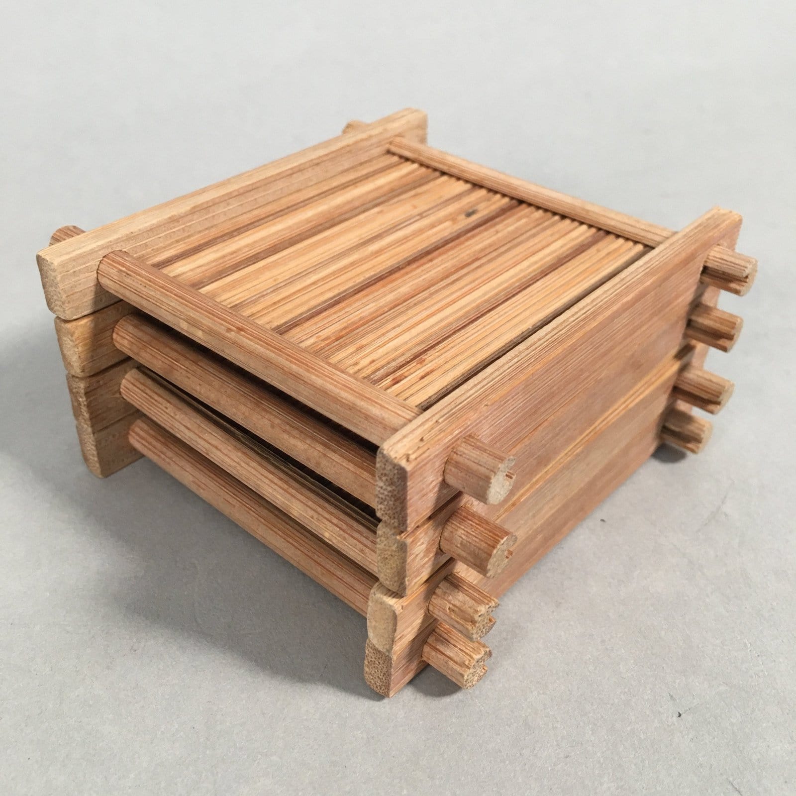 Japanese Bamboo Drink Coaster Saucer 4pc Set Vtg Chataku Square PX511