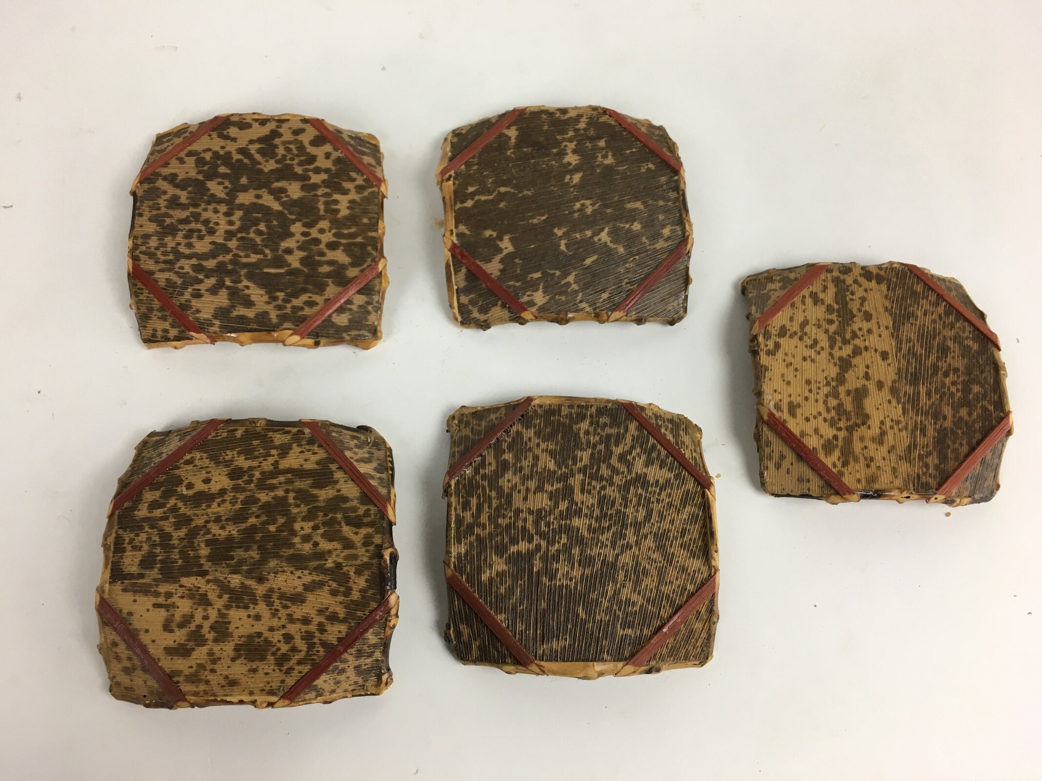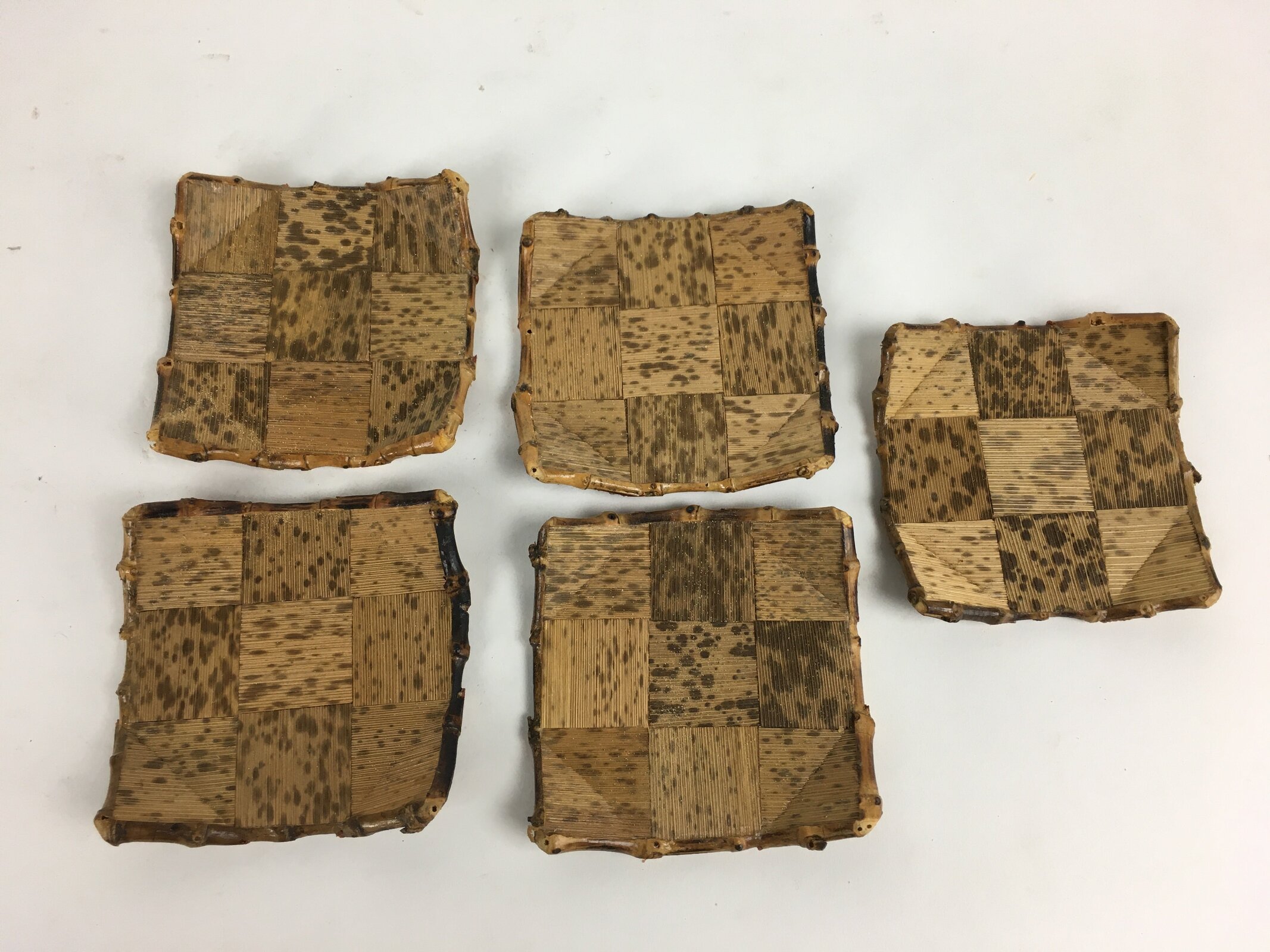 January 18, 2026Japanese Bamboo Drink Coaster Saucer 5pc Set Vtg Chataku Brown JK271