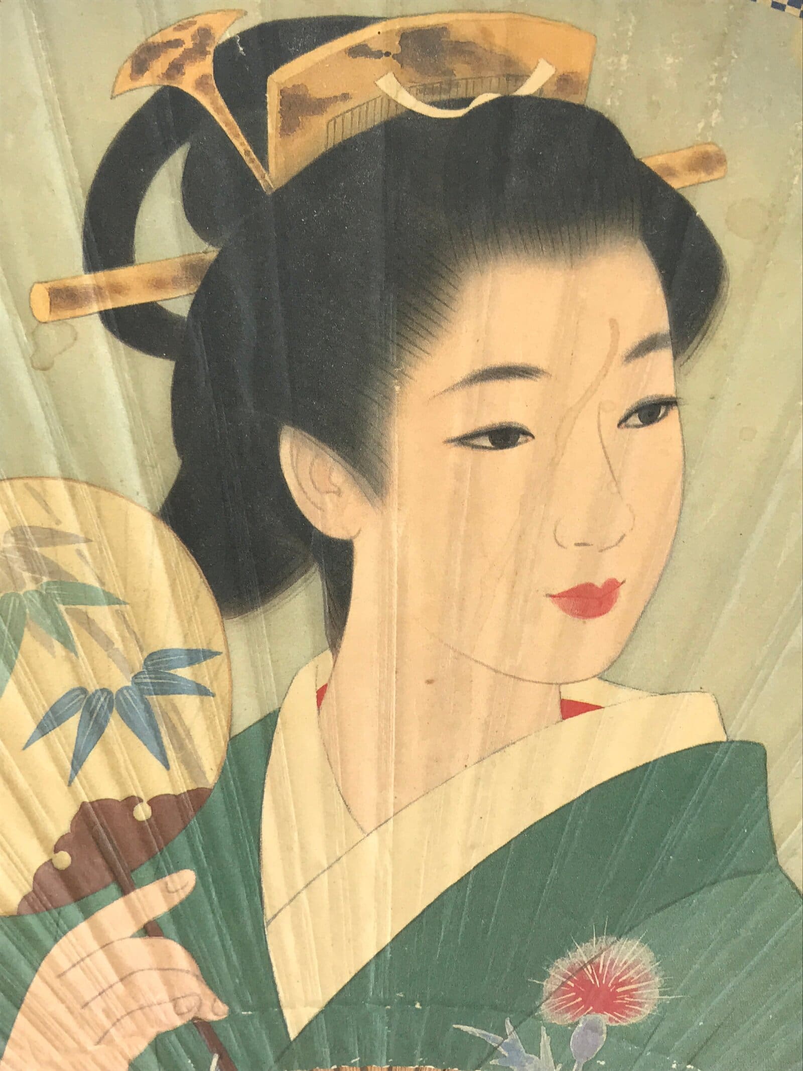 January 20, 2026Japanese Bamboo Fan Uchiwa Bijin-ga Beautiful Kimono Woman Vtg Morinaga JK527