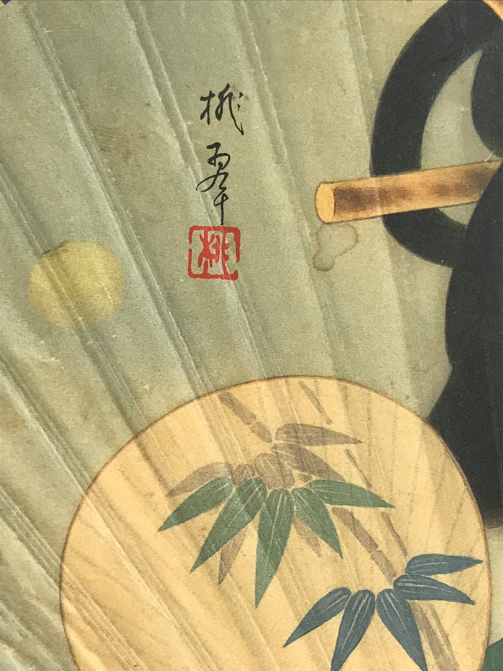 Vtg Japanese Bamboo Fan Uchiwa