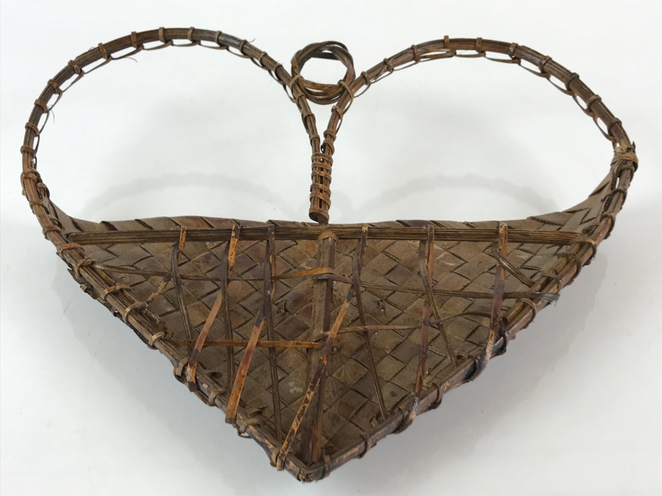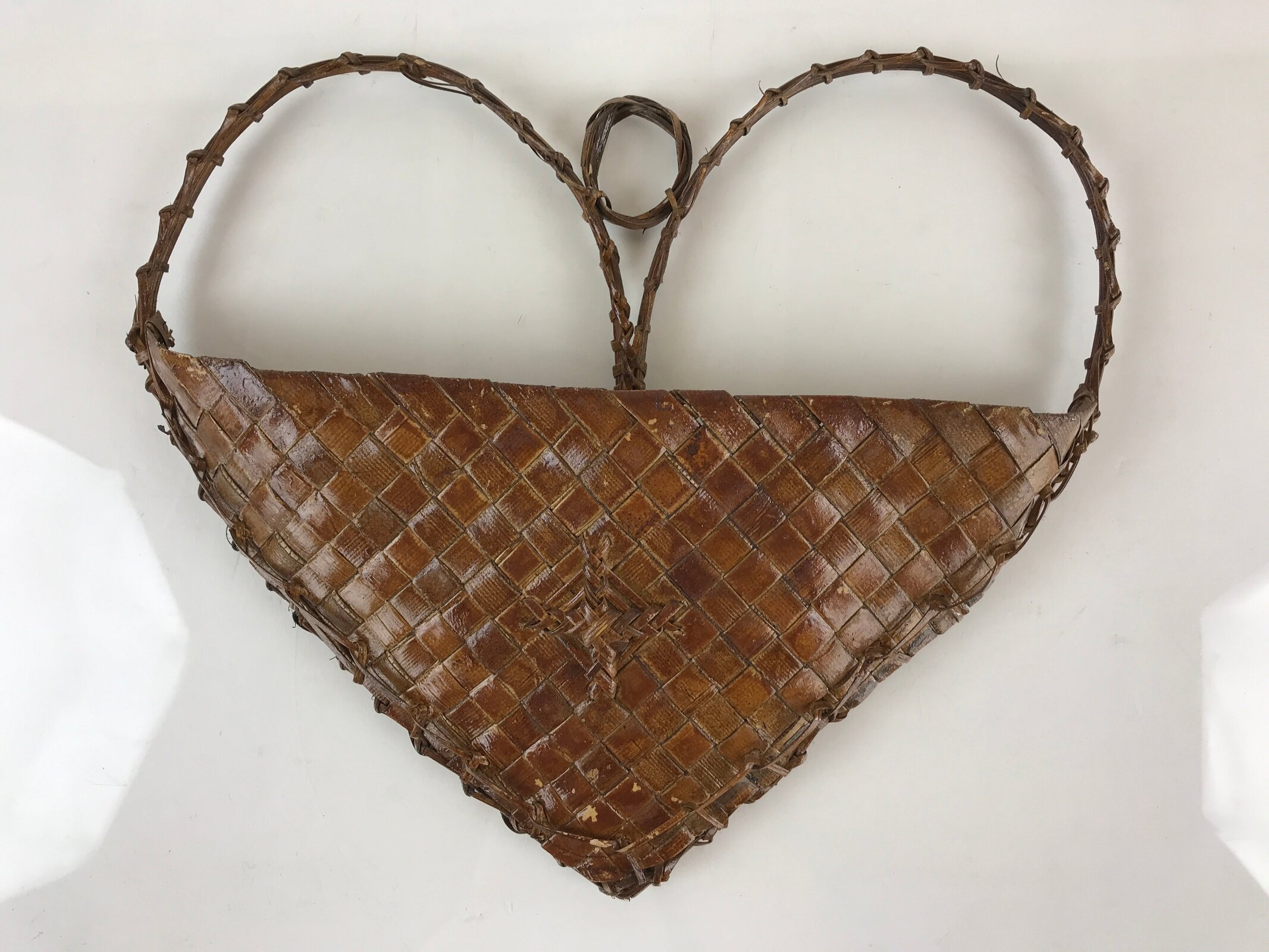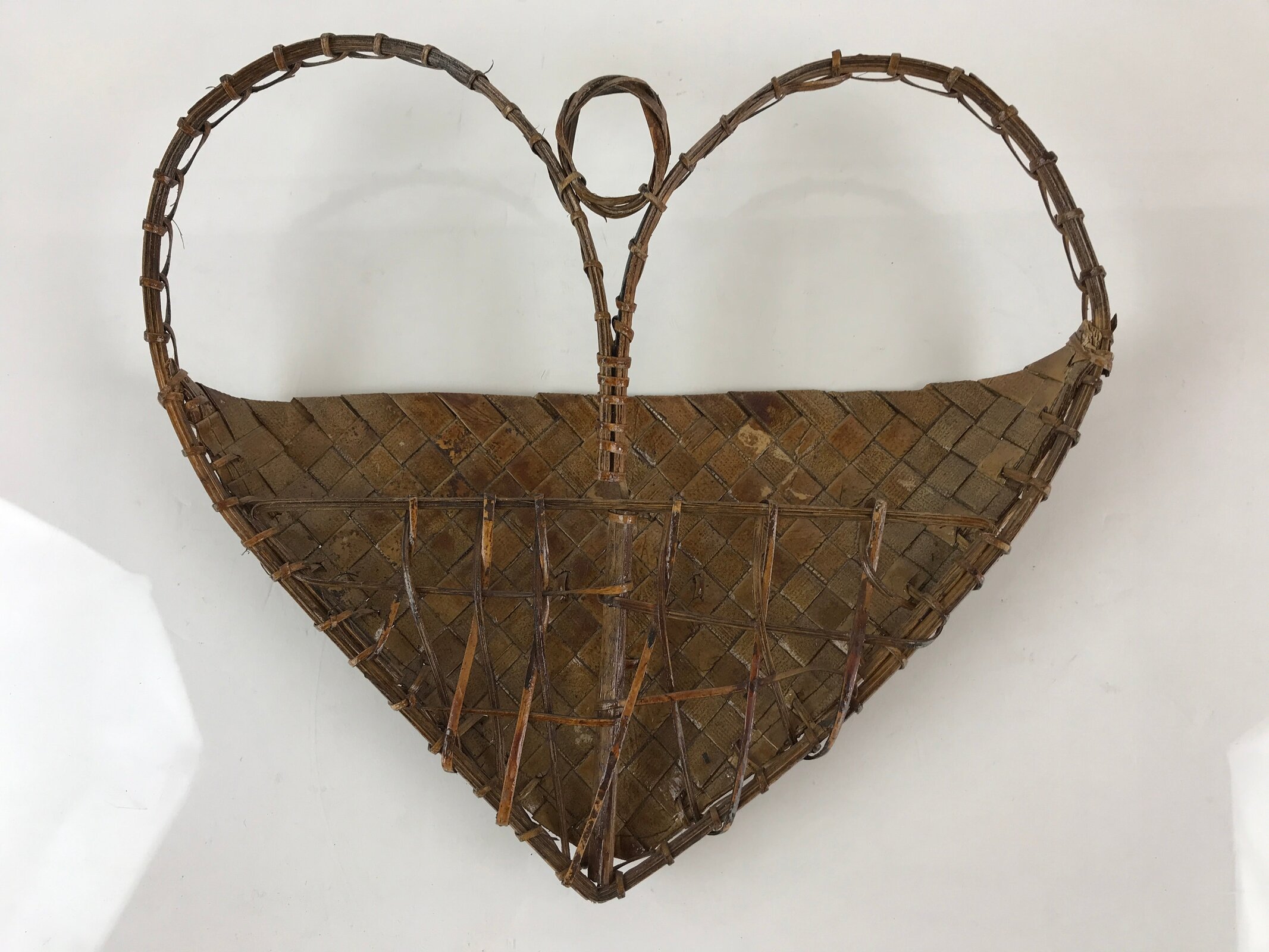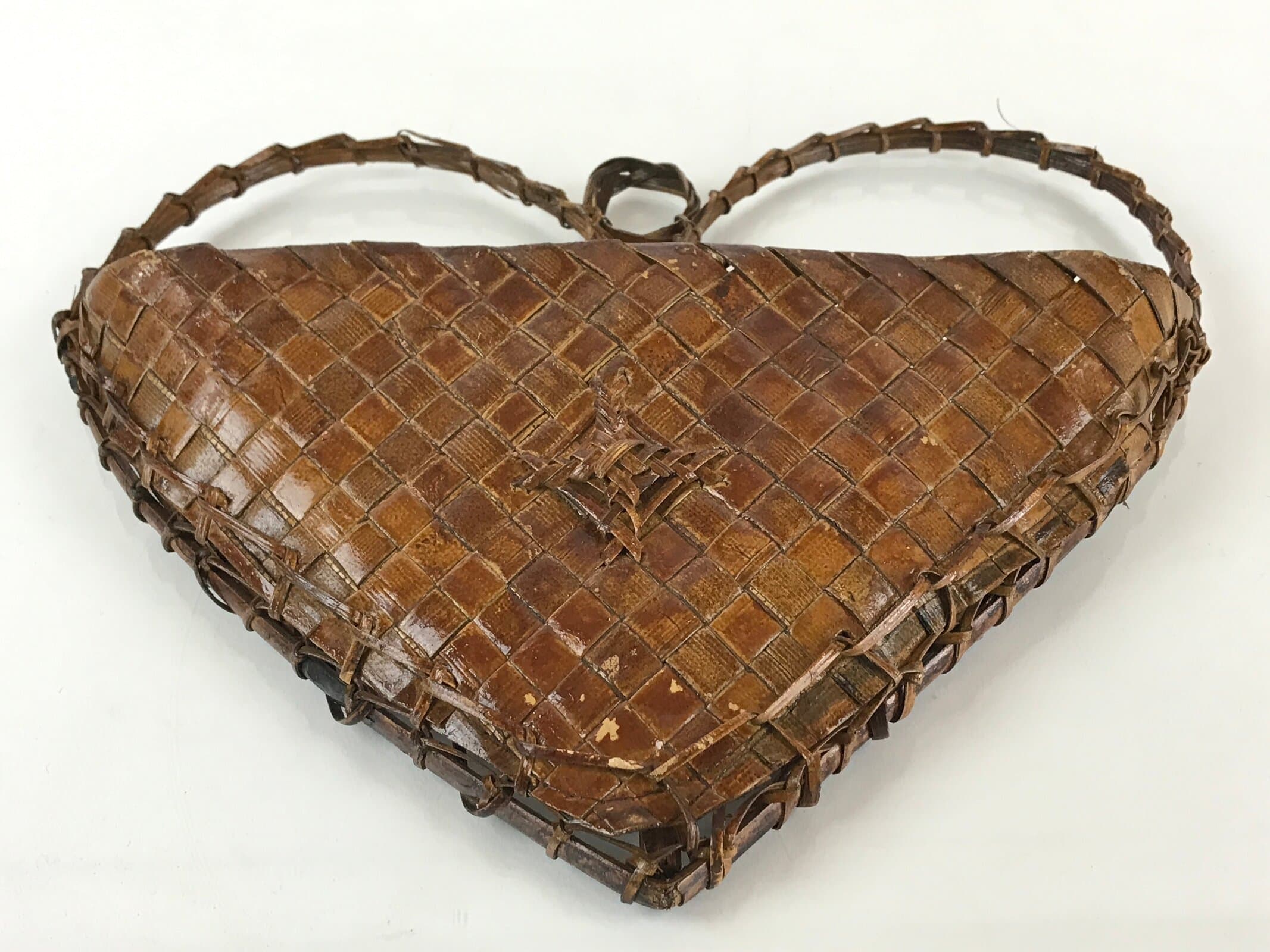 This is a Japanese vintage wall-hanging letter pocket made of bamboo. This is a heart shape basket for letters, bills, envelopes, etc.