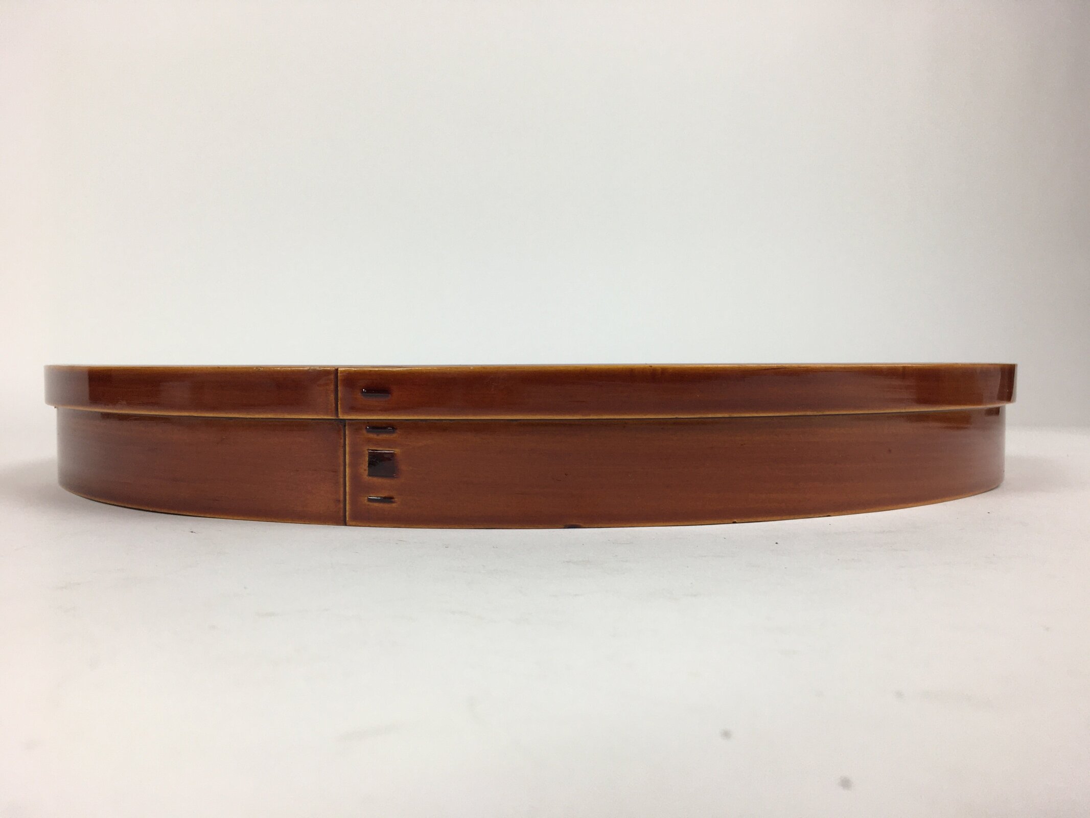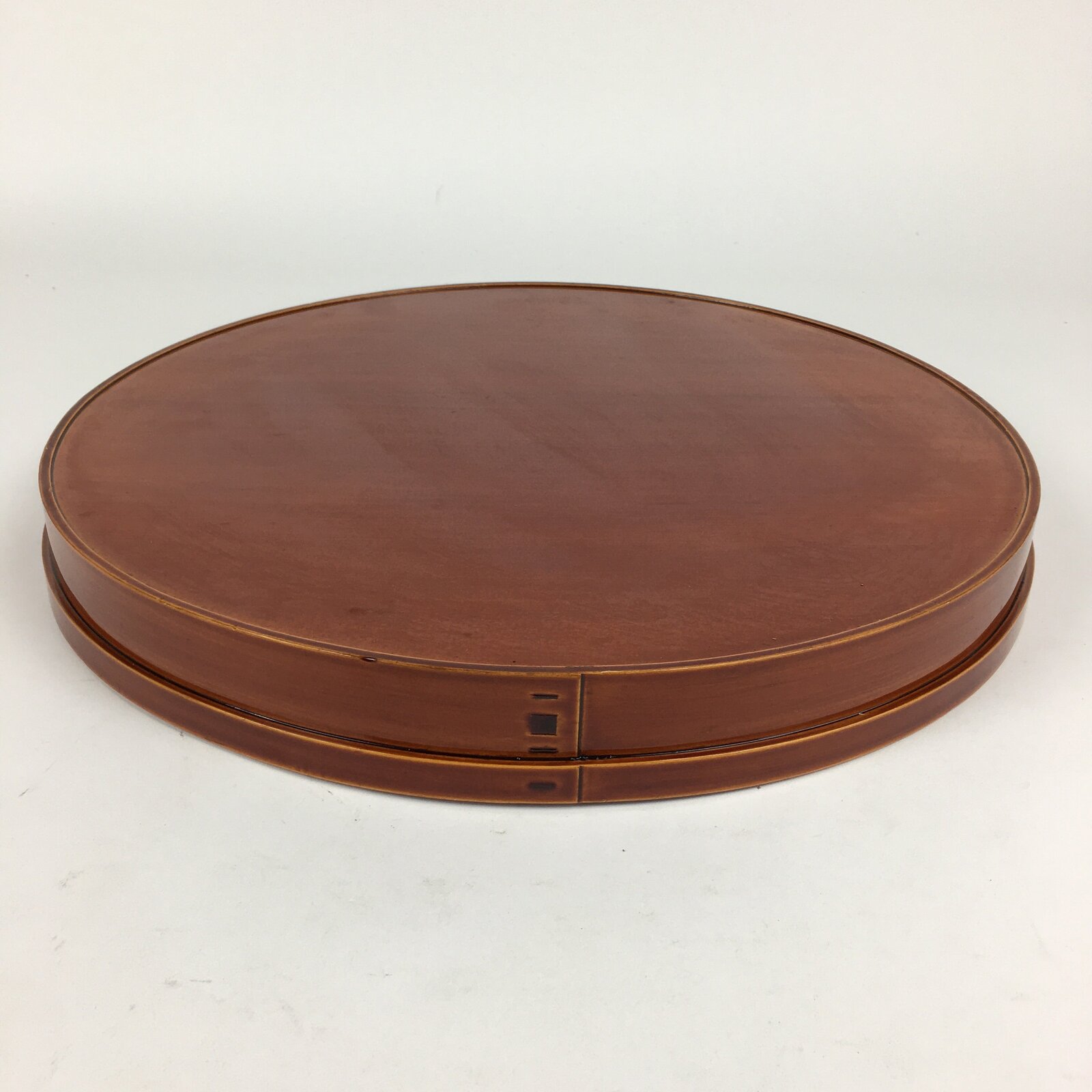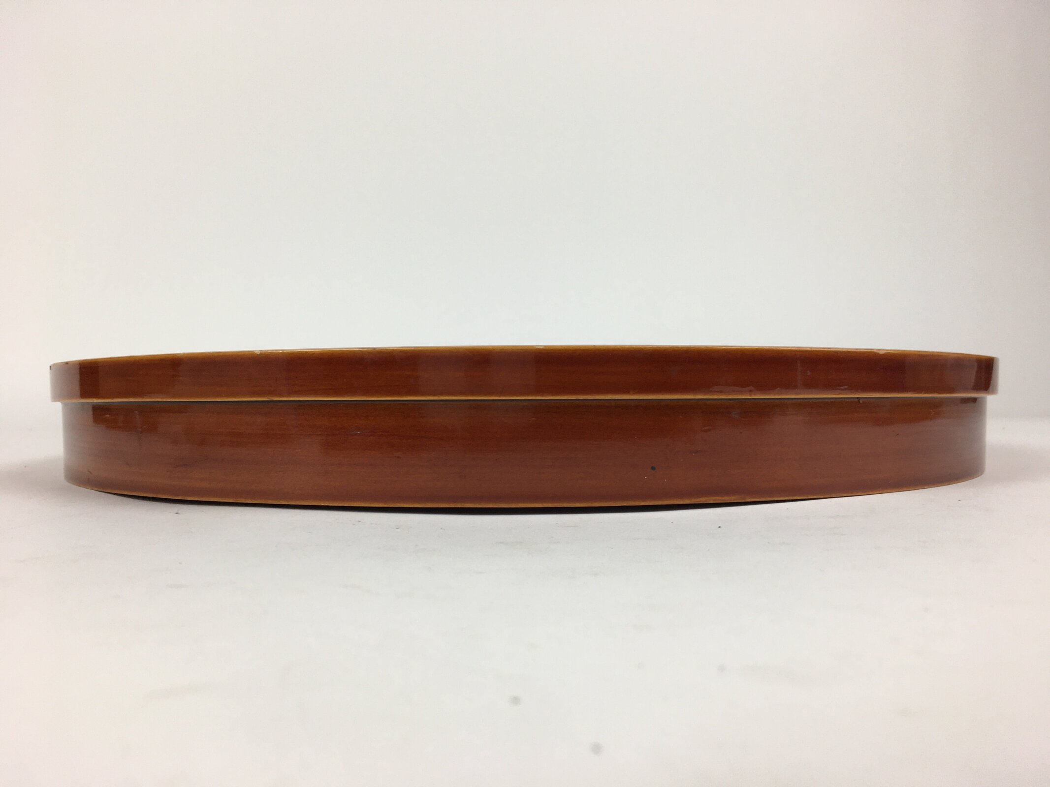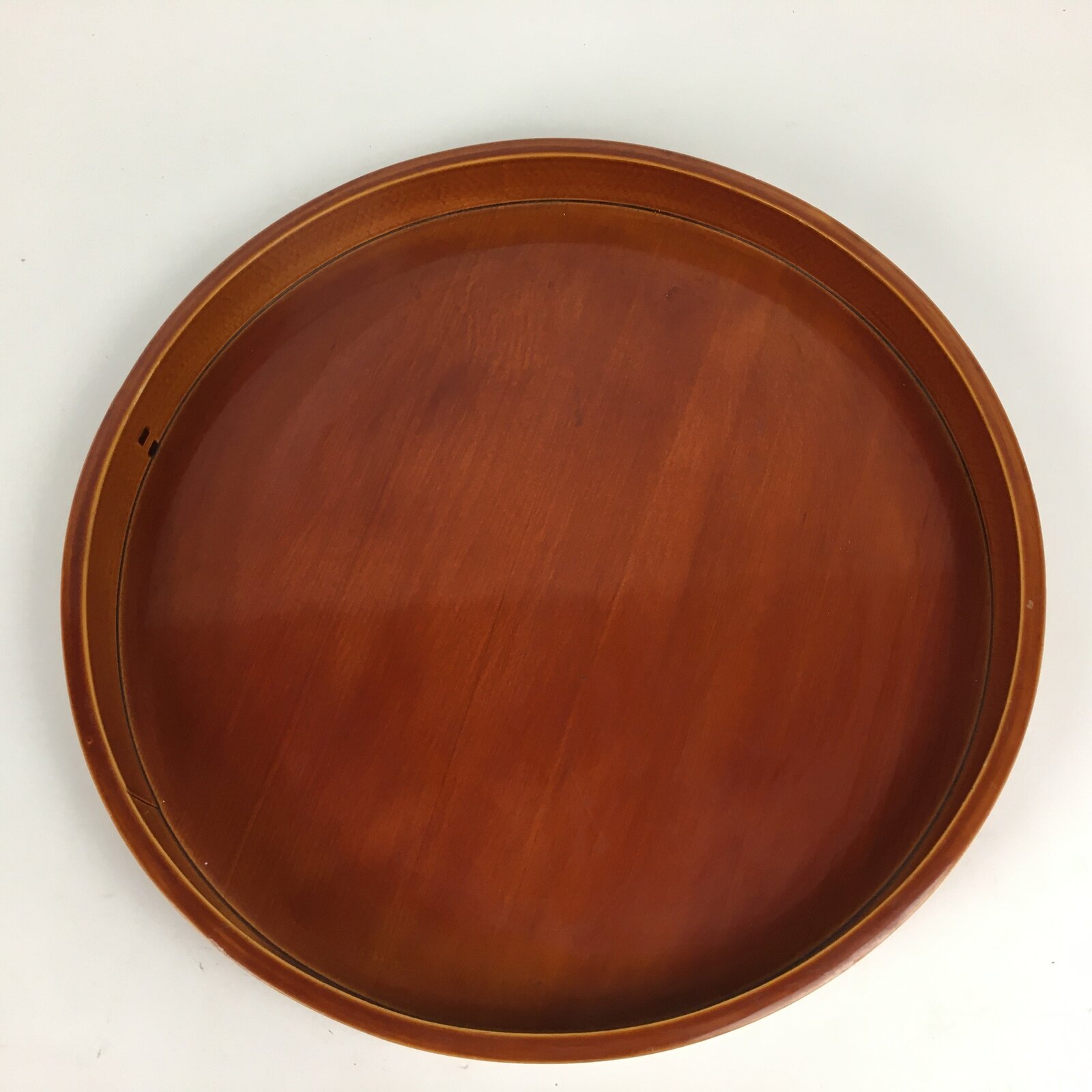 Japanese Bentwood Lacquered Tray Obon Vtg Shunkei-Nuri Round Brown UR636