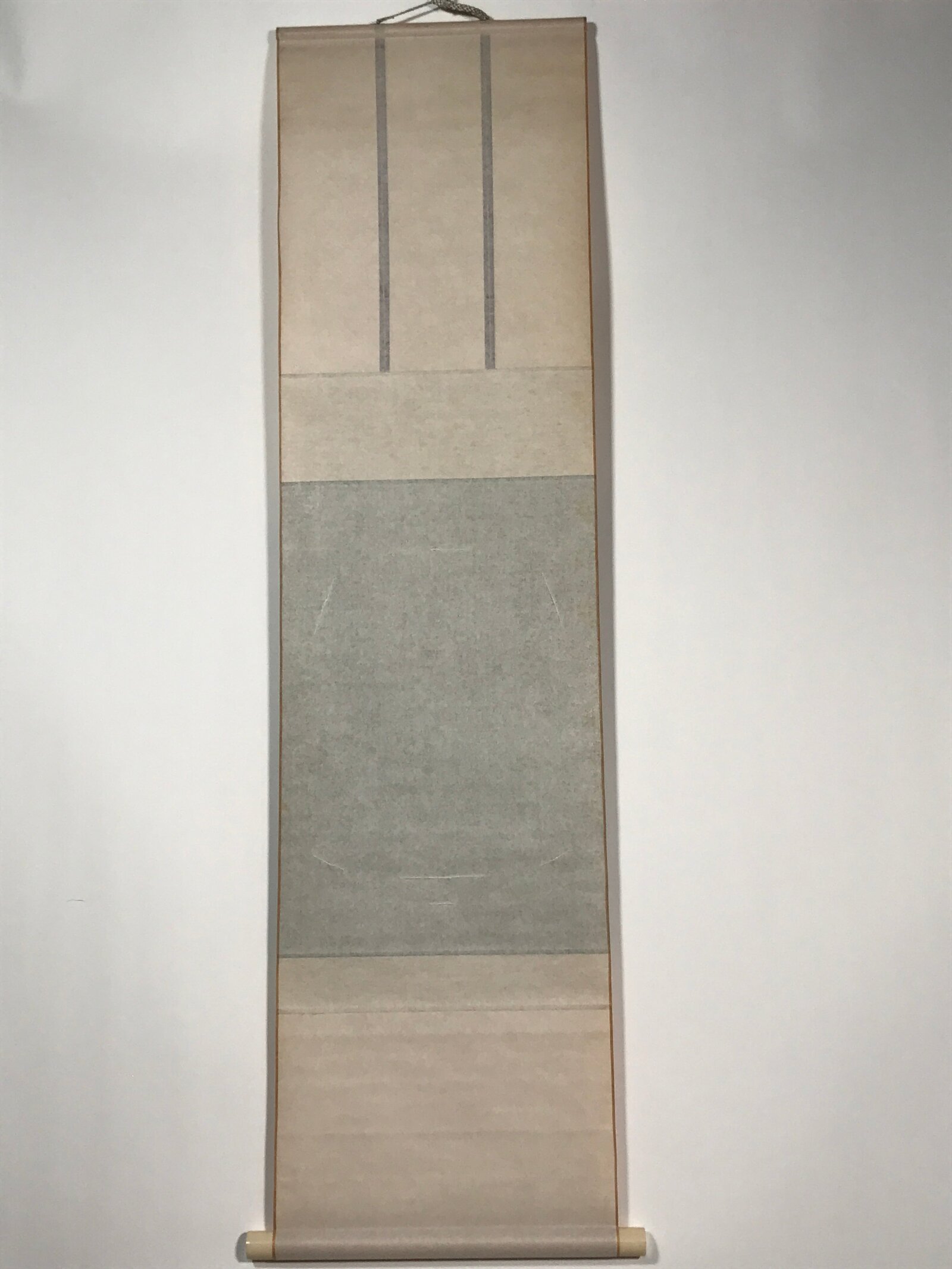 Japanese Blank Hanging Scroll Vtg Thread Holders Water Green Blue Plain SC872