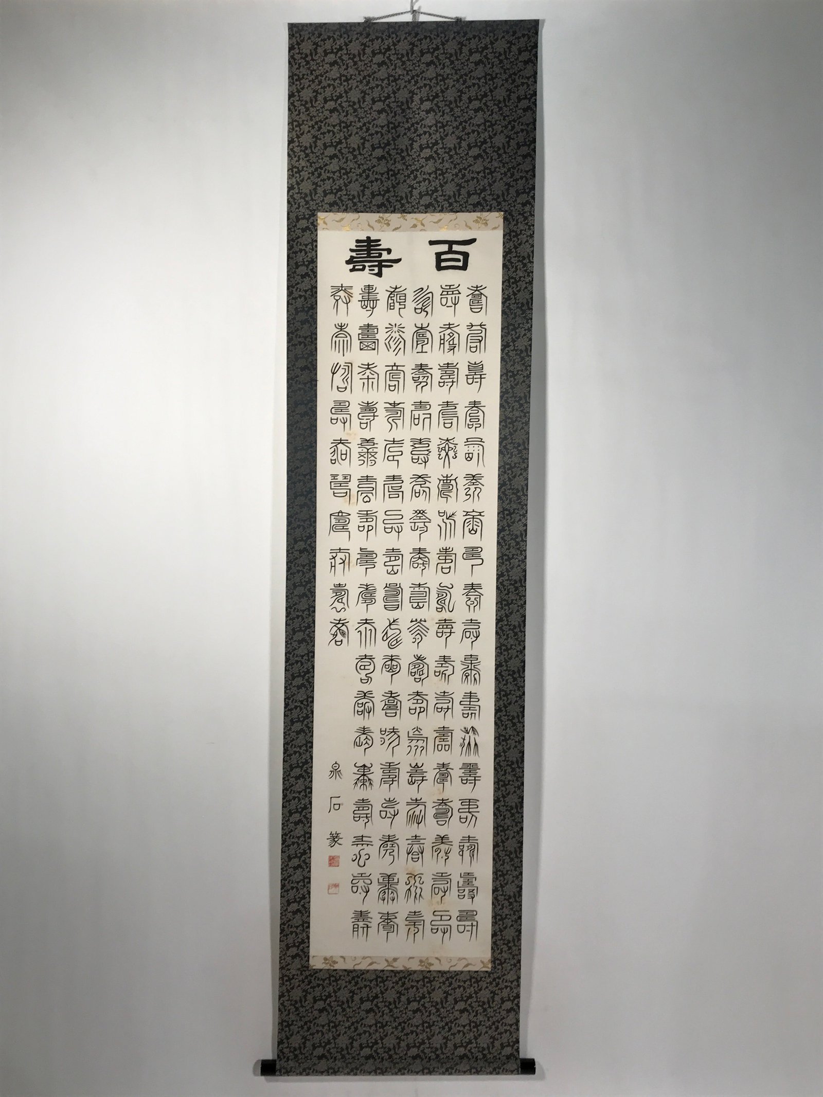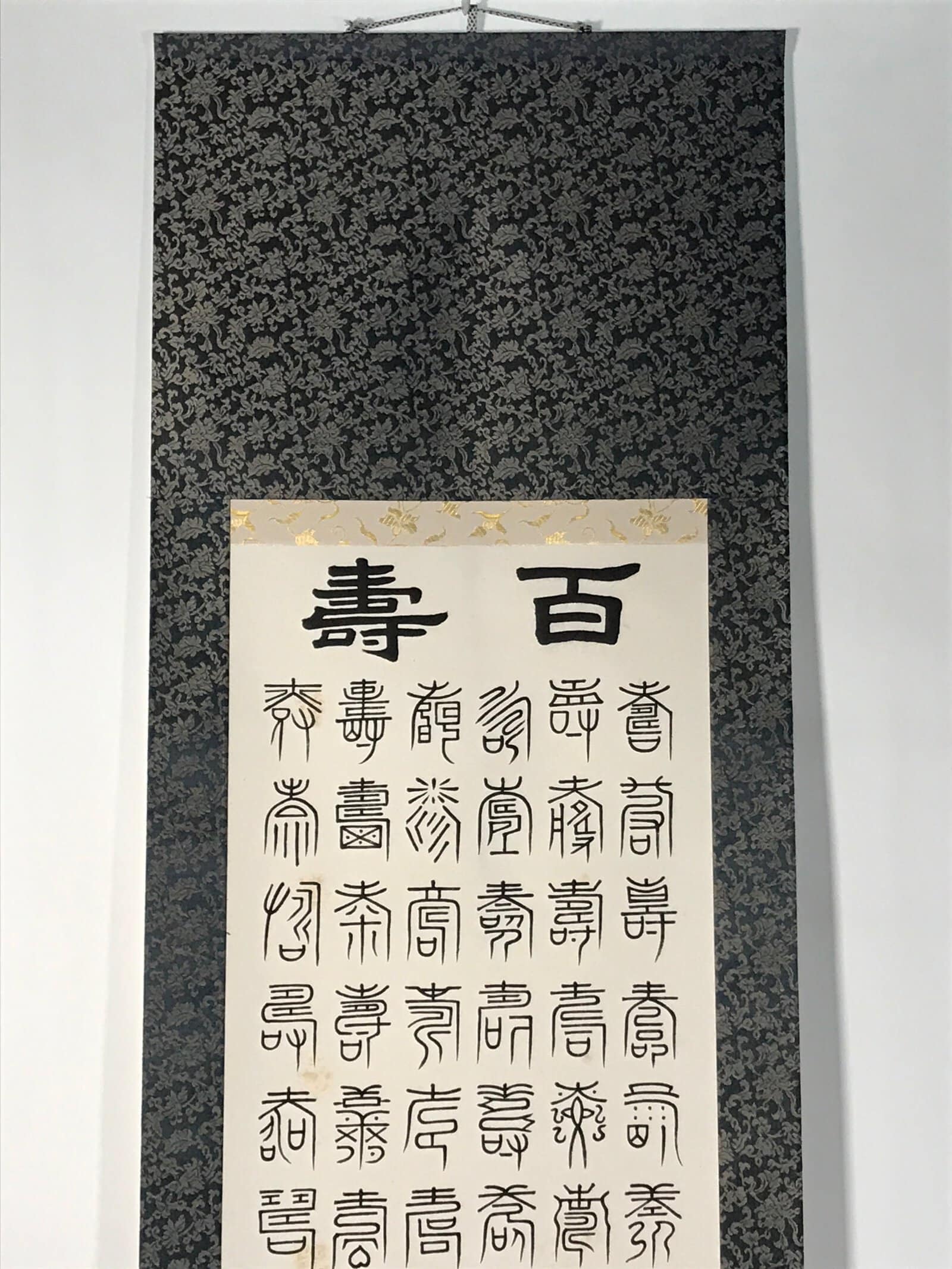 January 24, 2026Japanese Boxed Hanging Scroll Kakejiku 100 Longevity Hyakujyu Calligraphy KJ163