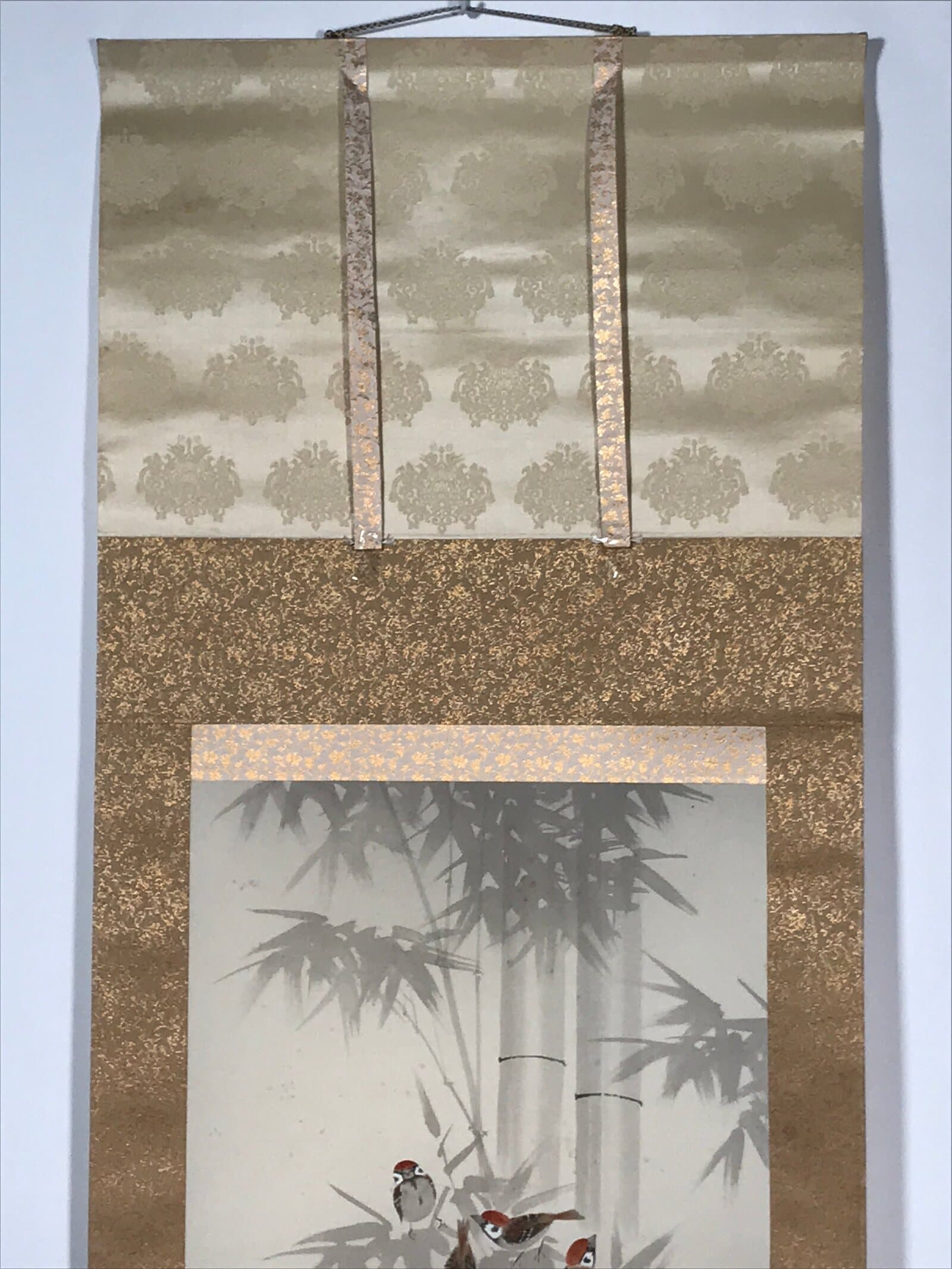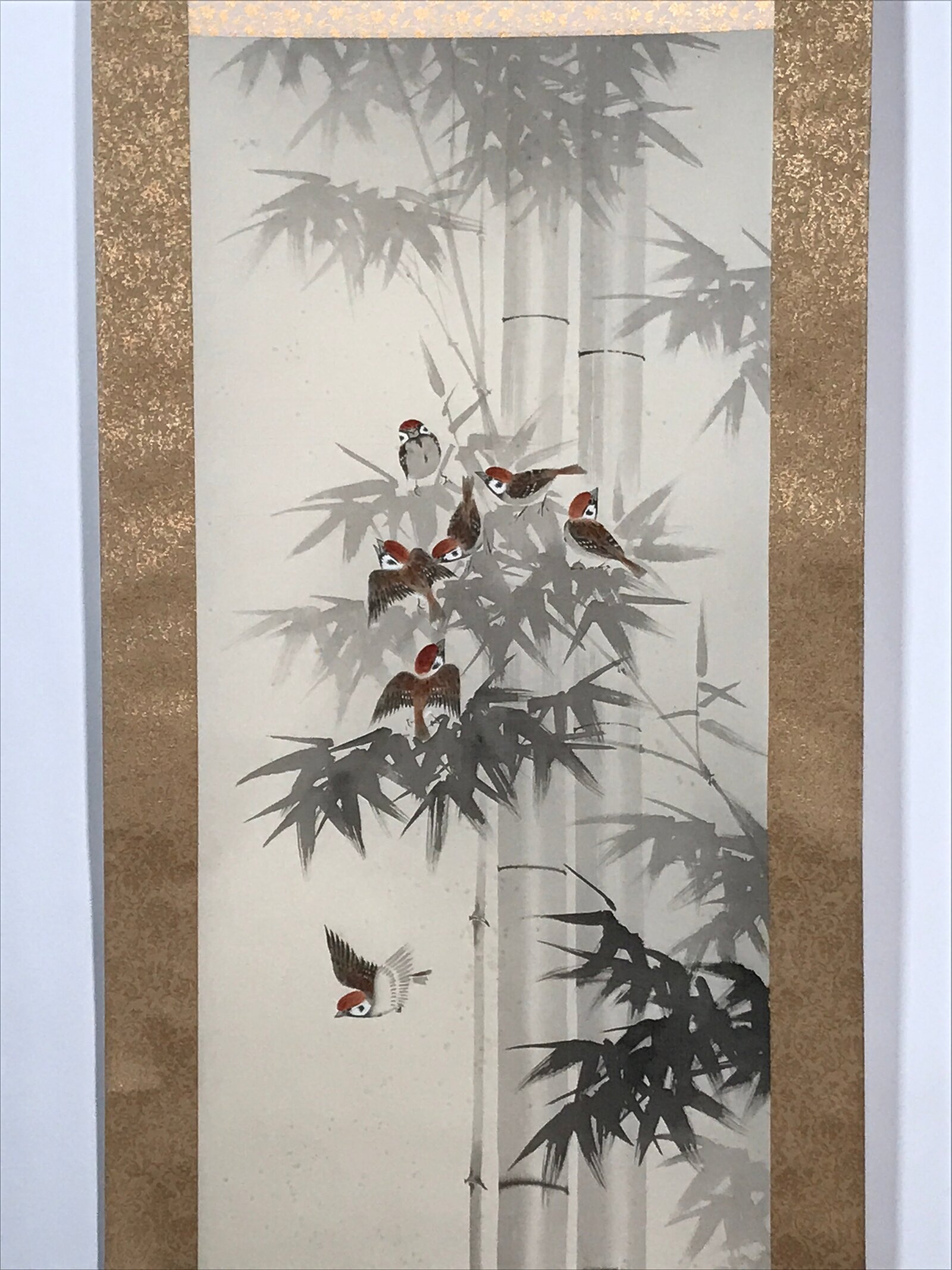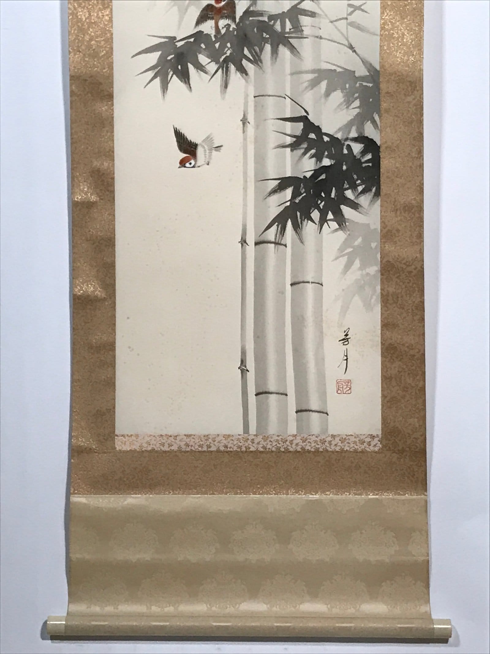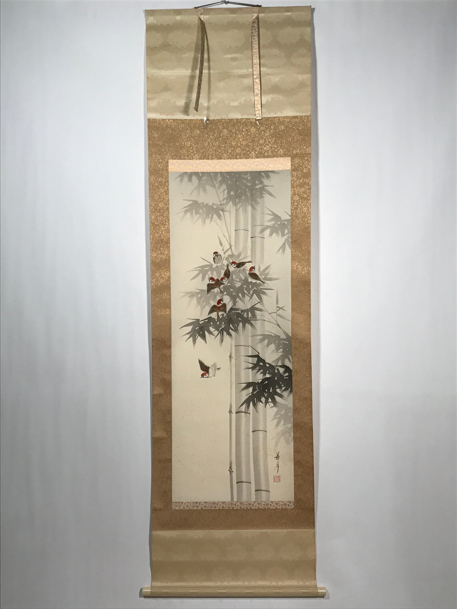January 22, 2026Japanese Boxed Hanging Scroll Vtg Birds Suzume Bamboo Kacho Kakejiku SC984