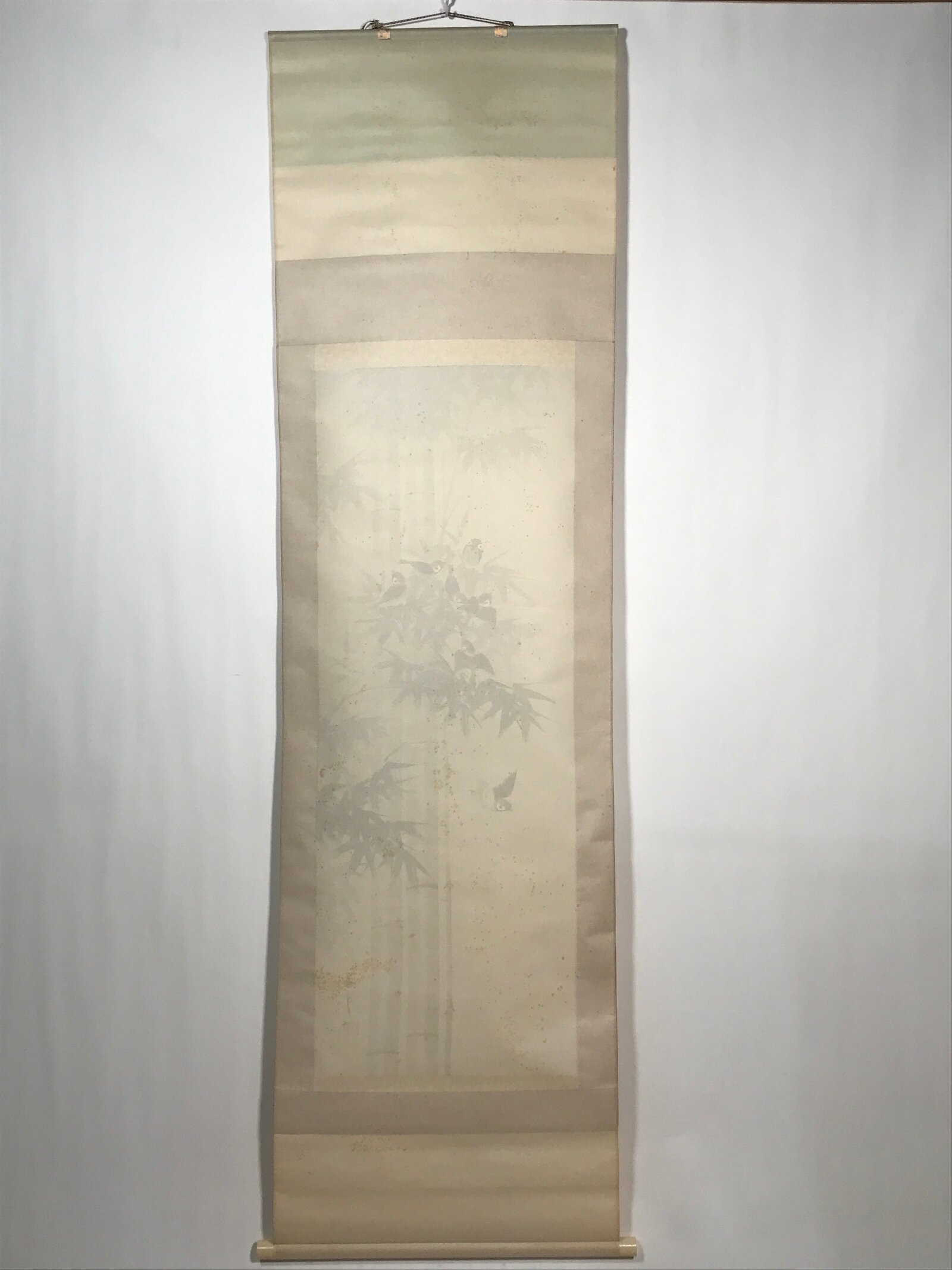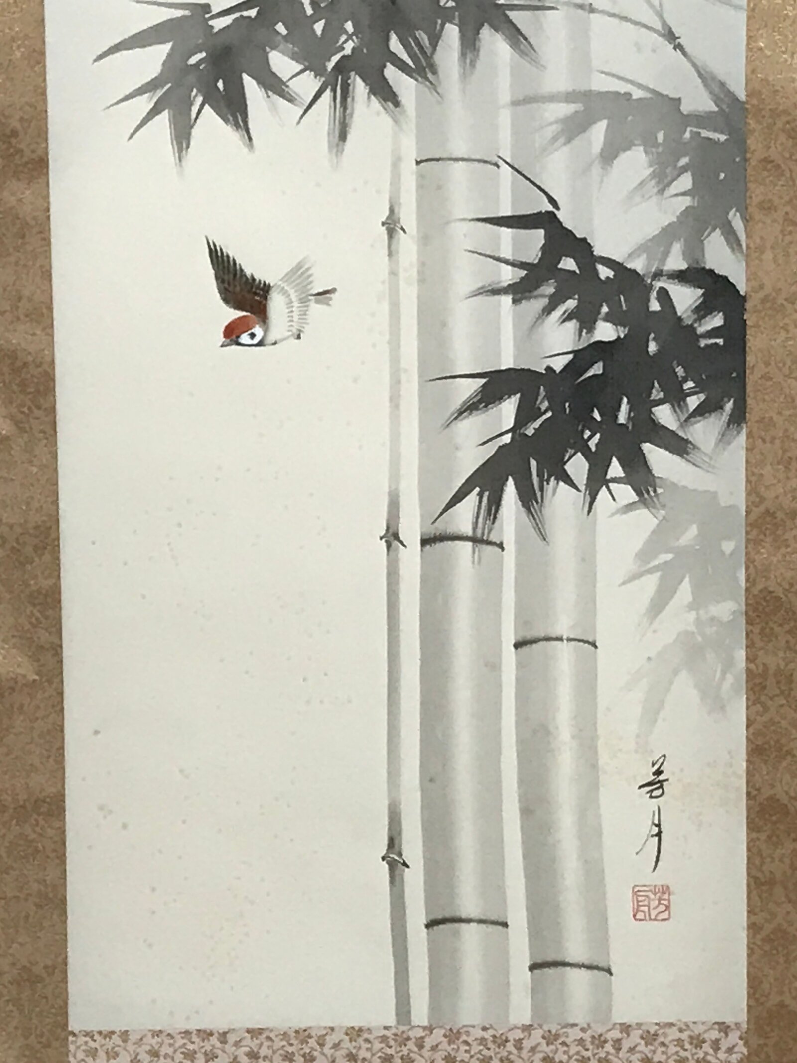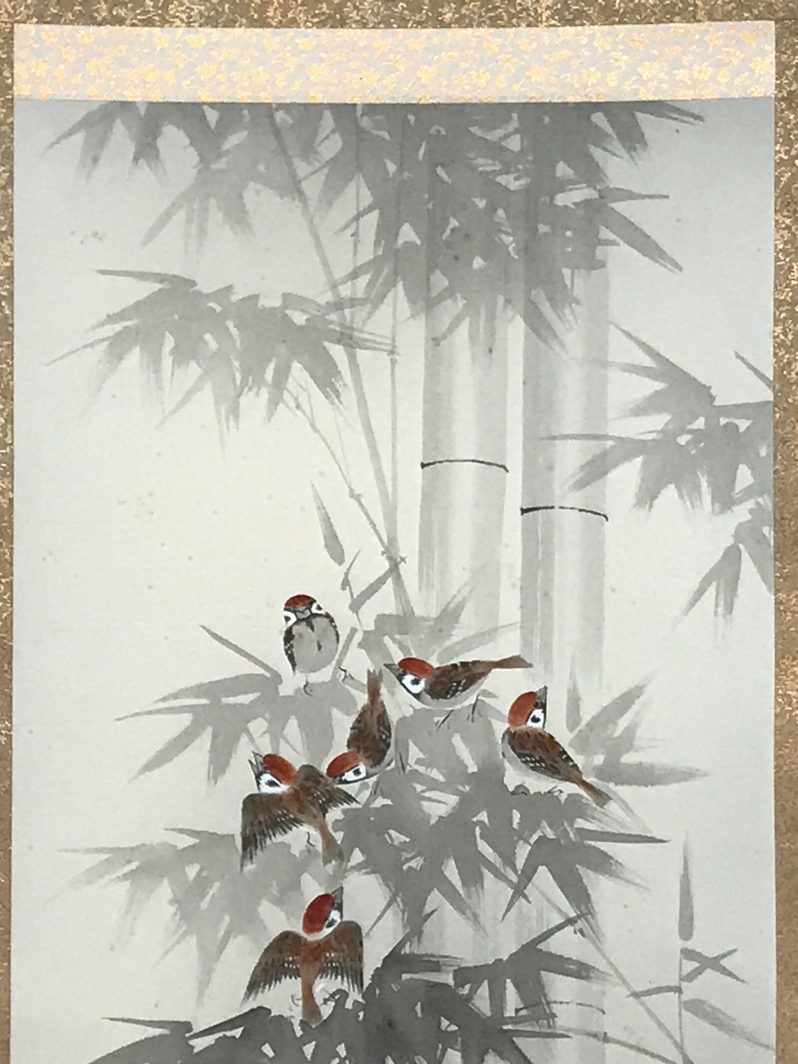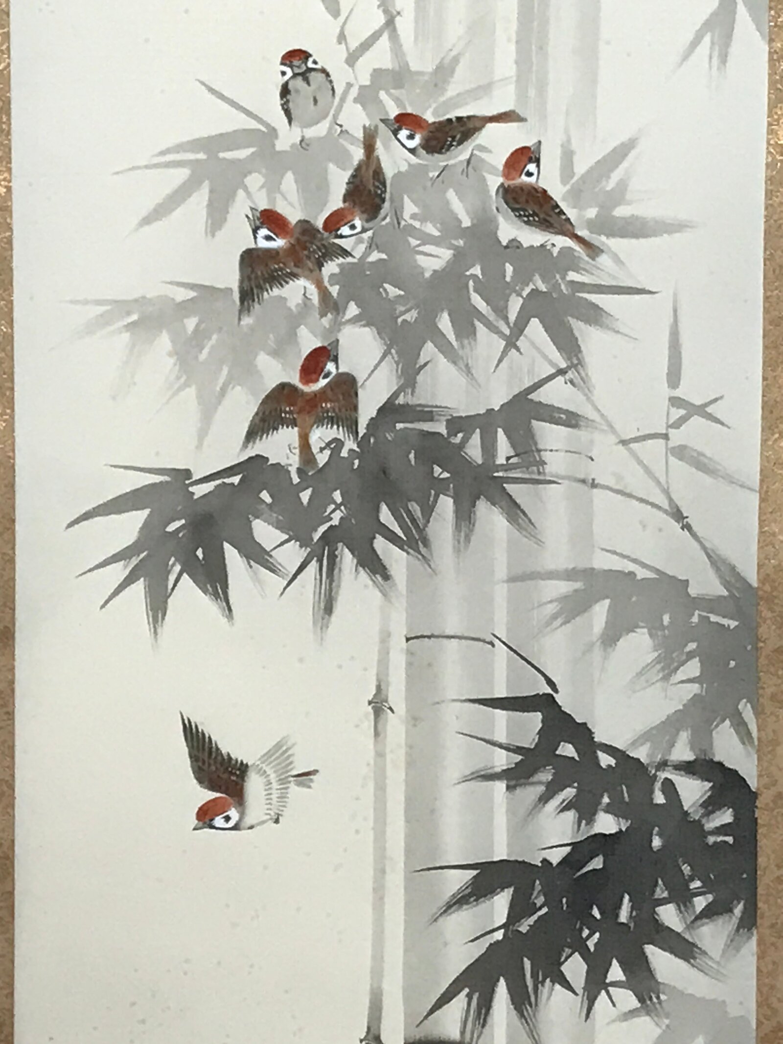 January 22, 2026Japanese Boxed Hanging Scroll Vtg Birds Suzume Bamboo Kacho Kakejiku SC984