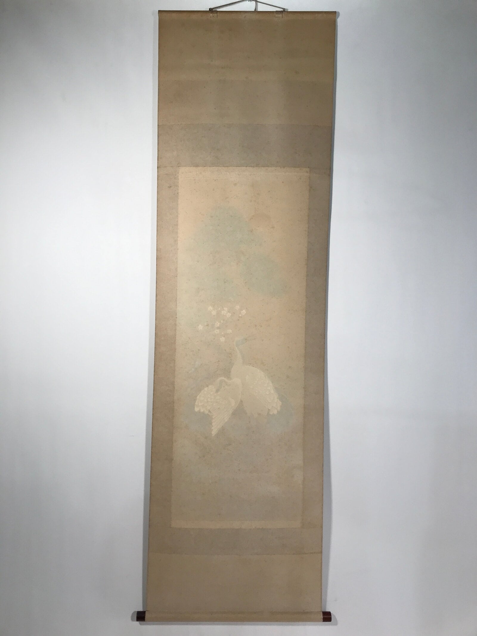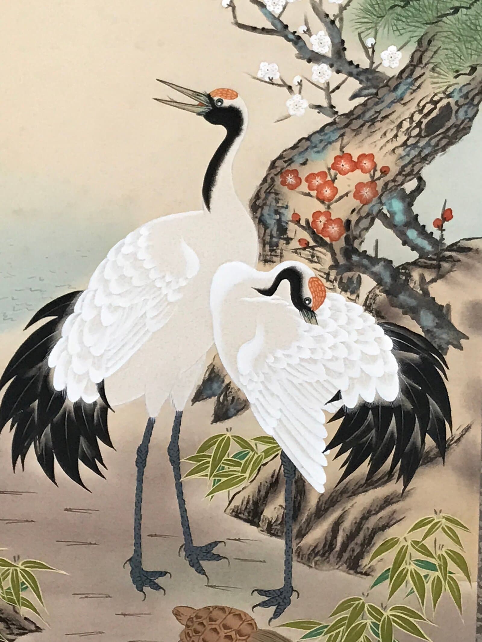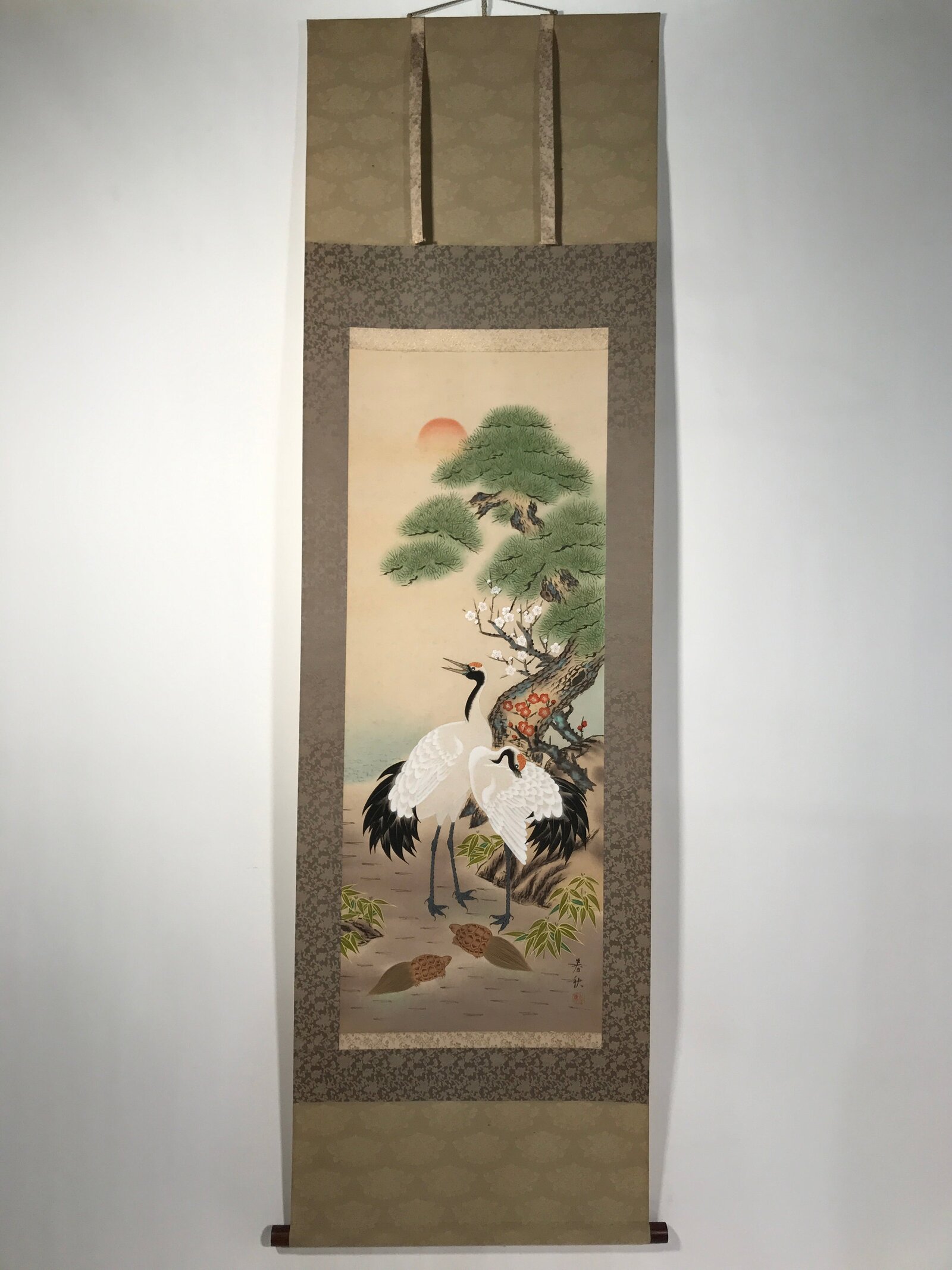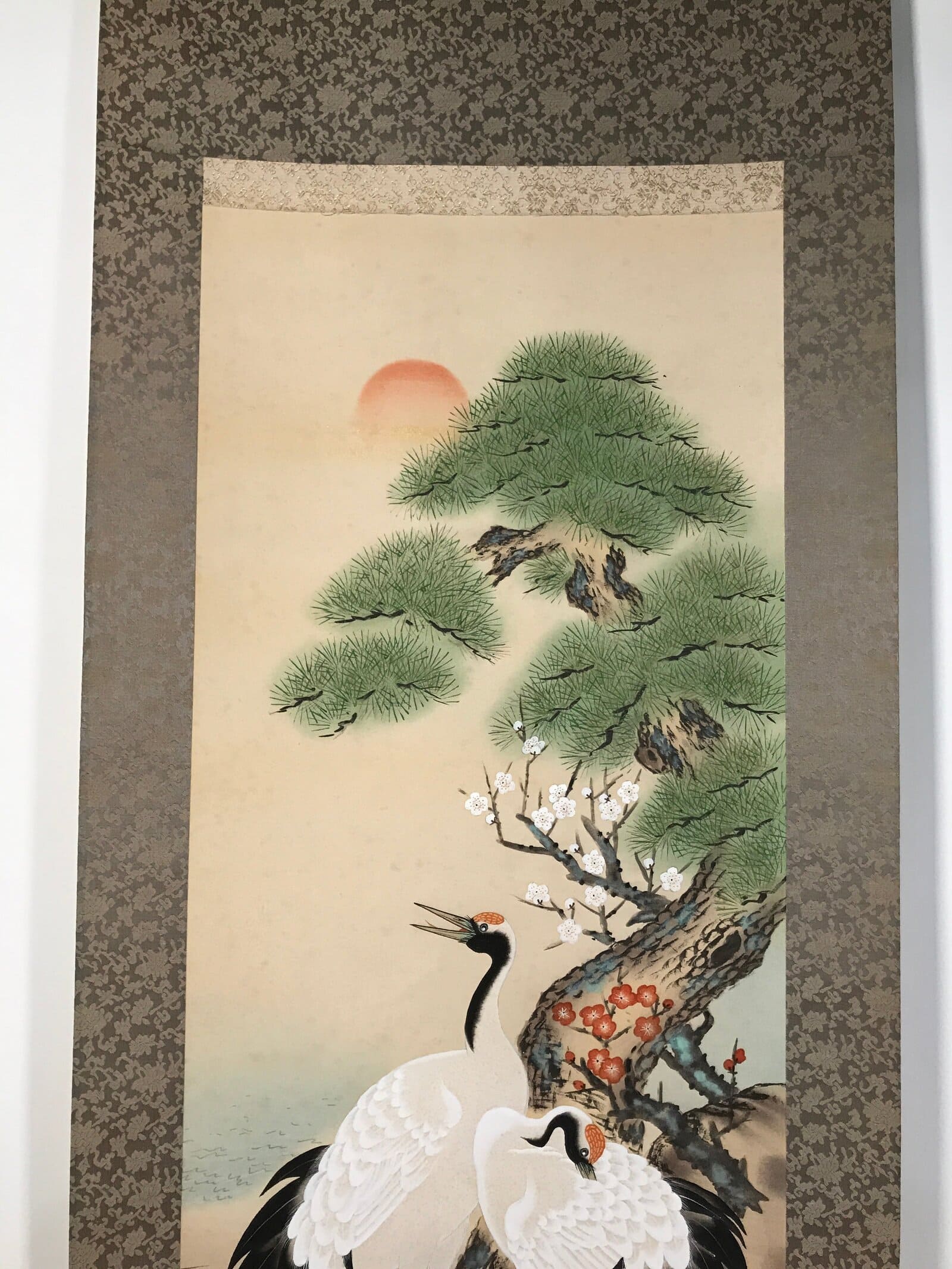 January 24, 2026Japanese Boxed Hanging Scroll Vtg Kakejiku Cranes Pine Tree Plum Blossoms KJ150