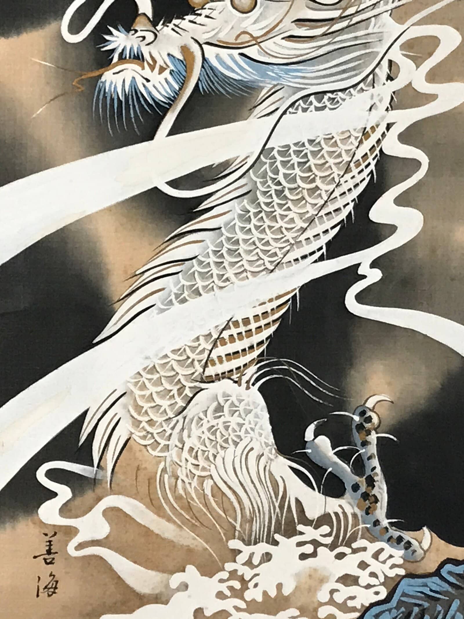 January 24, 2026Japanese Boxed Hanging Scroll Vtg Guardian White Dragon Zenkai Kakejiku KJ158