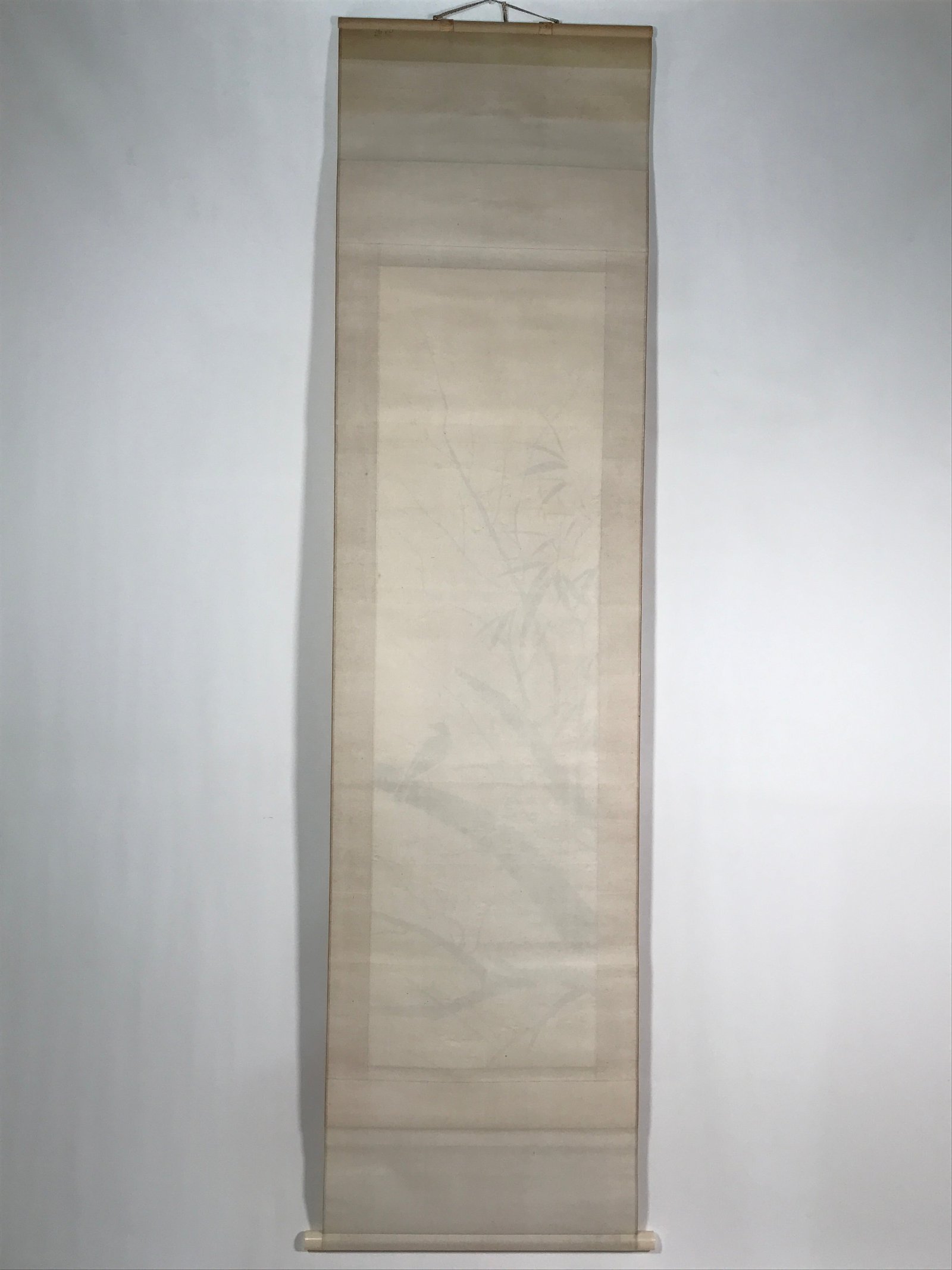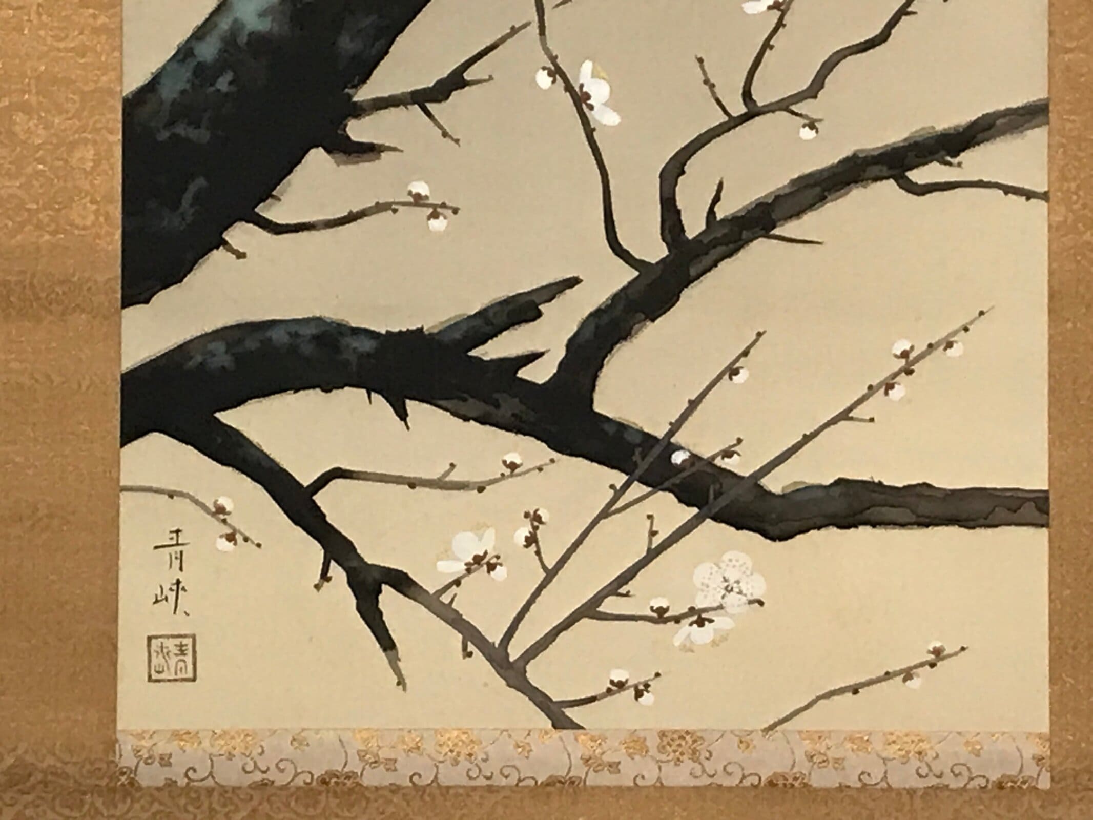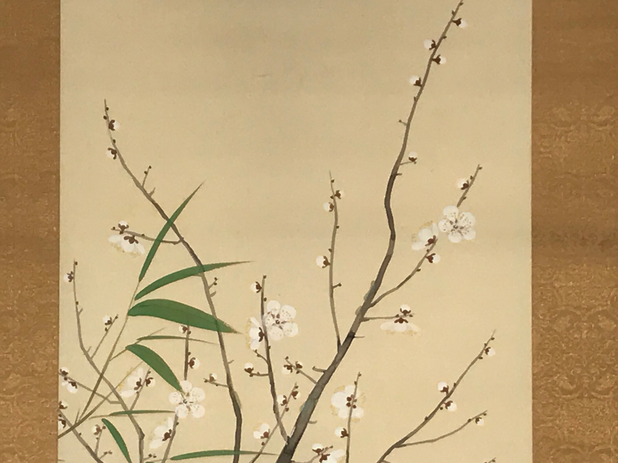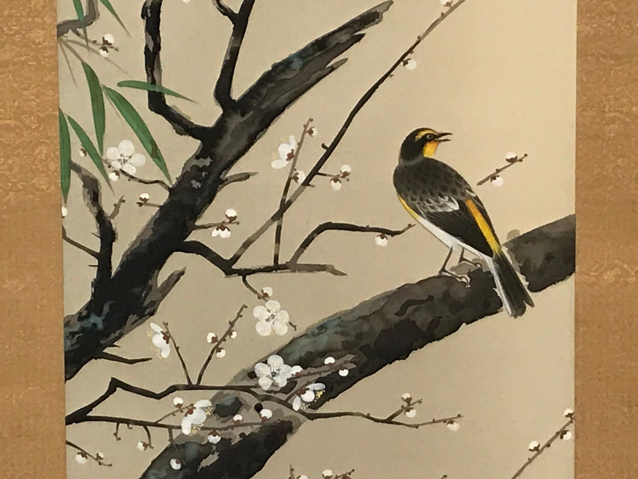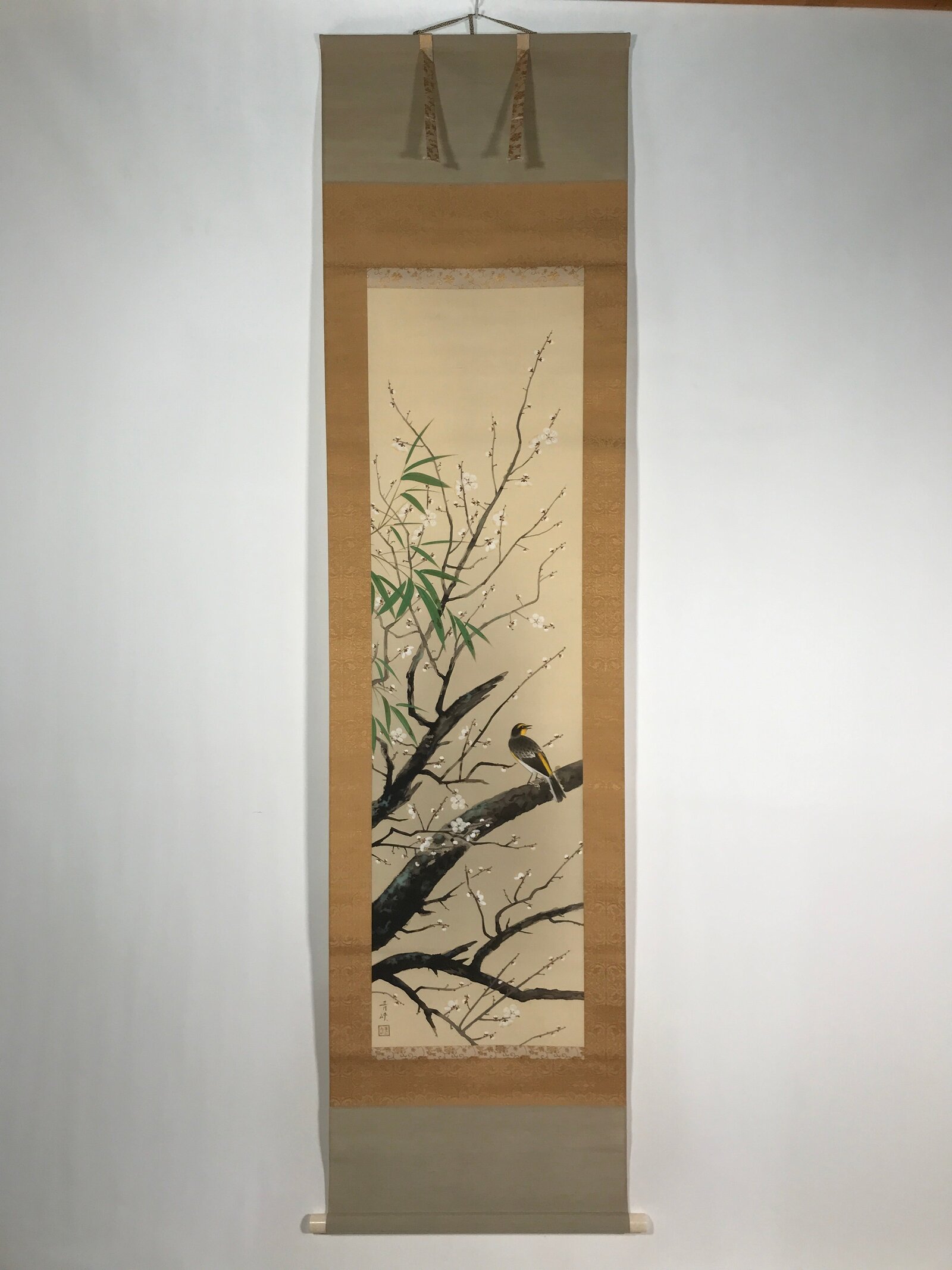 January 24, 2026Japanese Boxed Hanging Scroll Vtg Plum Tree Ume Bamboo Bird Kakejiku KJ40