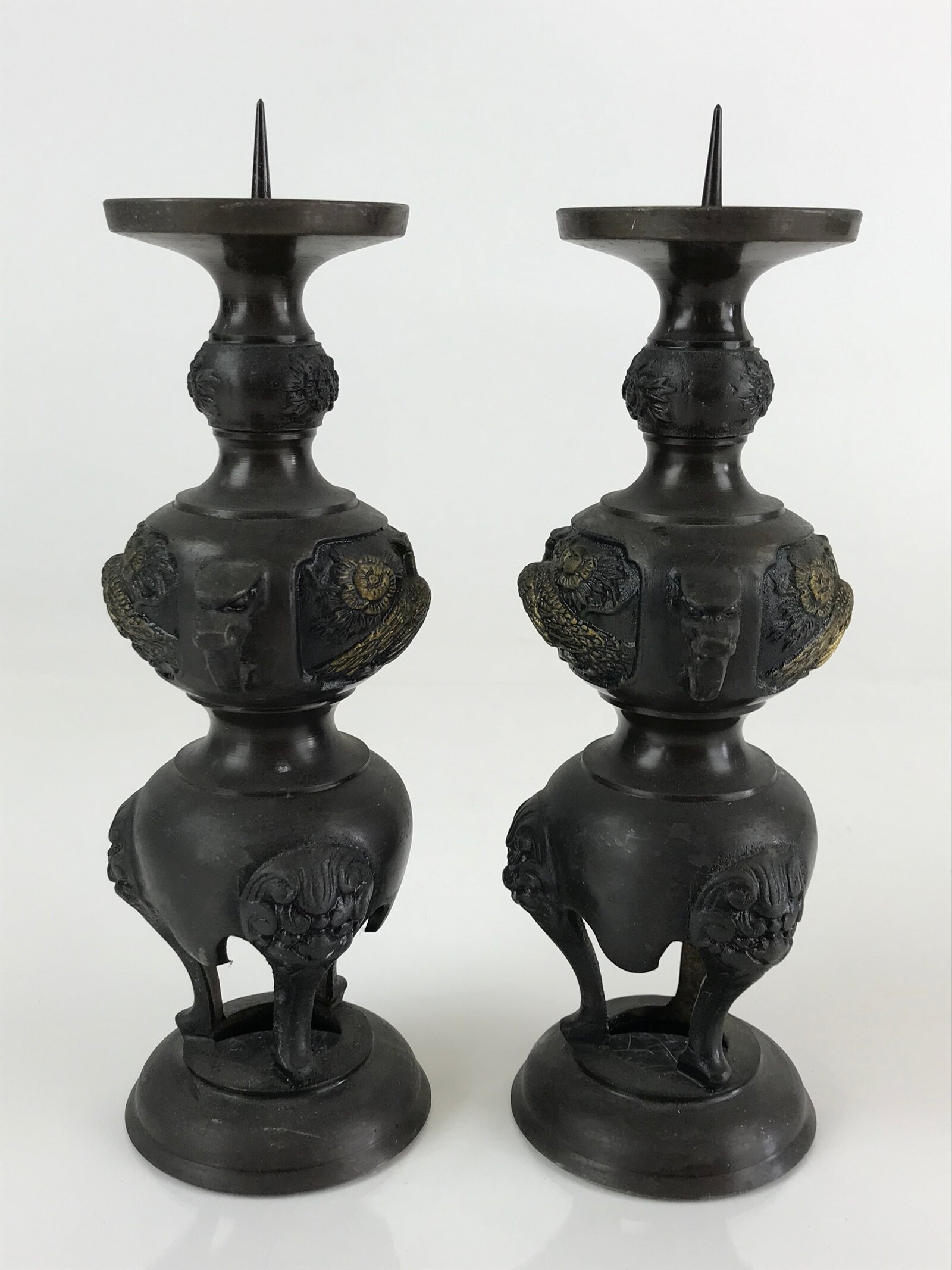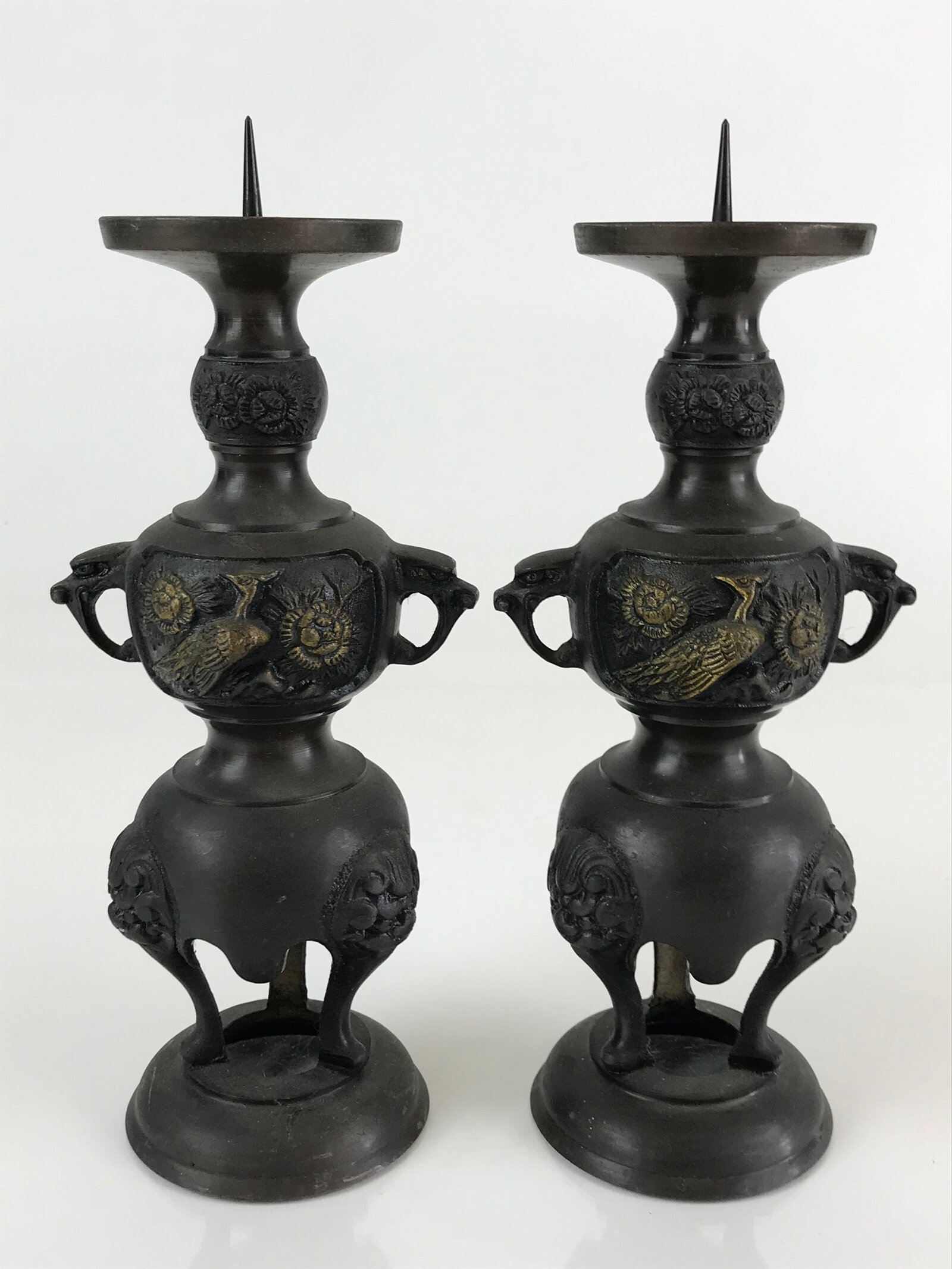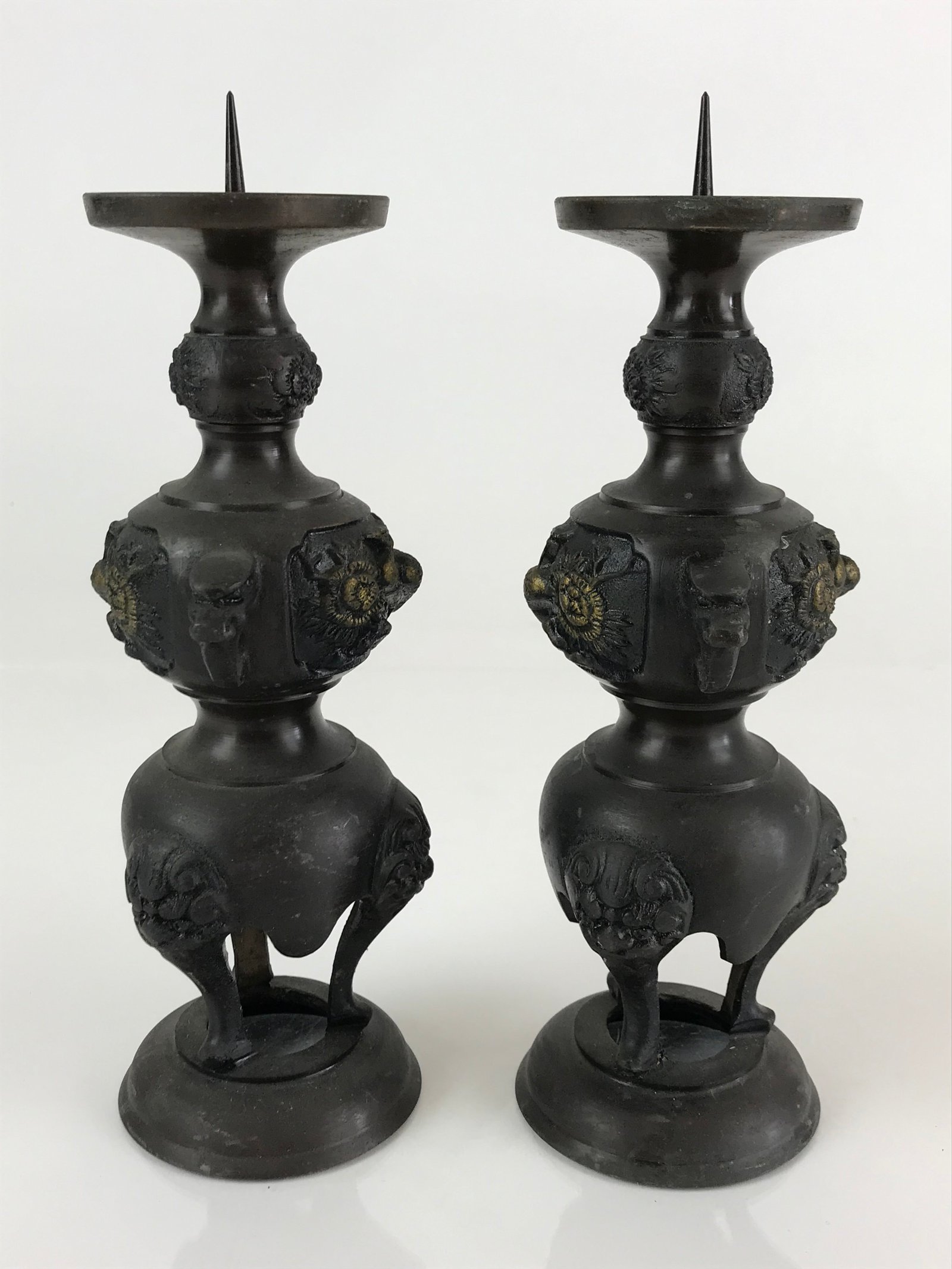 January 20, 2026Japanese Buddhist Altar Fitting Bronze Candle Stand 2pc Set Vtg Shokudai BU744