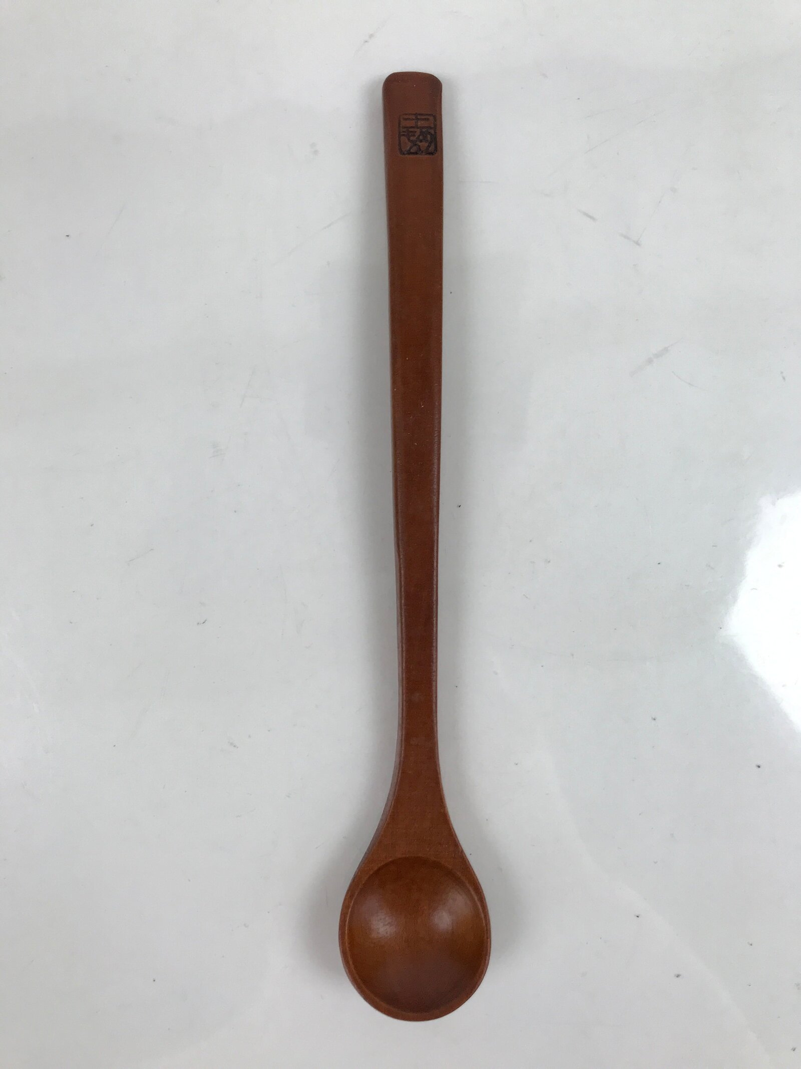 Japanese Brushed Lacquer Wood Parfait Spoon Vtg Long Handle Flatware Brown JK734