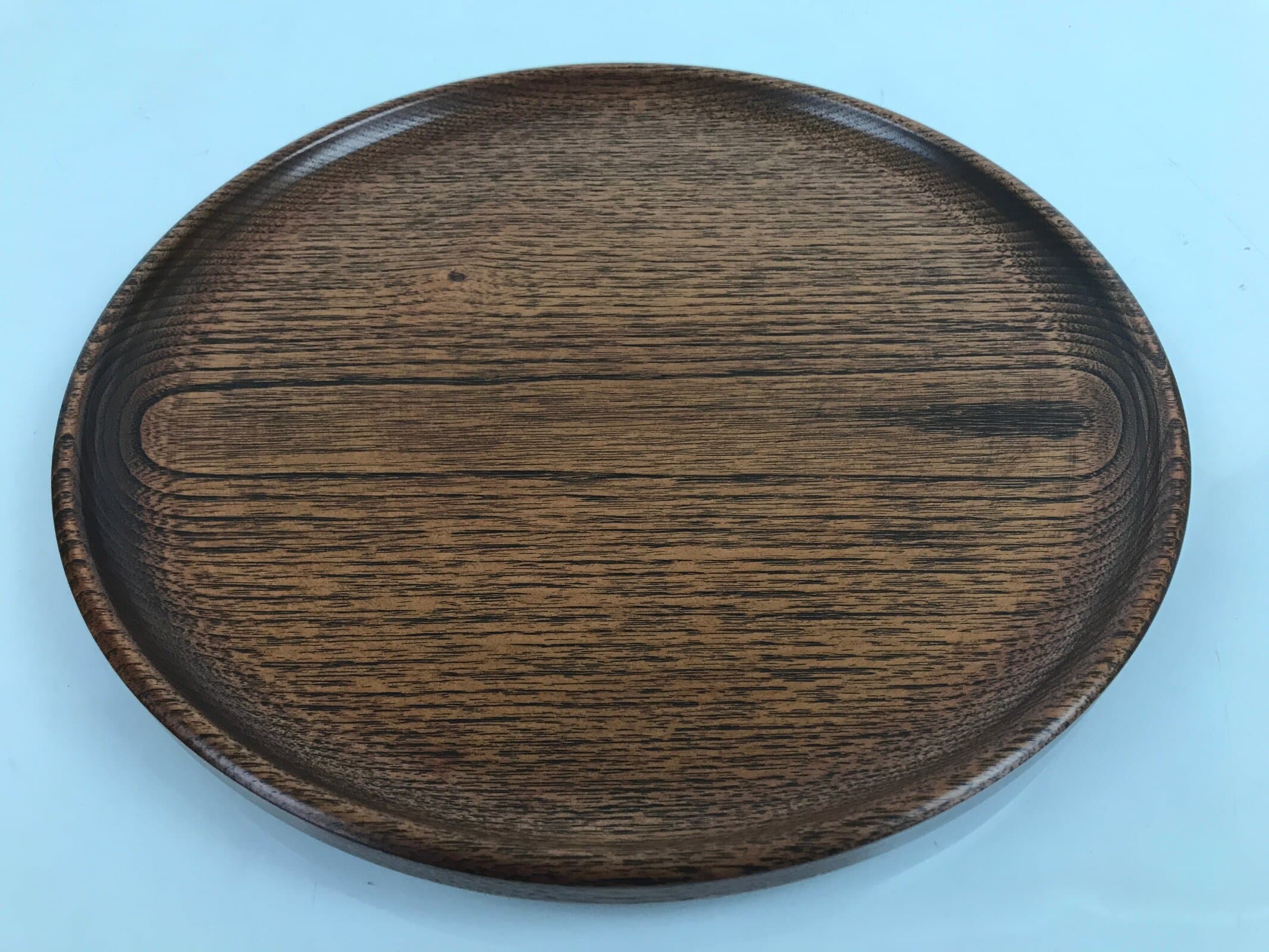January 23, 2026Japanese Brushed Lacquer Wooden Serving Tray Vtg Round Obon Brown L317