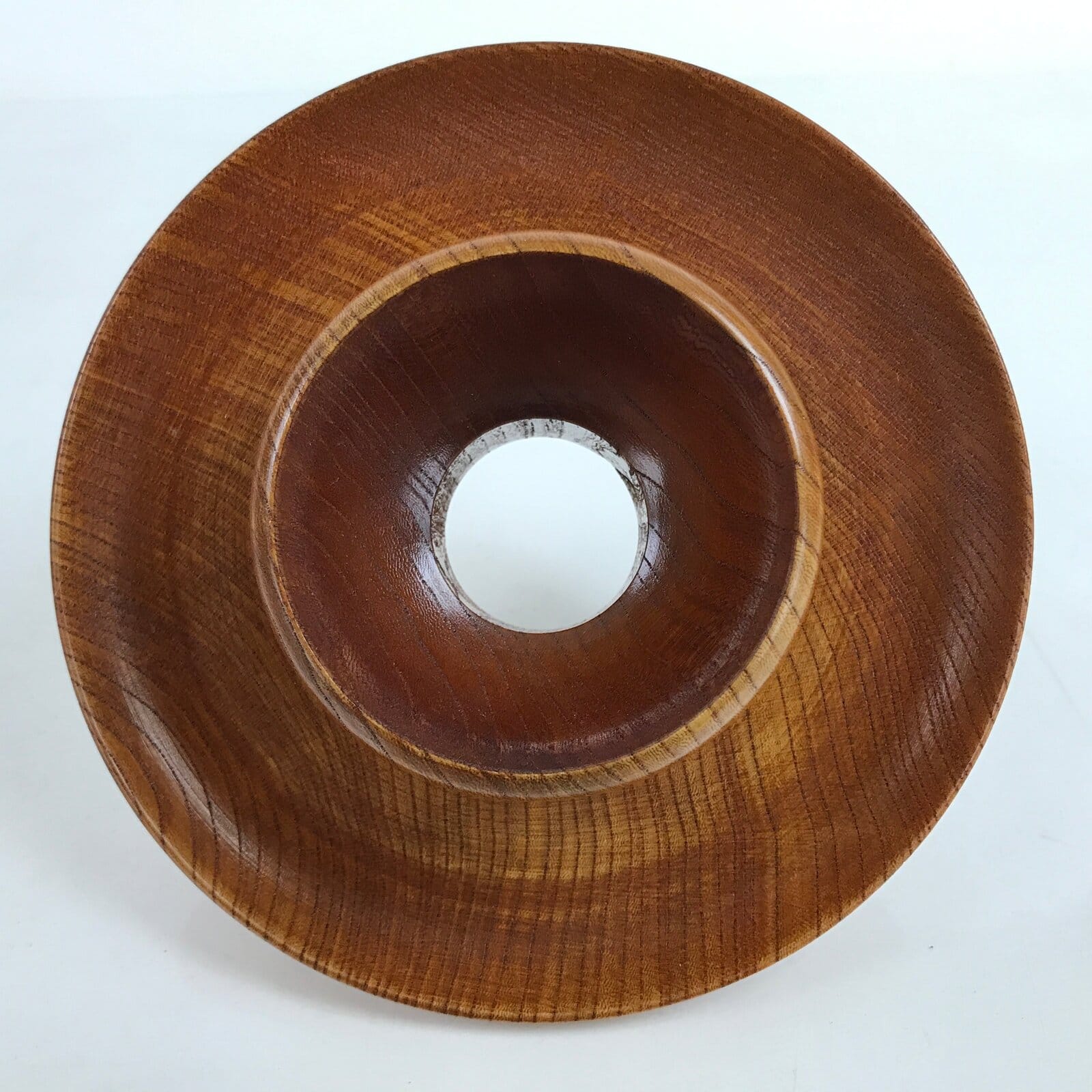 This is Japanese vintage wooden stand, or tenmokudai (kinindai or kinindate), is for holding a bowl during tea ceremony. It is brushed lacquer so the color is close to natural wood.