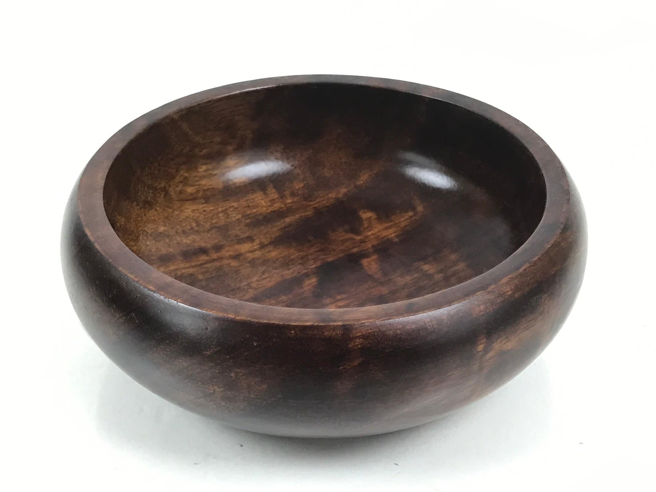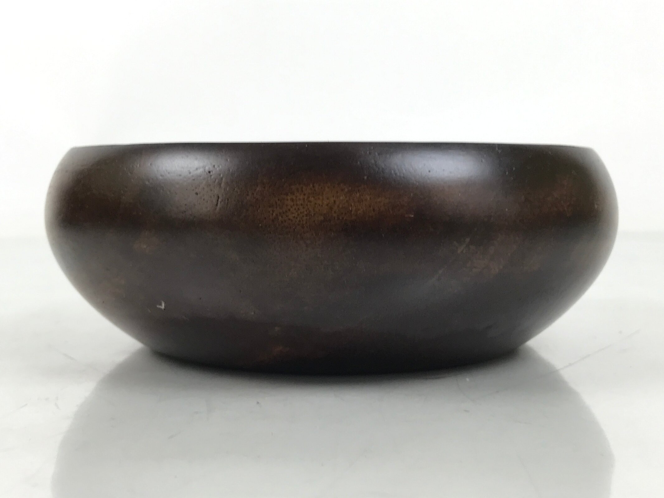 This is a Japanese vintage small bowl, or kobachi, typically used for serving cold salad, fruit, and other dishes. This round and simply designed dish is carved from wood and stained a deep brown with a clear brushed lacquer finish. It can also be used for storing small trinkets, jewelry, keys, etc.