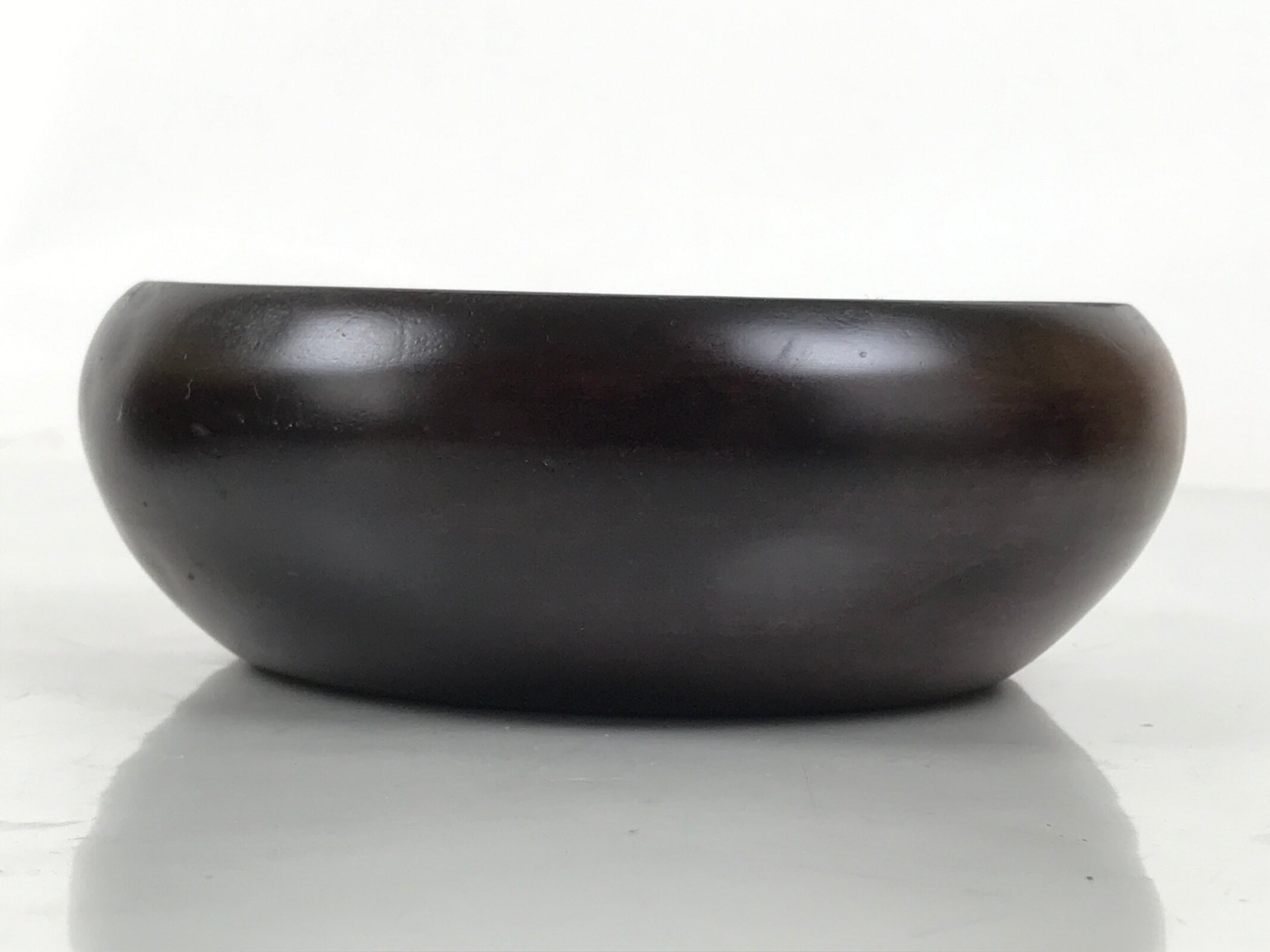 This is a Japanese vintage small bowl, or kobachi, typically used for serving cold salad, fruit, and other dishes. This round and simply designed dish is carved from wood and stained a deep brown with a clear brushed lacquer finish. It can also be used for storing small trinkets, jewelry, keys, etc.