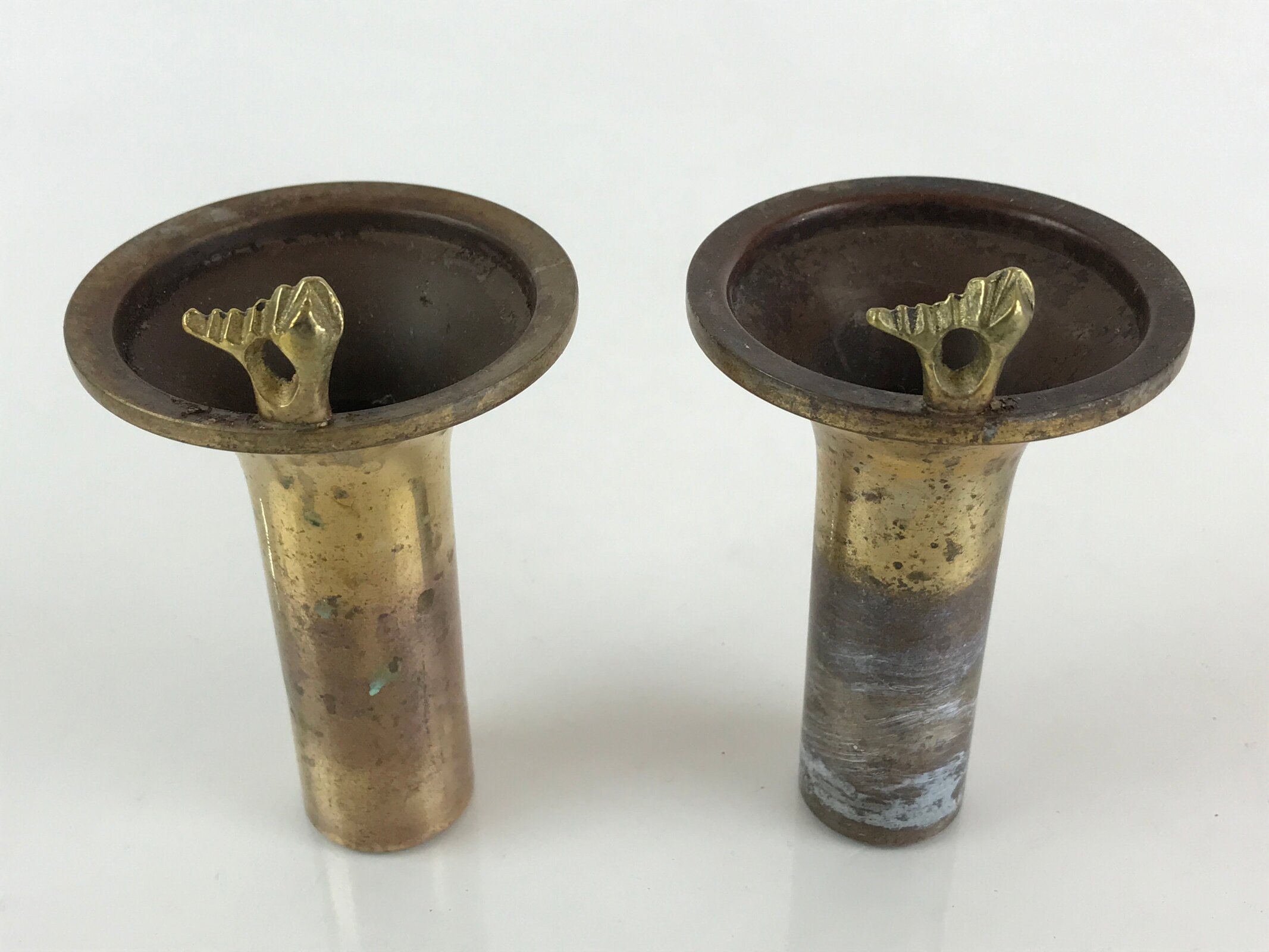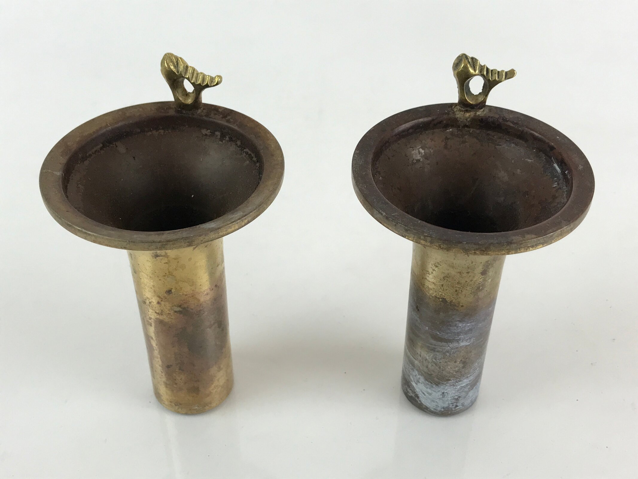 Japanese Buddhist Altar Fitting Candle Stand Vtg Brass Shokudai Butsudan BU829