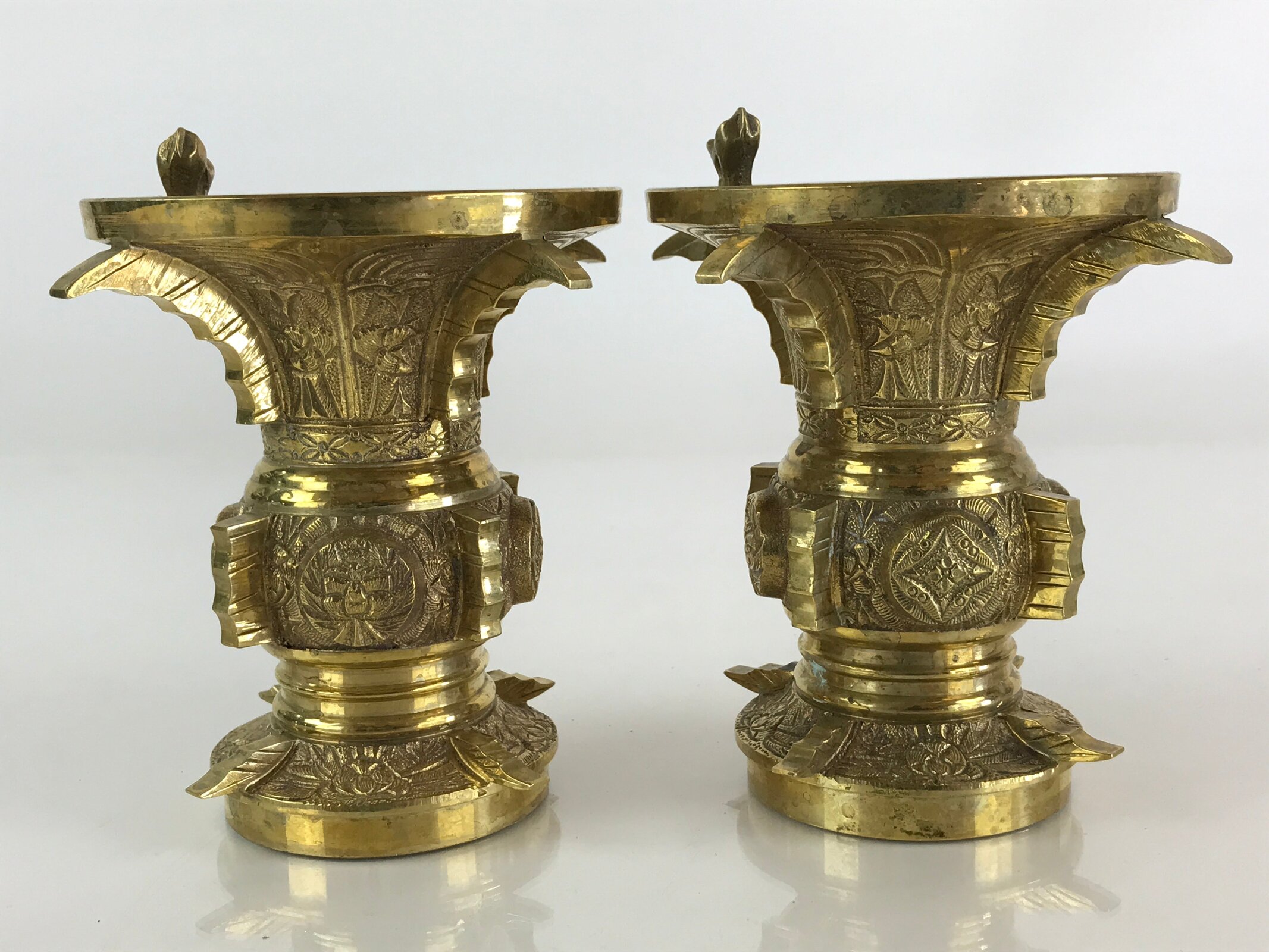 January 20, 2026Japanese Buddhist Altar Fitting 2pc Flower Vase Stand Brass Gold Hanatate BU828
