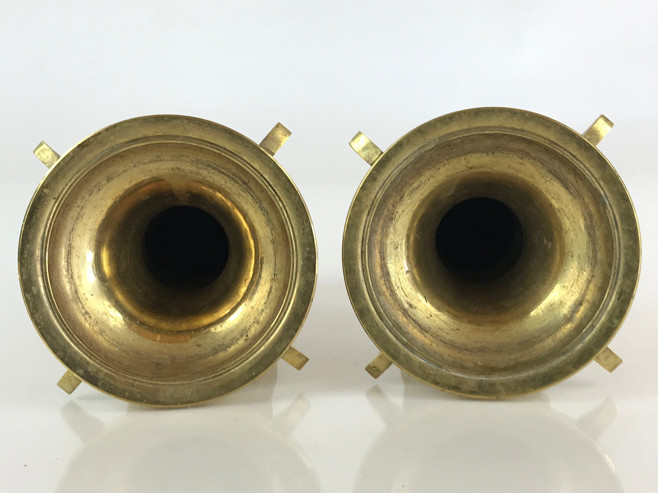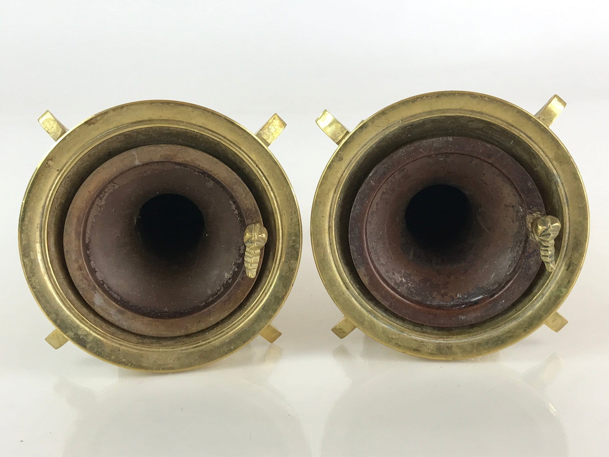 Antique Japanese Buddhist Altar Fitting Candle Stand Brass Shokudai Butsudan BU8