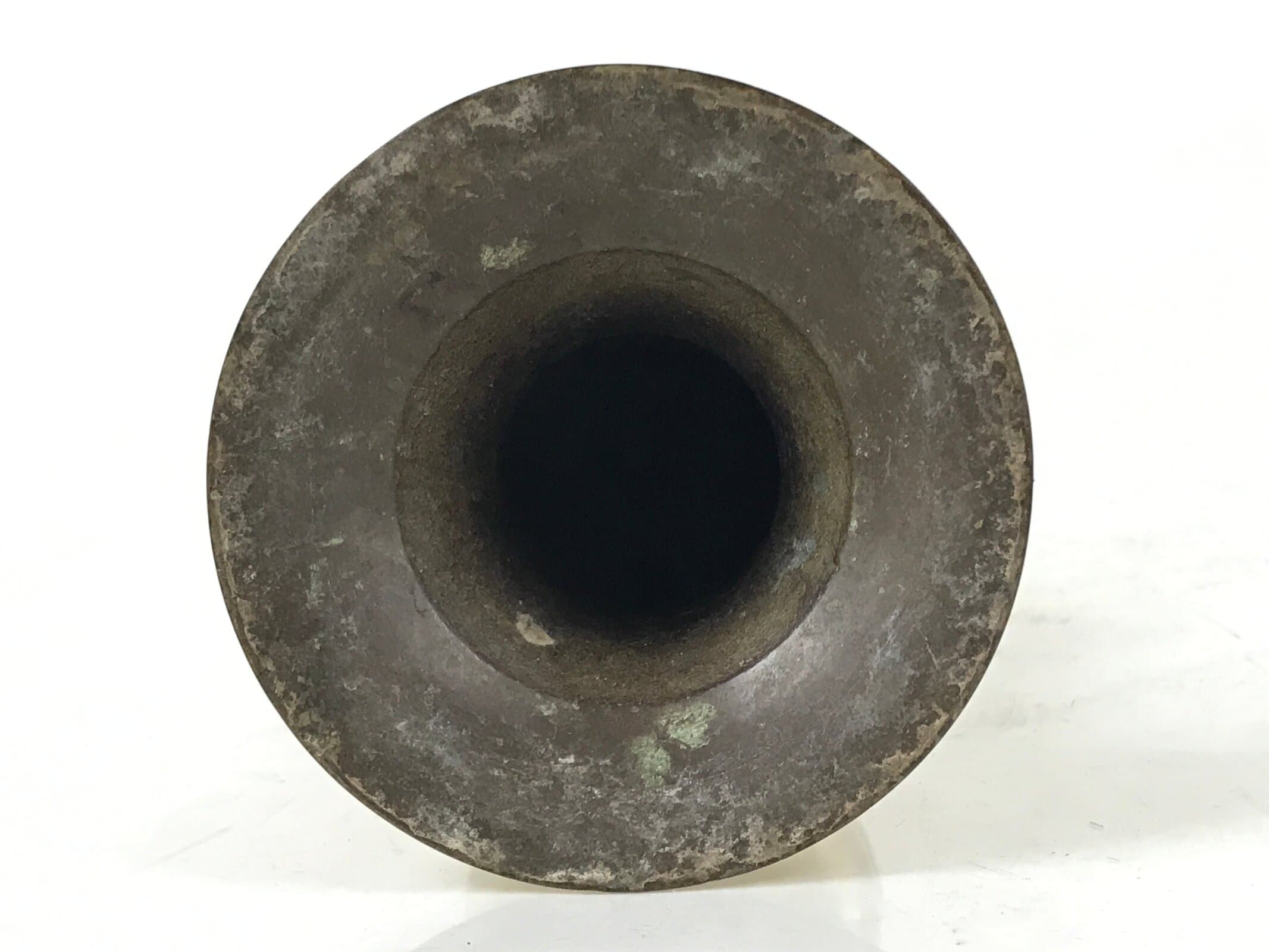 This is a classic style brass flower vase, or hanatate, for Buddhist altars. It is a vessel for Sakaki leaves or Shashagi leaves. The meaning of offering sakaki tree leaves is that we believe the gods living sakaki tree will protect the grave and the soul. It is also common to offer a range of seasonal and symbolic flowers in front of the altar.