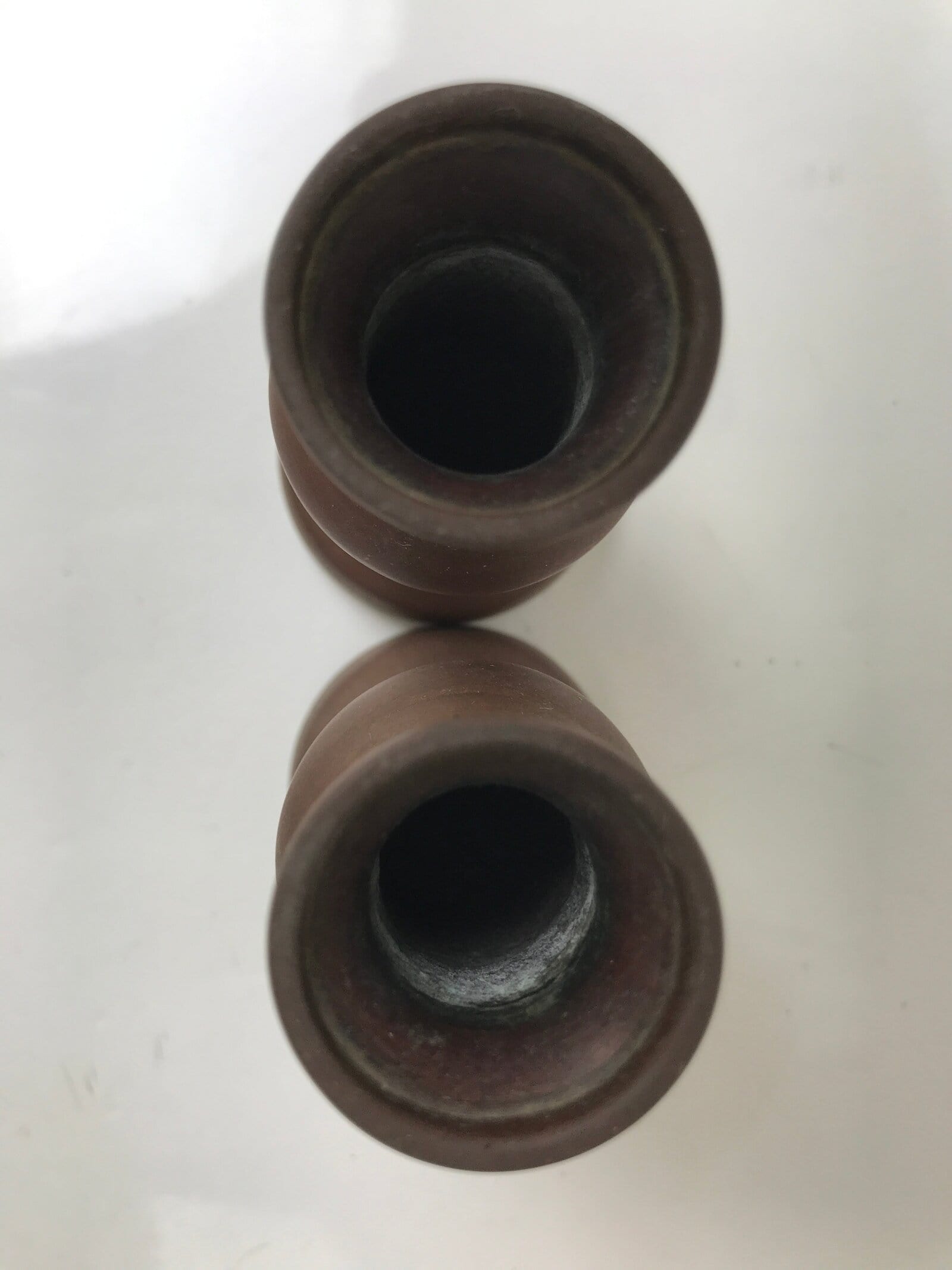 January 24, 2026Japanese Buddhist Altar Fitting Metal Flower Vase 2pc Vtg Hanatate Brown BA580