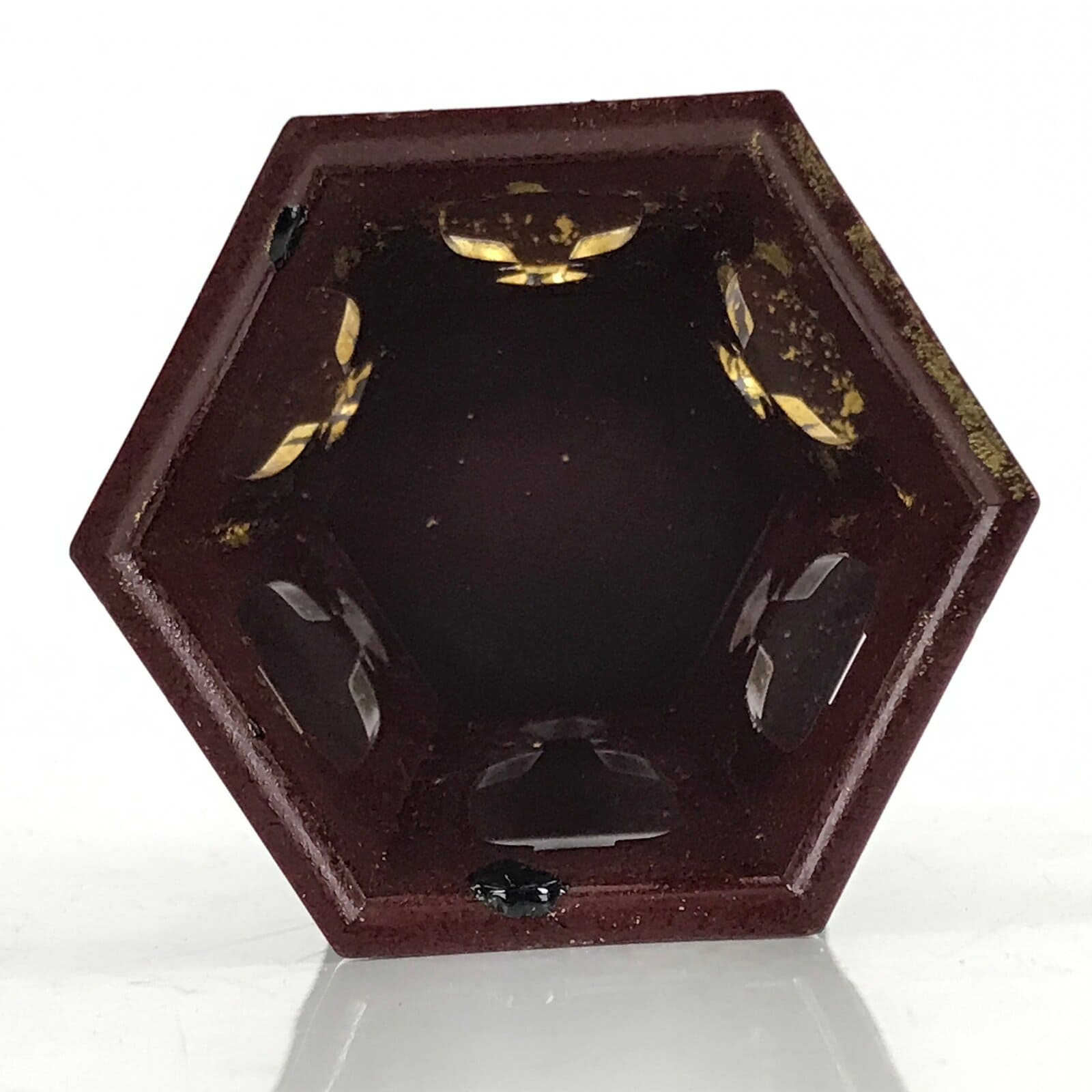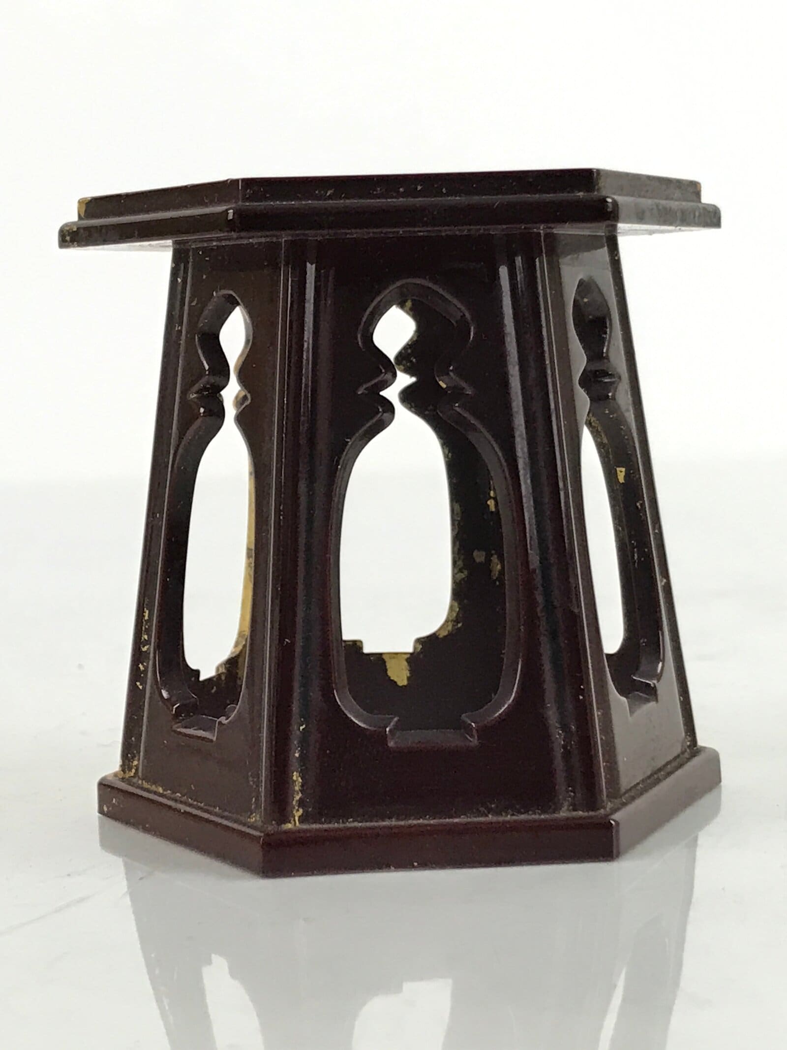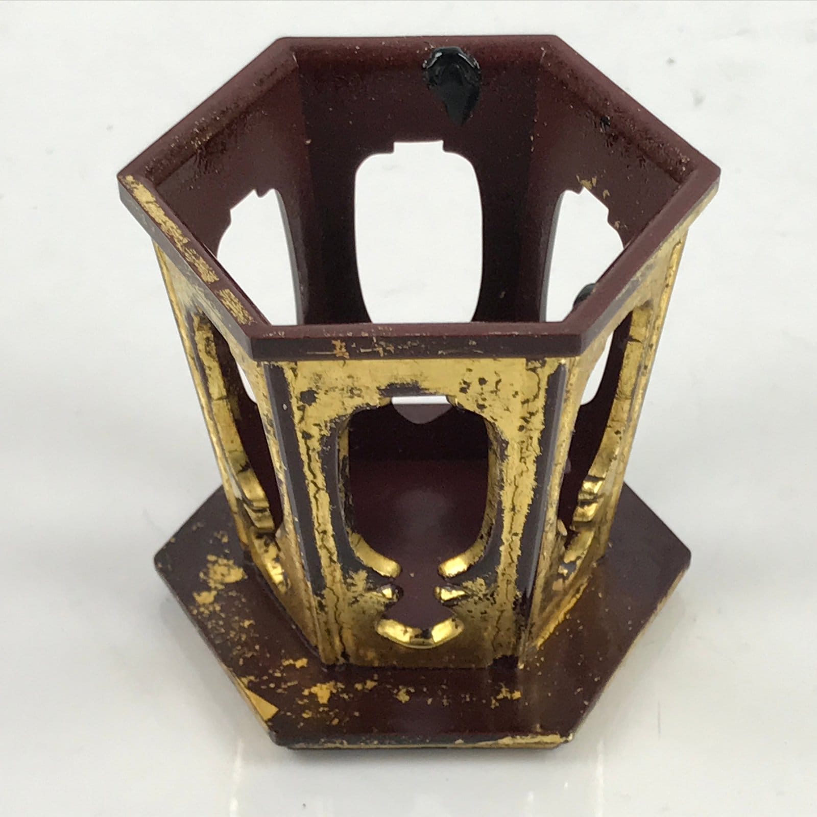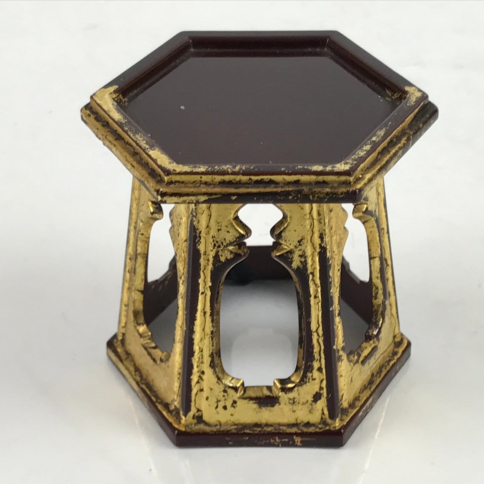 This is Japanese offering cup stand for a Buddhist altar. Also called bukki, this important altar accessory is coated with gold and dark brown lacquer and has a simple hexagonal shape. It is used often in pairs to hold small cups of rice, sake, and more as an offering to Buddha and one’s ancestors.