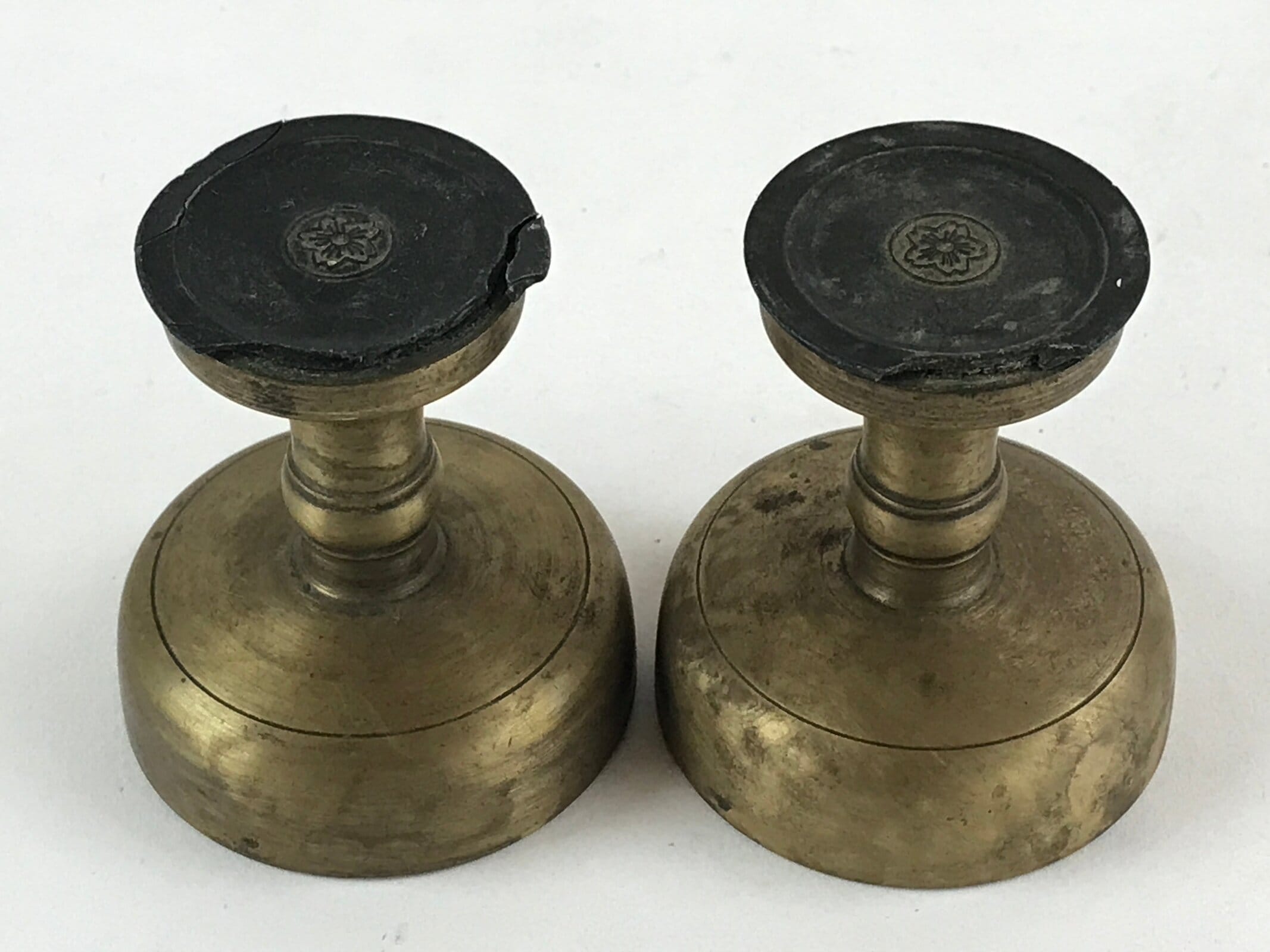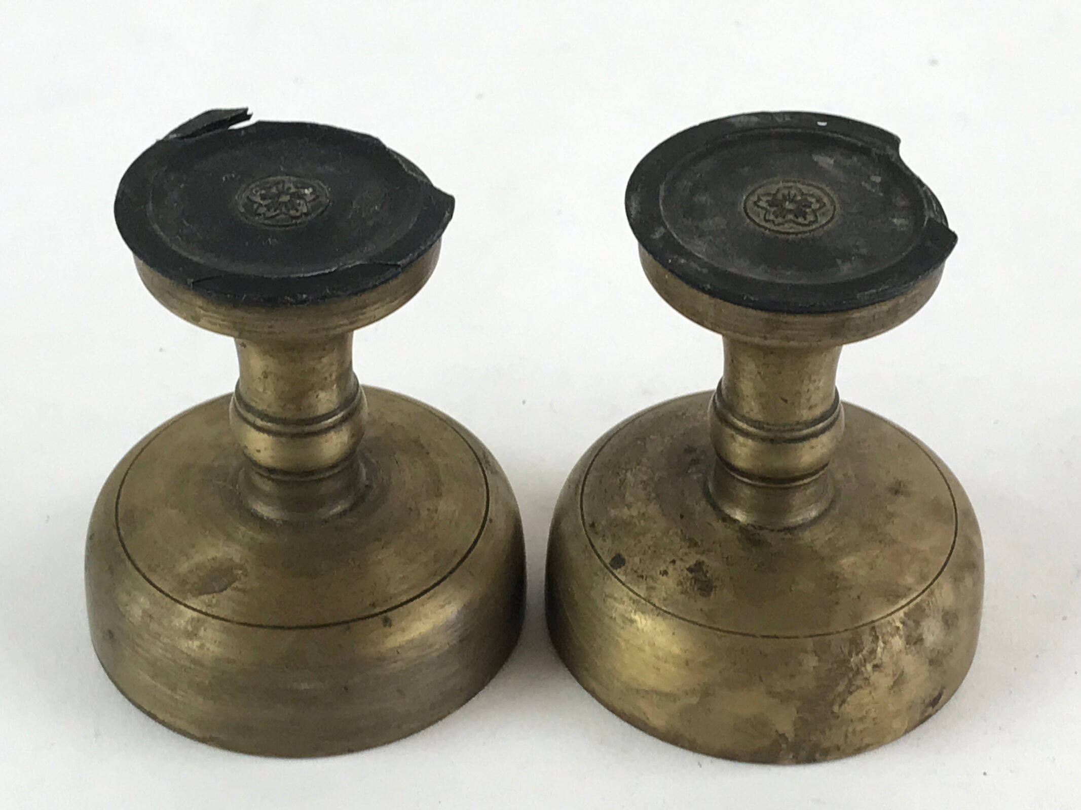 Japanese Buddhist Altar Fitting Brass Rice Offering Cup Vtg 2pc Pair Gold BA57