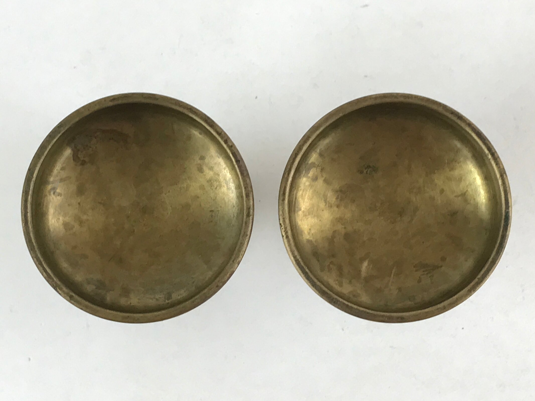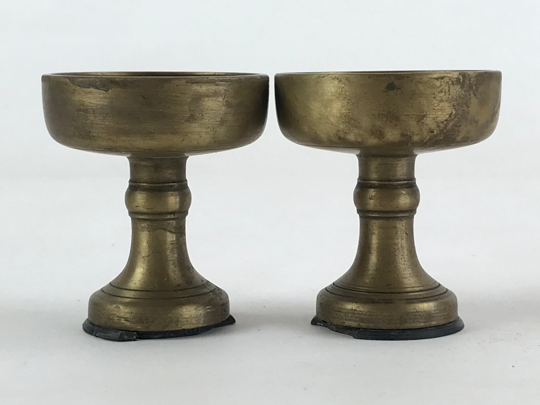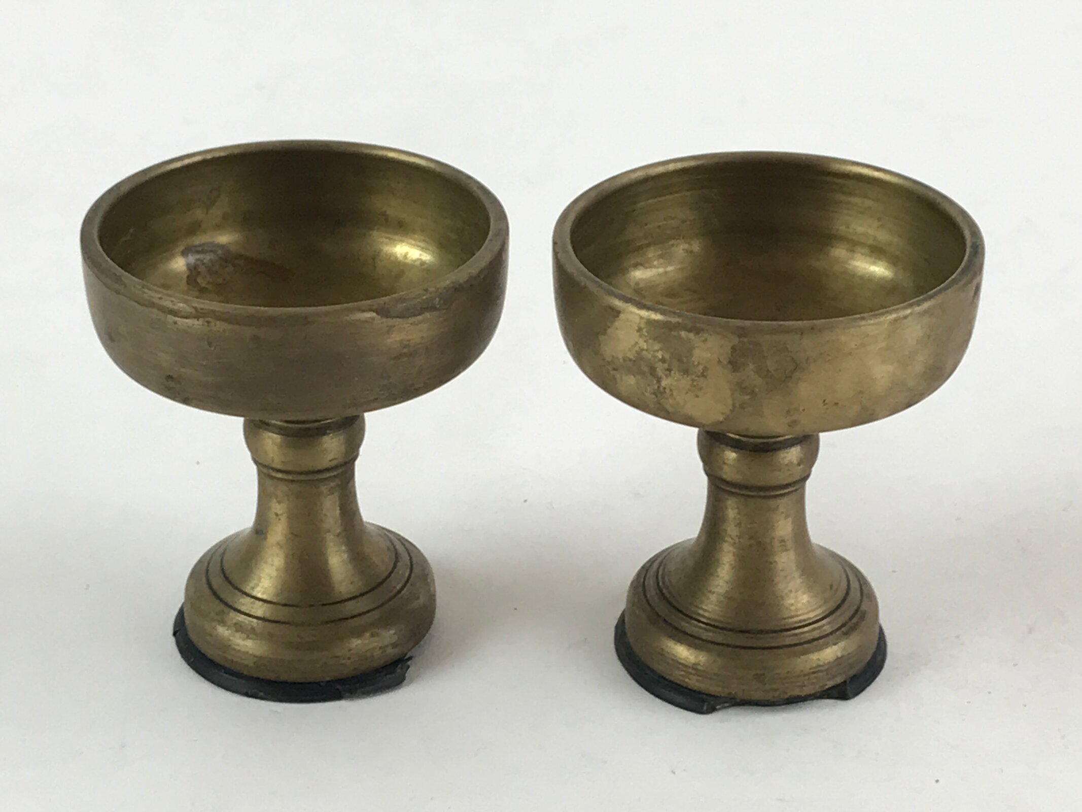 Japanese Buddhist Altar Fitting Brass Rice Offering Cup Vtg 2pc Pair Gold BA59