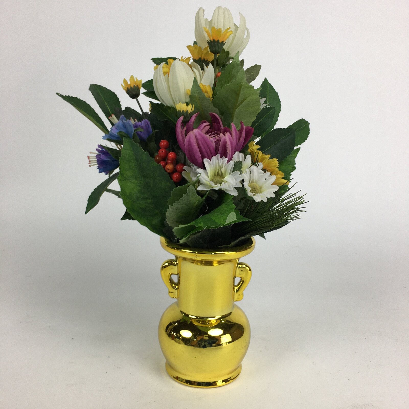 January 18, 2026Japanese Buddhist Altar Fitting Vtg Flower Stand Vase and Artificial Flowers Set
