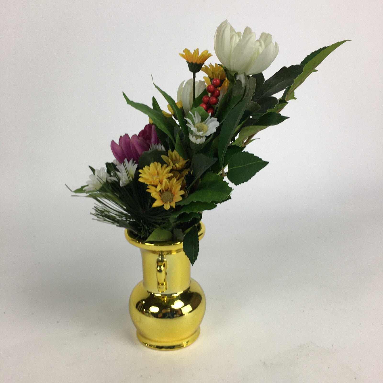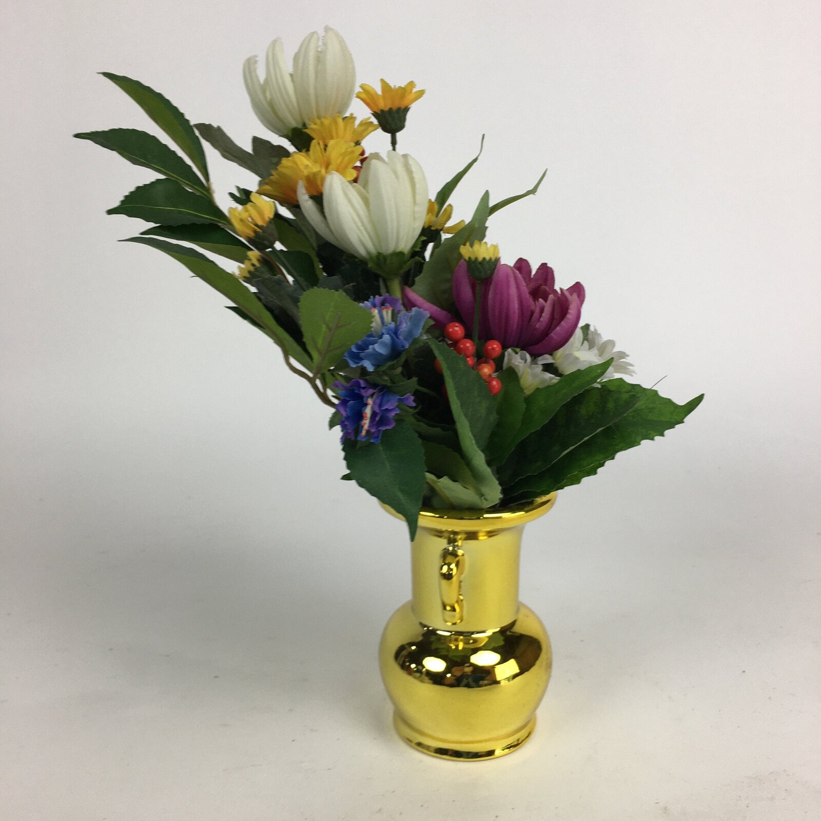 Japanese Buddhist Altar Fitting Vtg Flower Stand Vase and Artificial Flowers Set