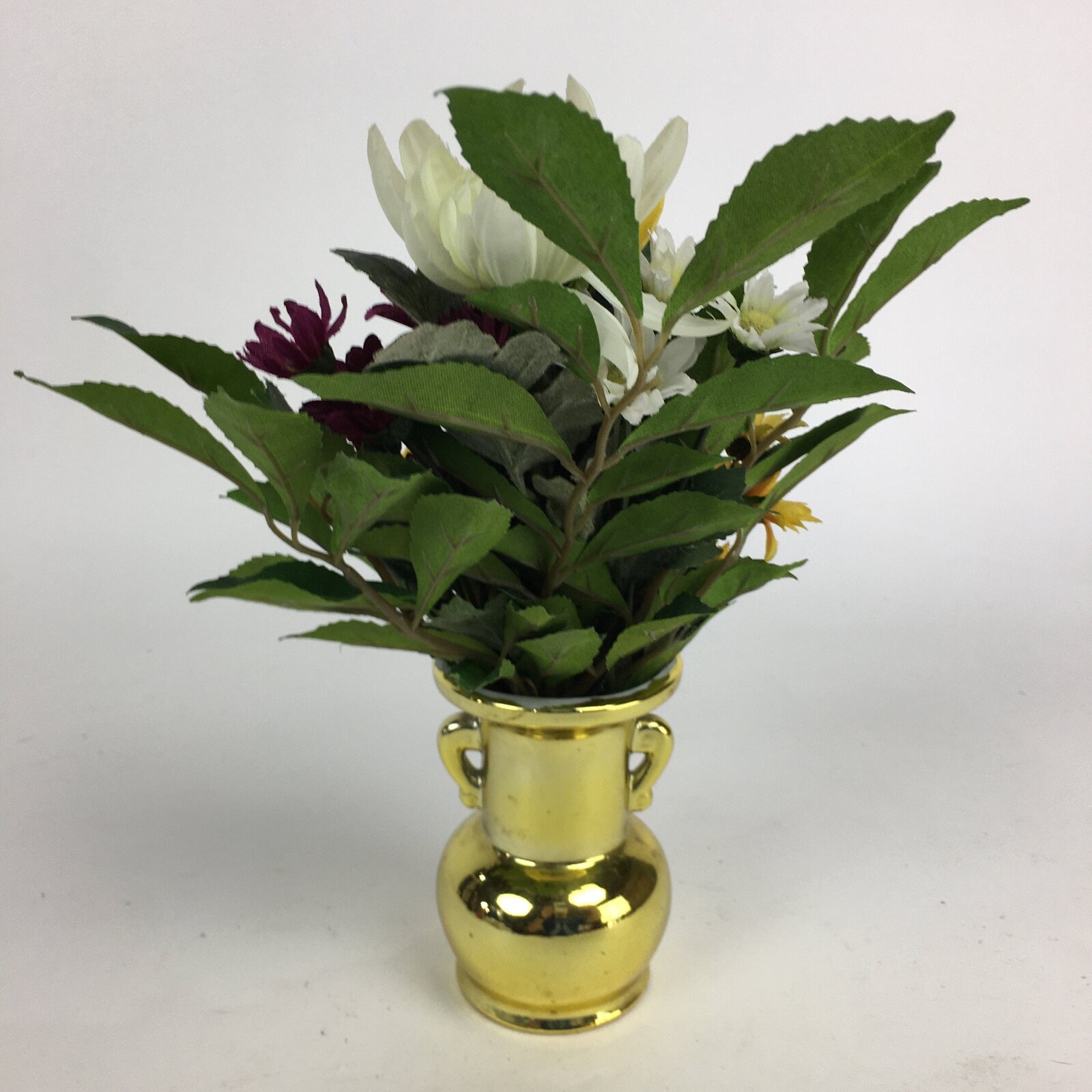 Japanese Buddhist Altar Fitting Vtg Flower Stand Vase and Artificial Flowers Set