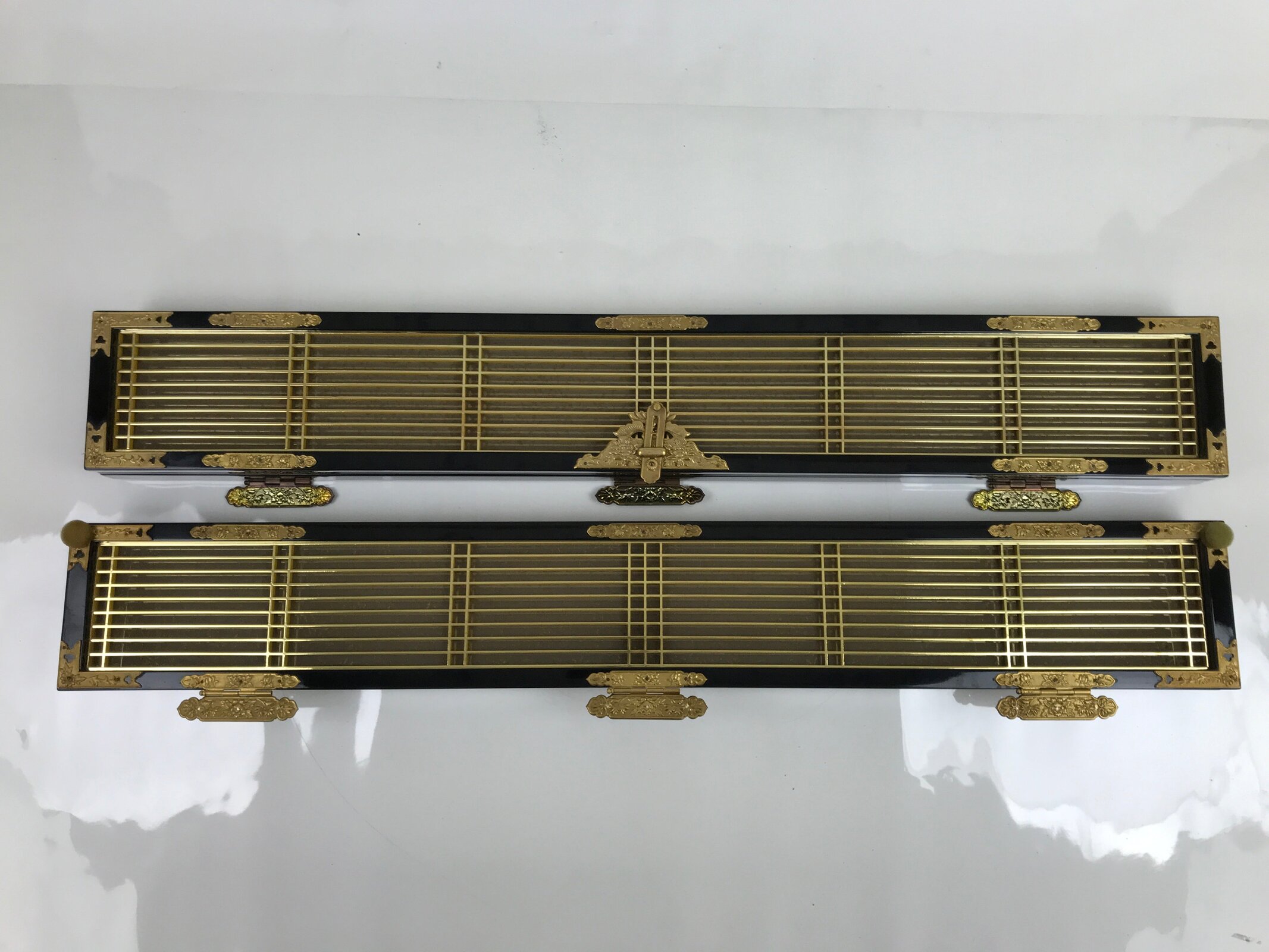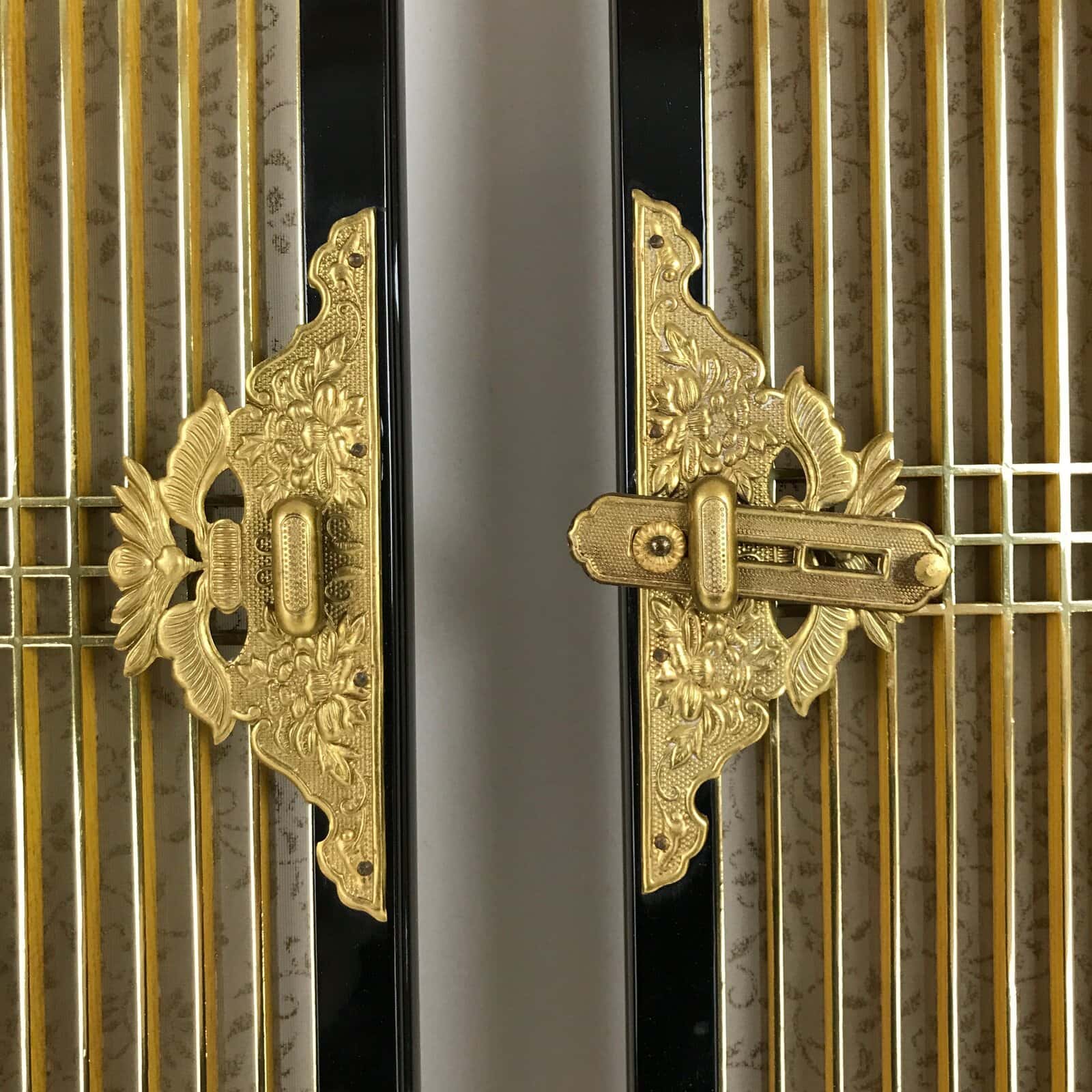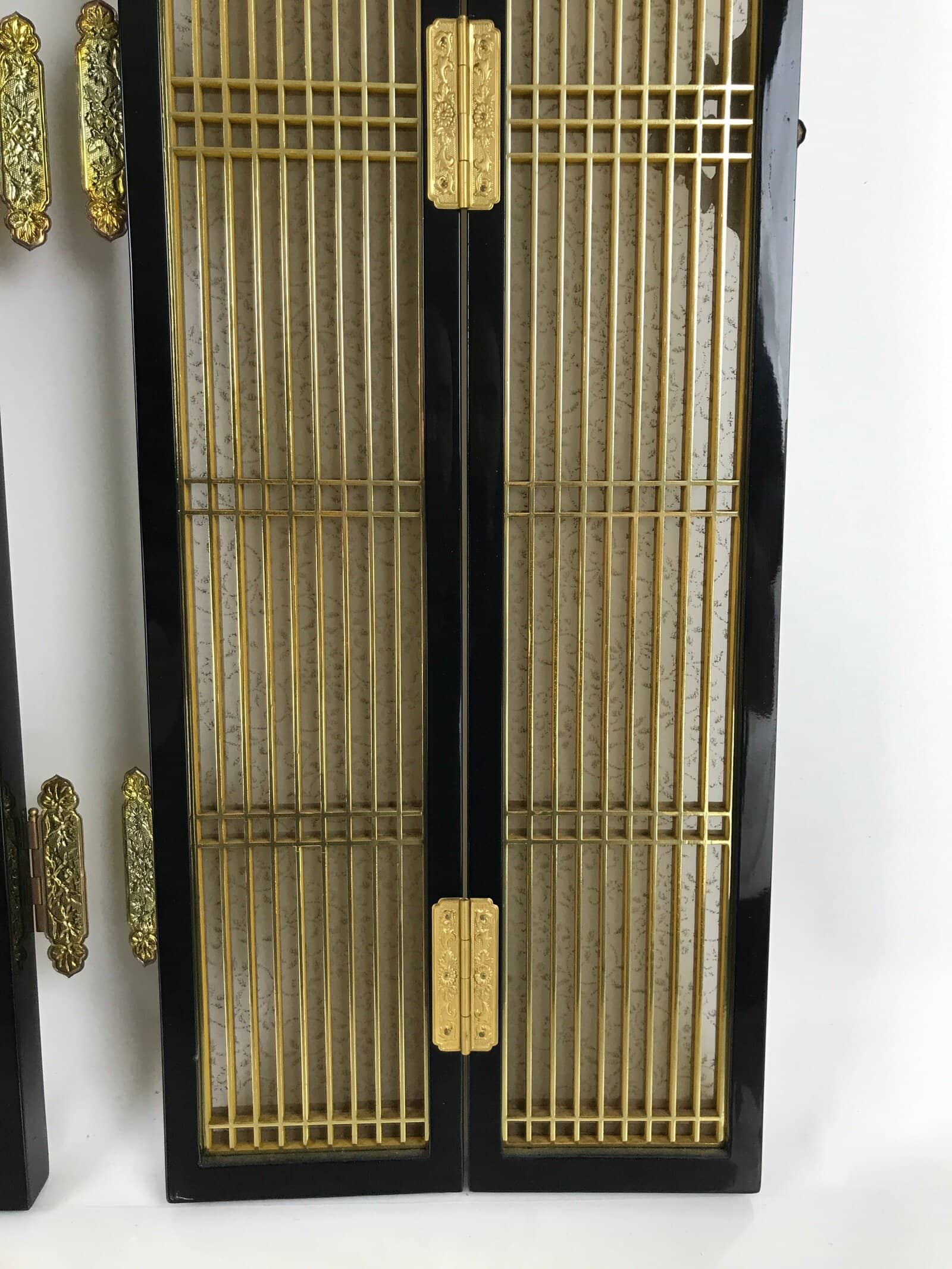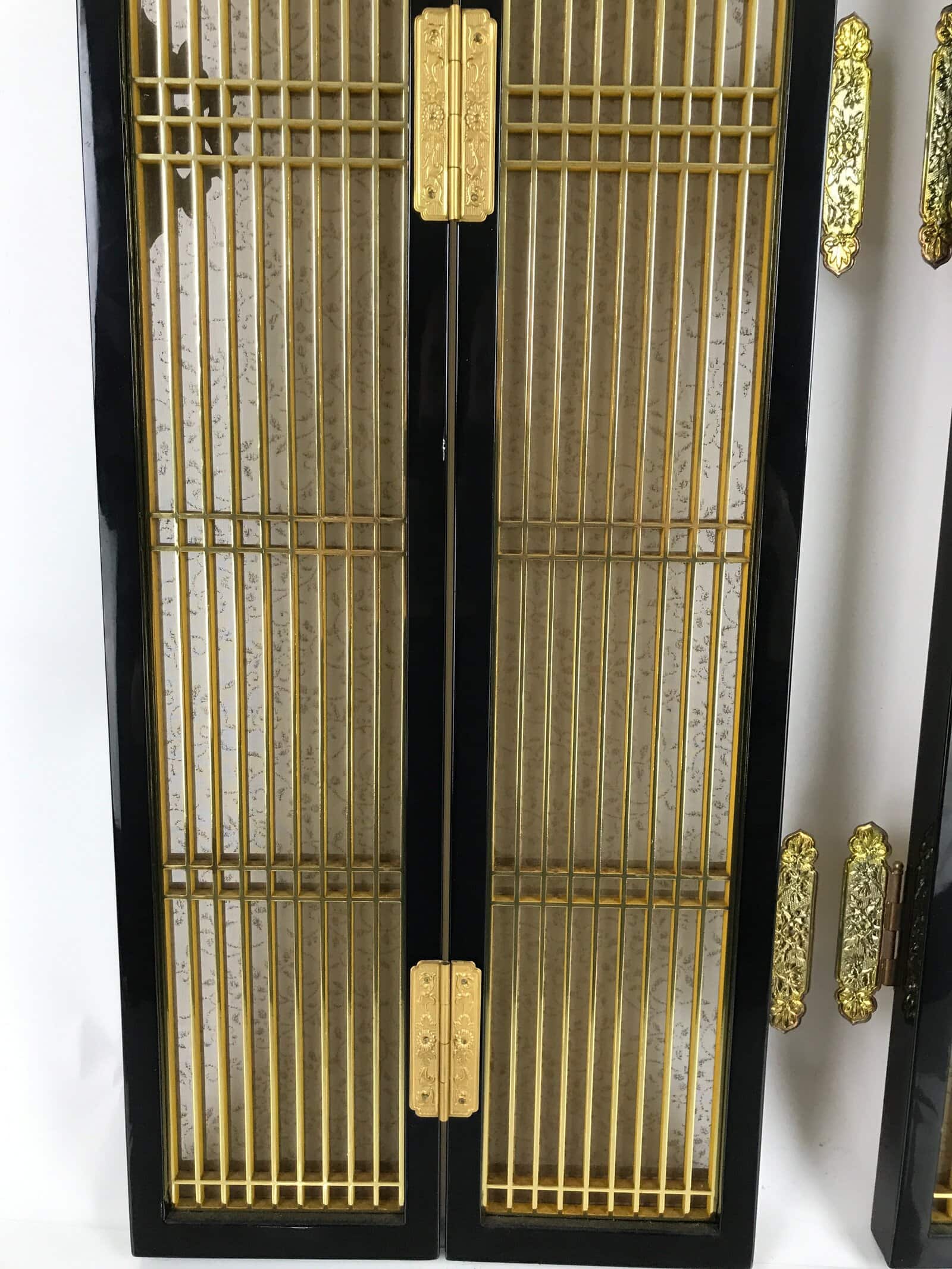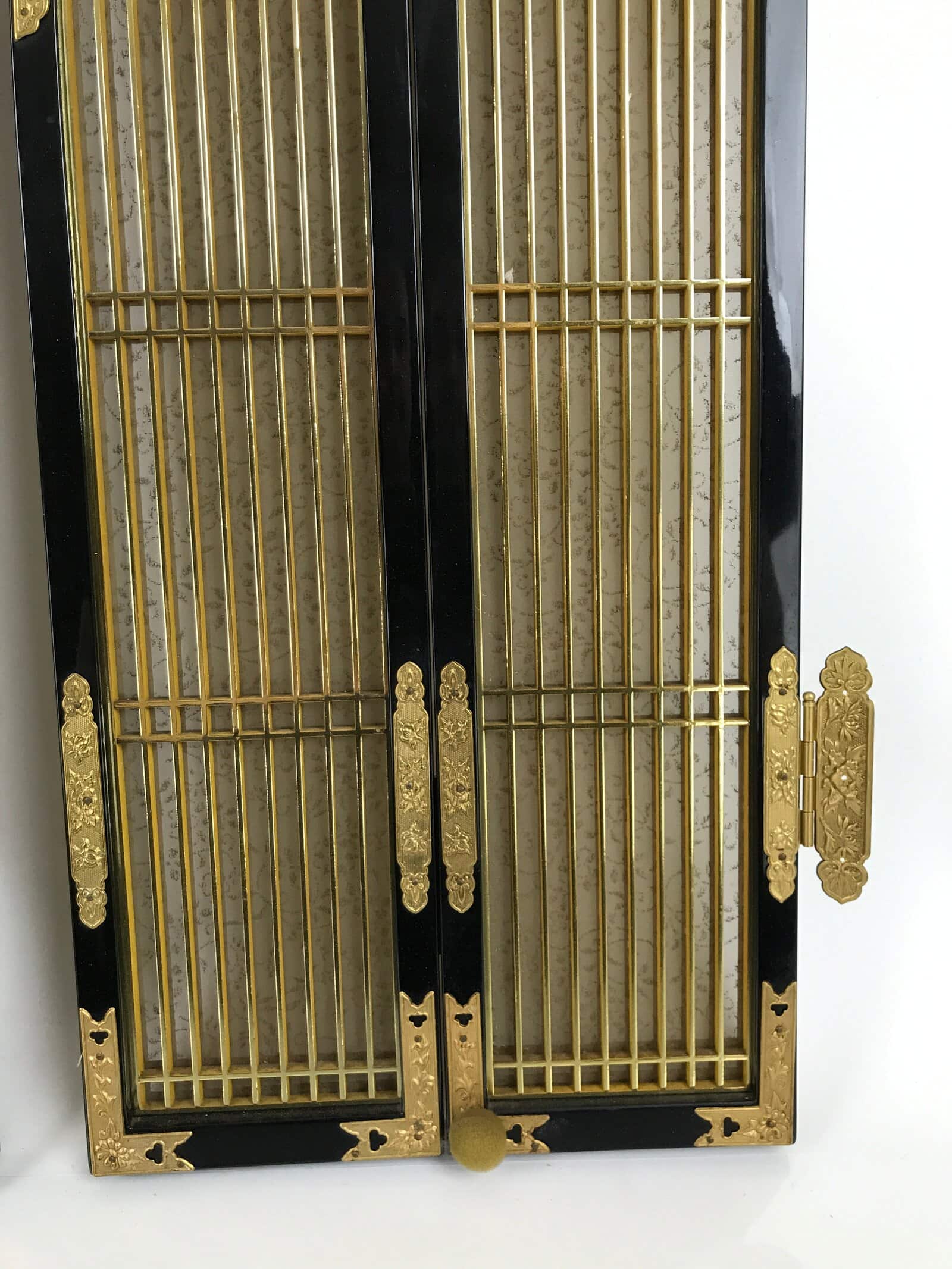 January 23, 2026Japanese Buddhist Altar Part Inner Door Lacquer Panel Vtg Brass Black Gold BA437