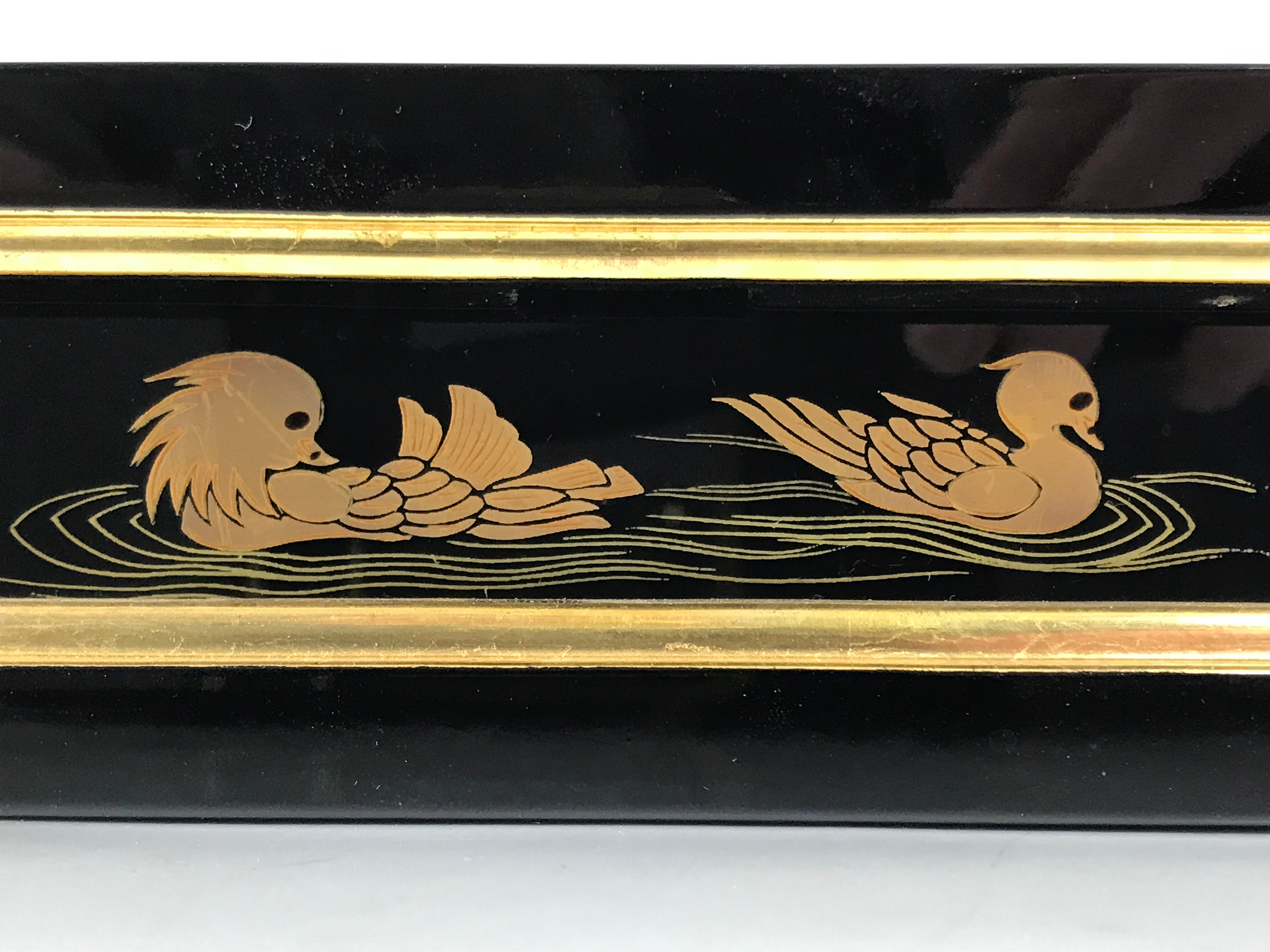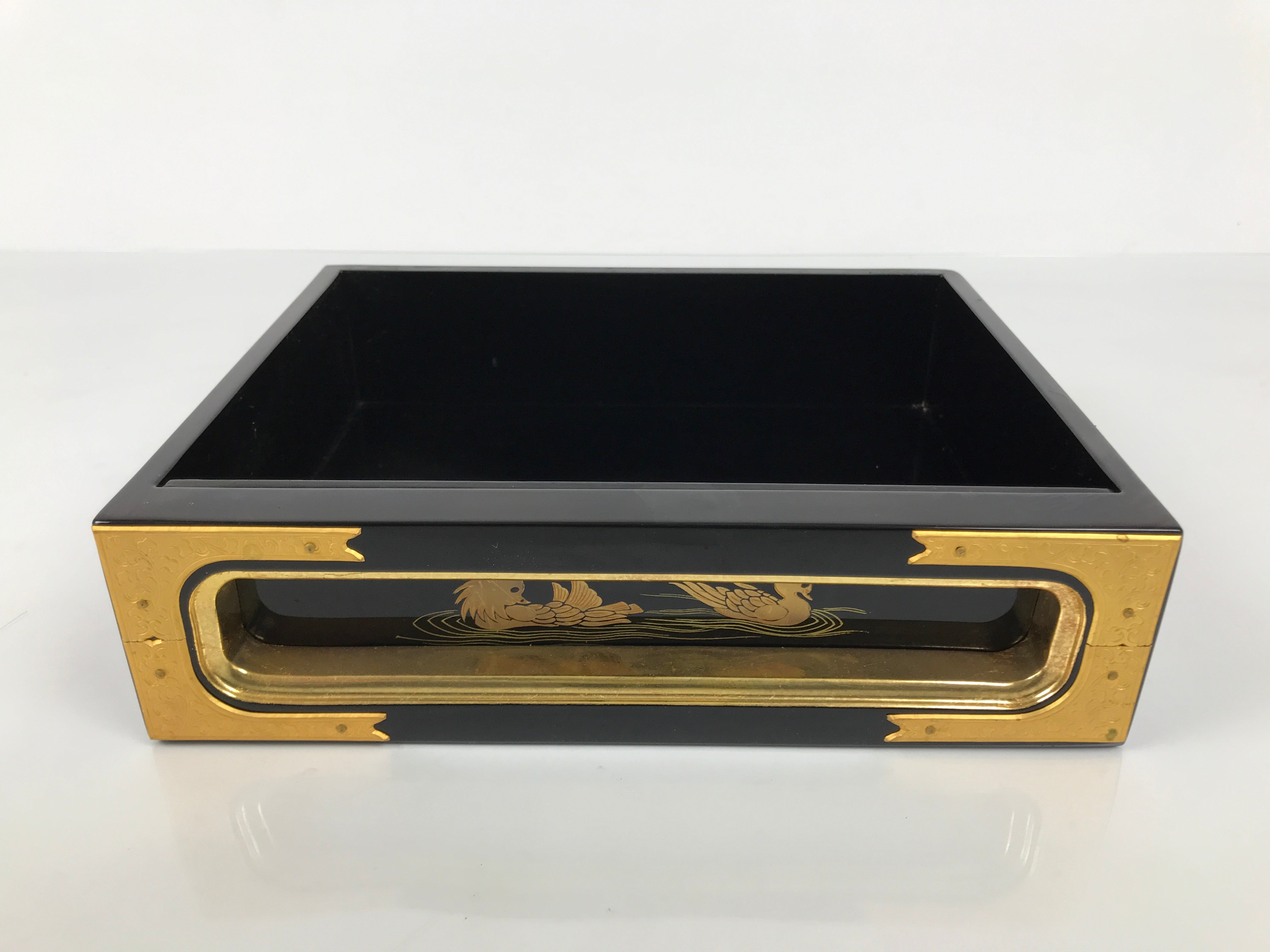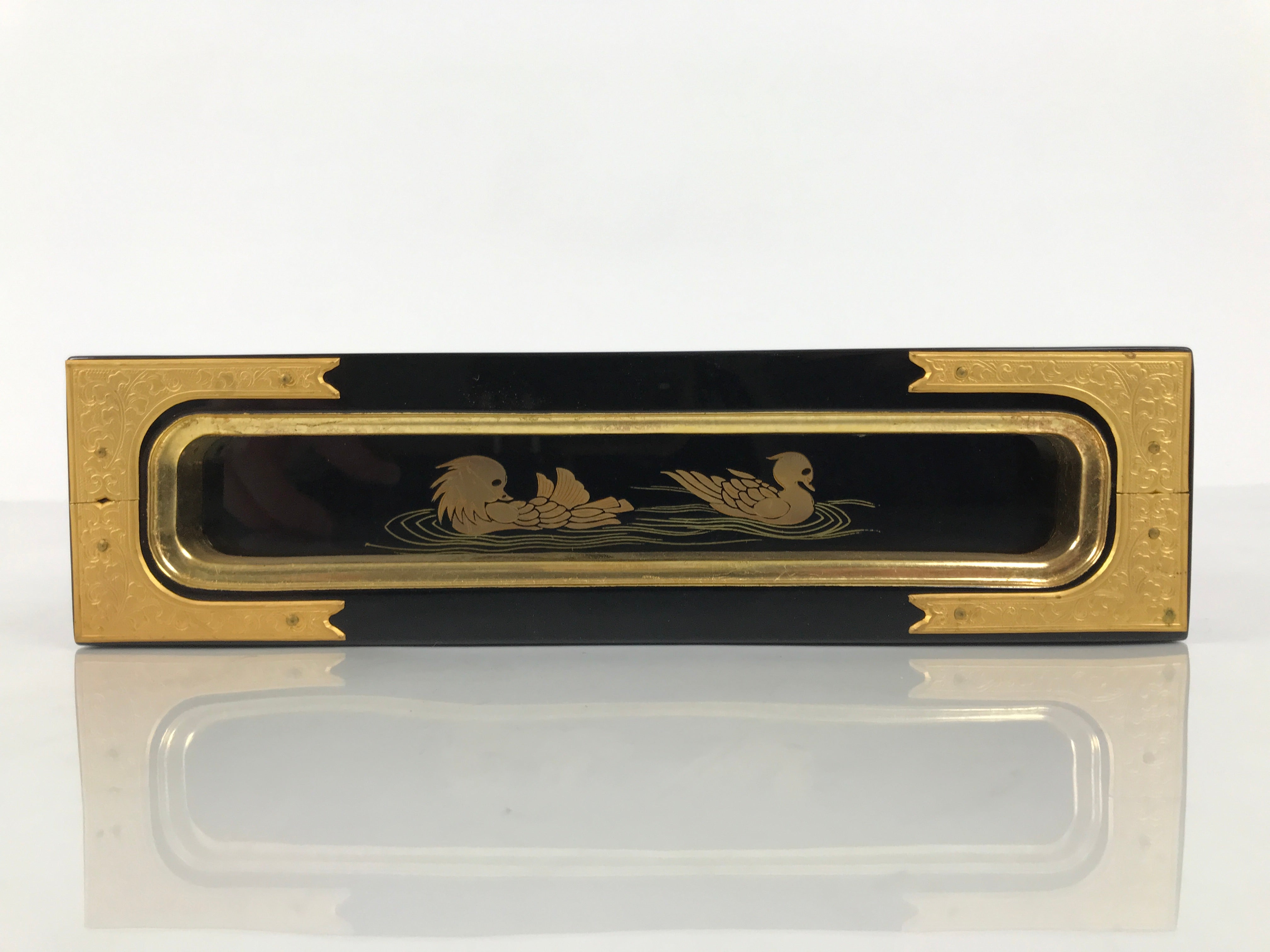 April 9, 2026Japanese Buddhist Altar Lacquered Drawer Vtg Brass Black Gold Ducks Makie BP28