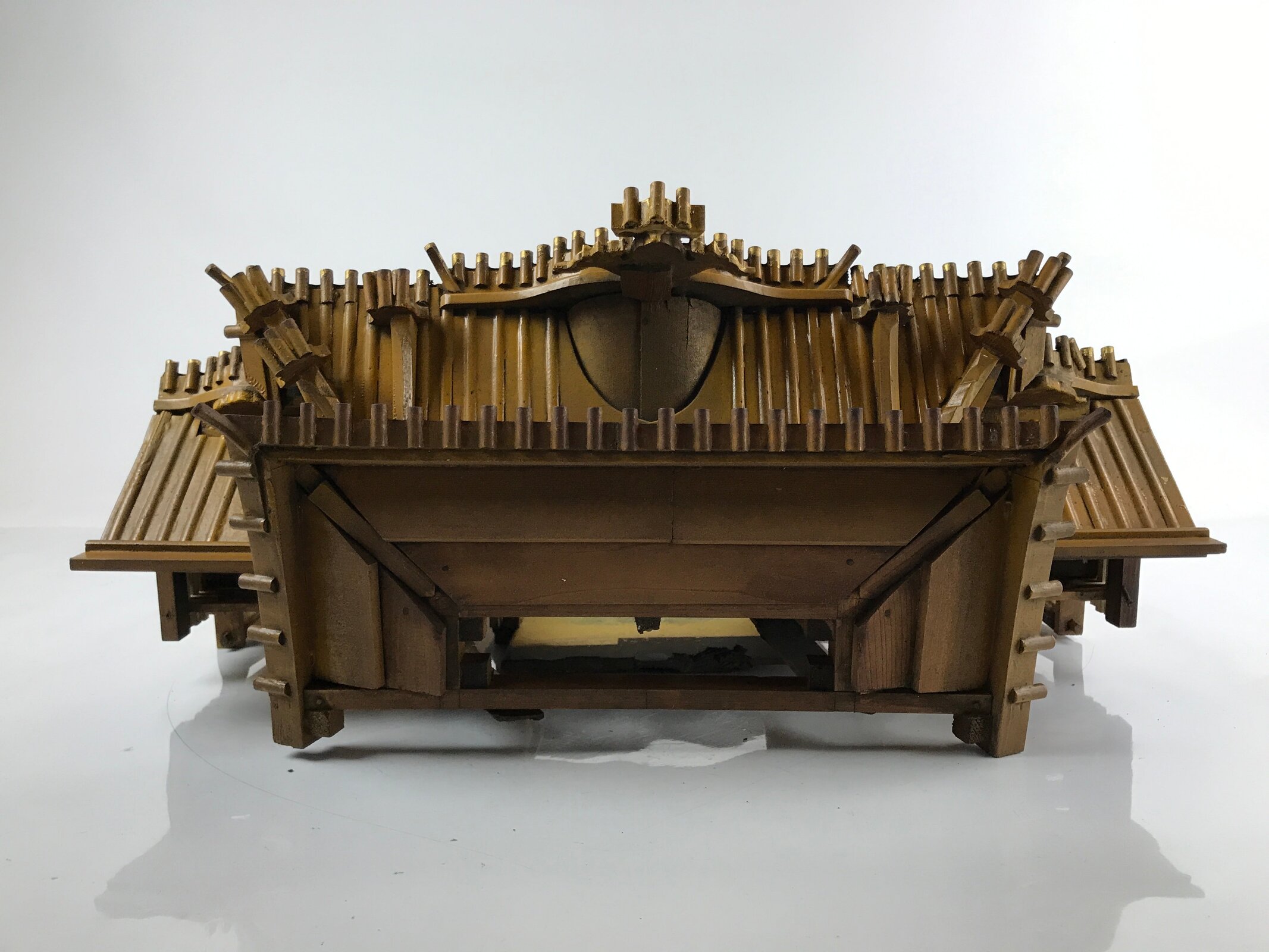 - Good condition considering its age. Scratches and discoloration on lacquer pieces. Some carved extensions on roof piece are broken/missing. Minor damage on carved pieces. Wear and tear due to use. Please see the photos.