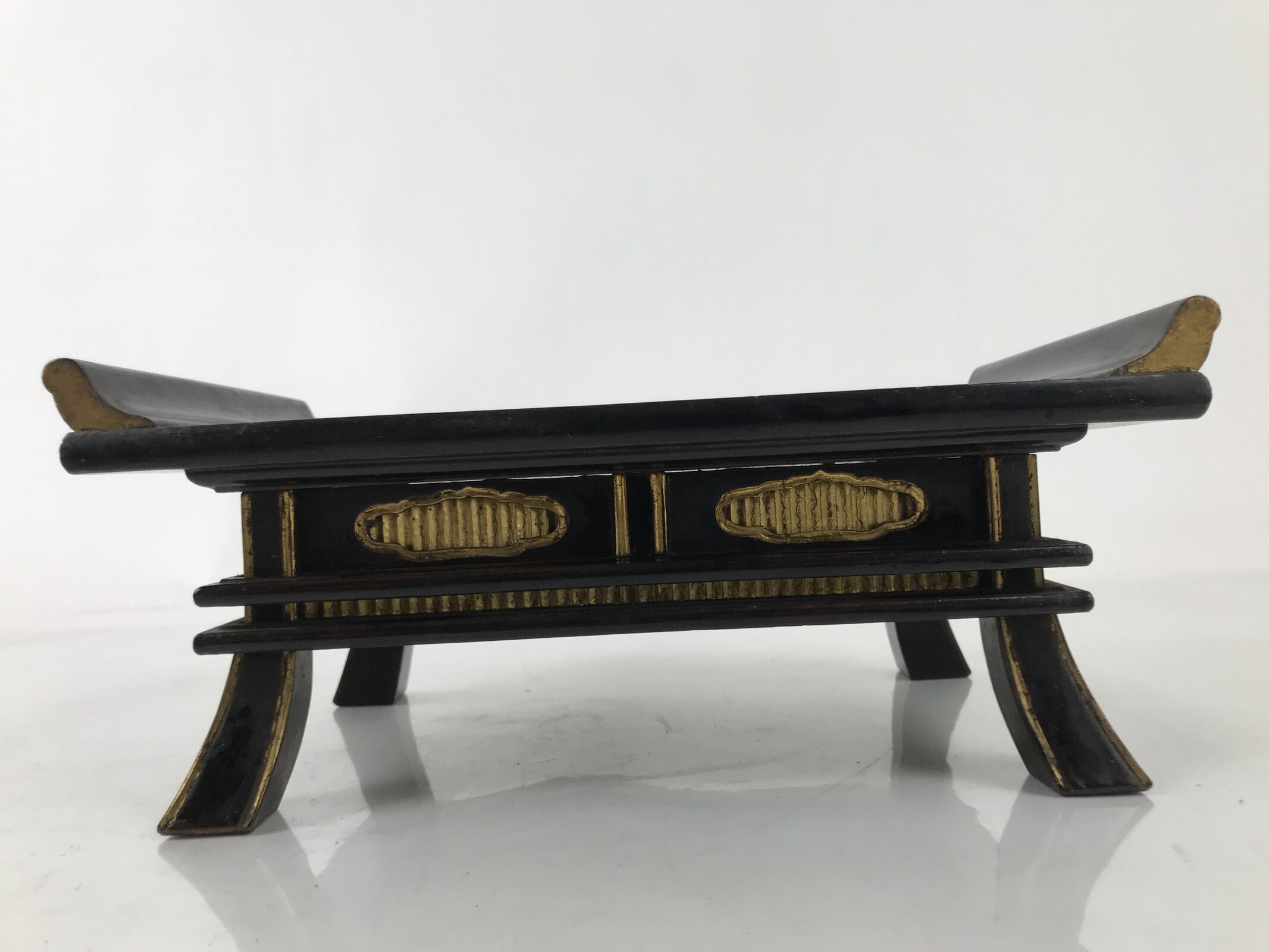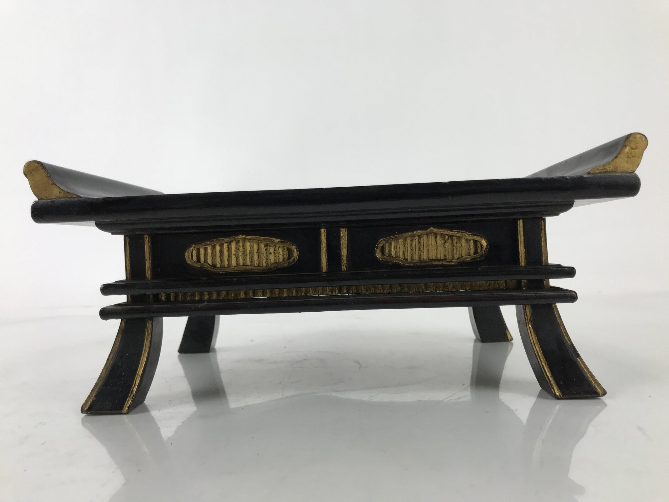 Japanese Buddhist Altar Fitting Lacquer Kyozukue Offering Table Black Gold BA498