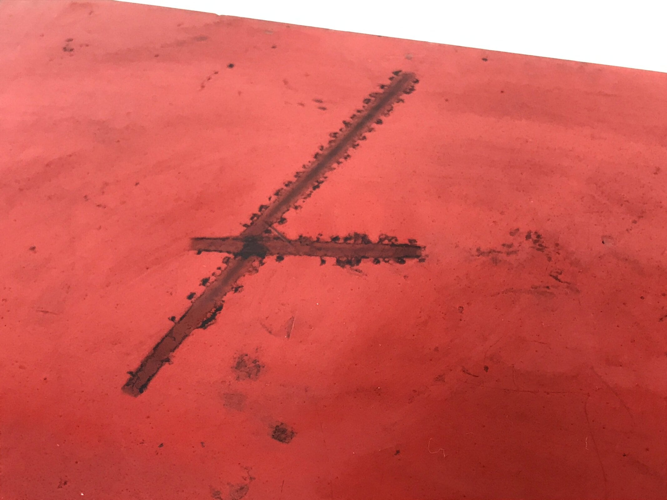 - Good condition considering age. X-shaped stain on top surface (was possible left by some sort of ribbon or cord). Bottom border piece loose, but not broken. Some scratches and rough spots on top surface. Gold lacquer worn in some places. Wear and tear due to age. Please see the photos.