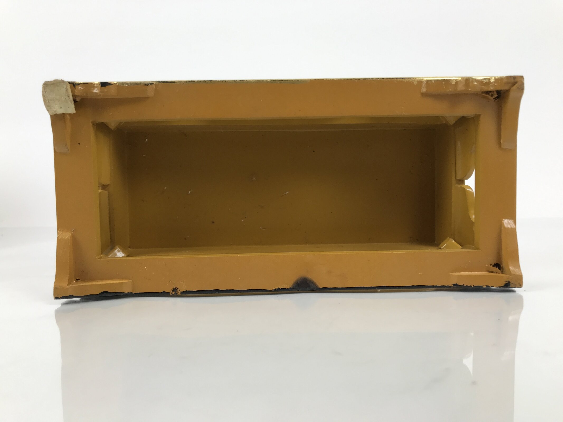 - Good condition considering age. Light scratches throughout. Dark marks on top surface. Previous owner has adhered the top panel to the main body, so it cannot be removed. Wear and tear due to age. Please see the photos.